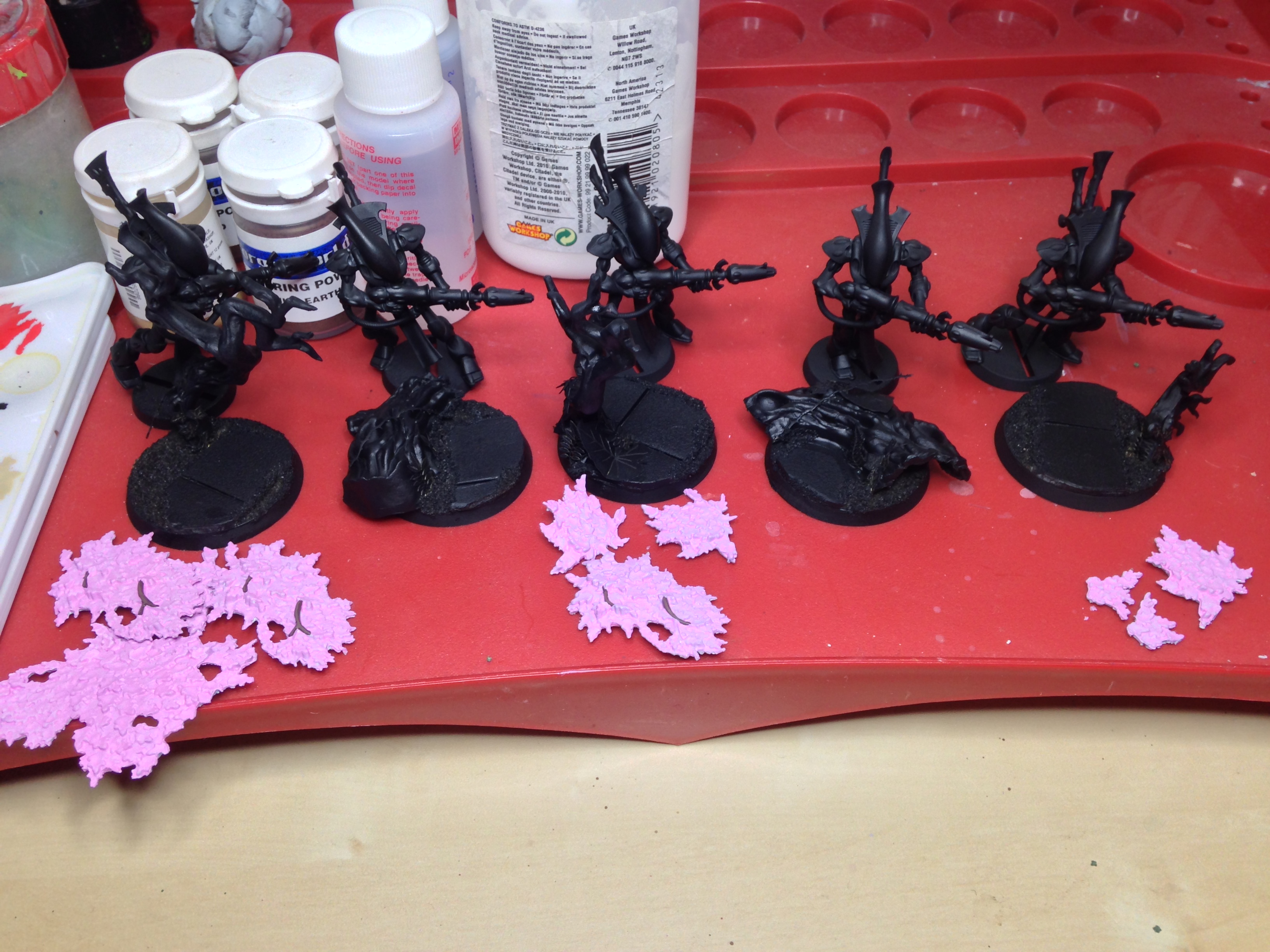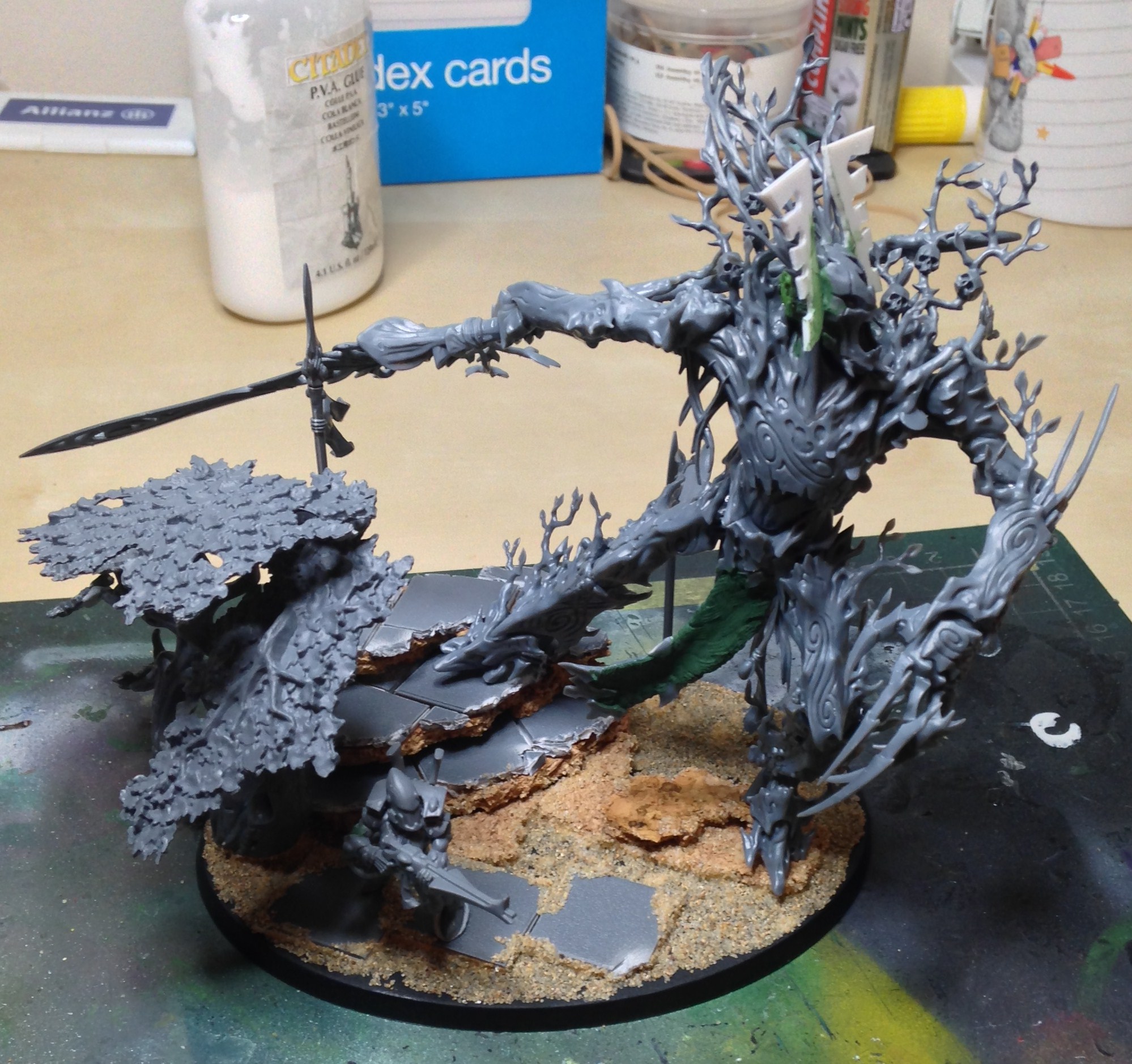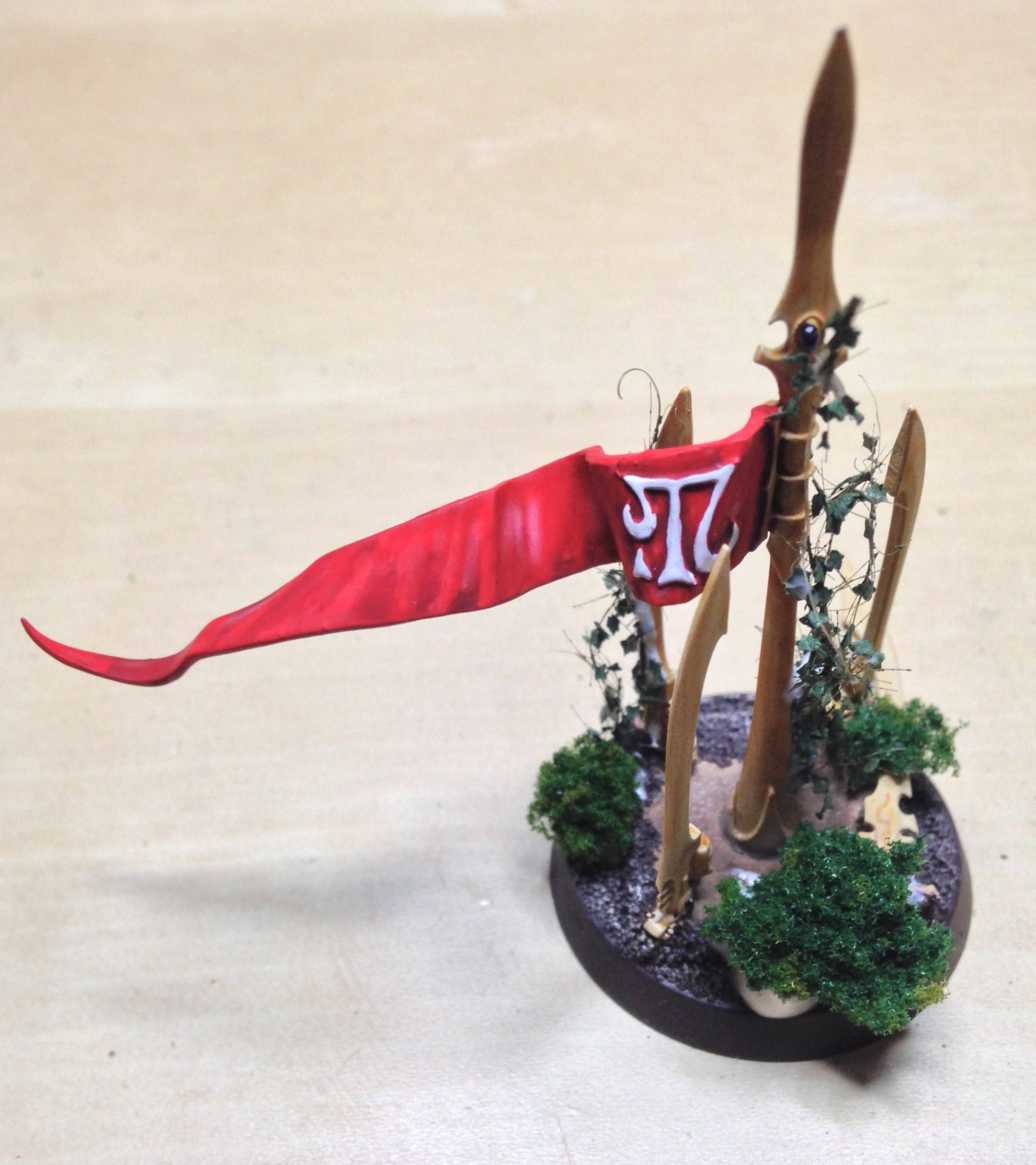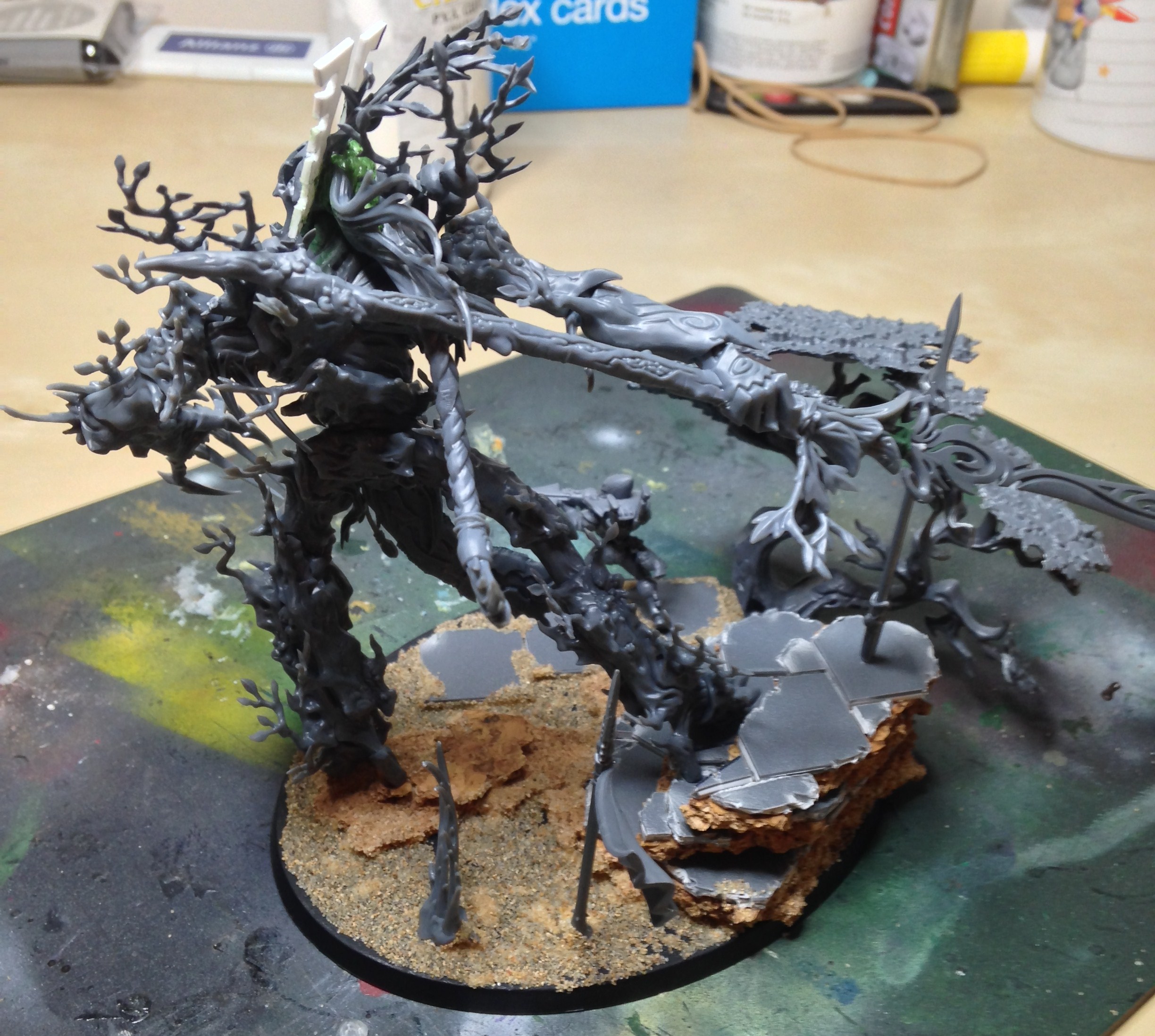 Thanks bud. Managed to sit down to do a little hobby for the first time in a week. The second objective marker is all finished, with the wraithguard primed for painting. Put the first layer on the leaves quickly.