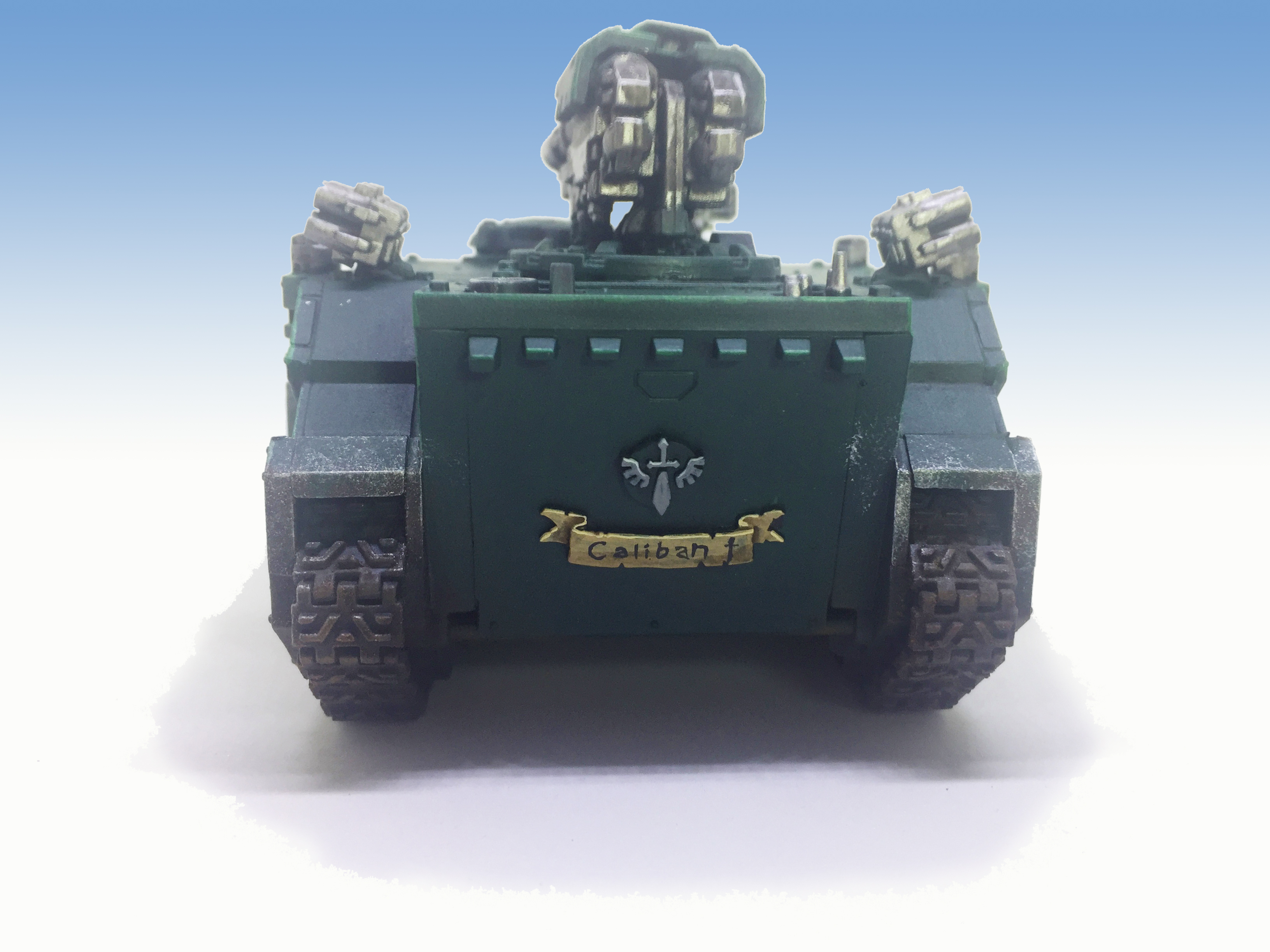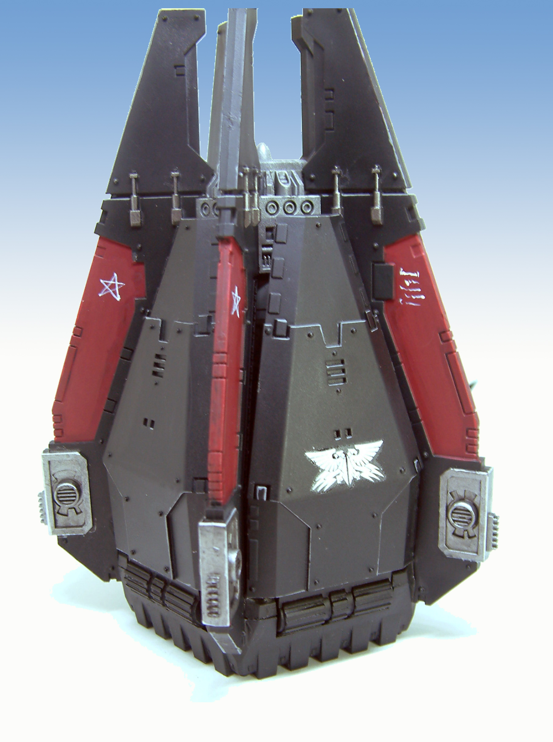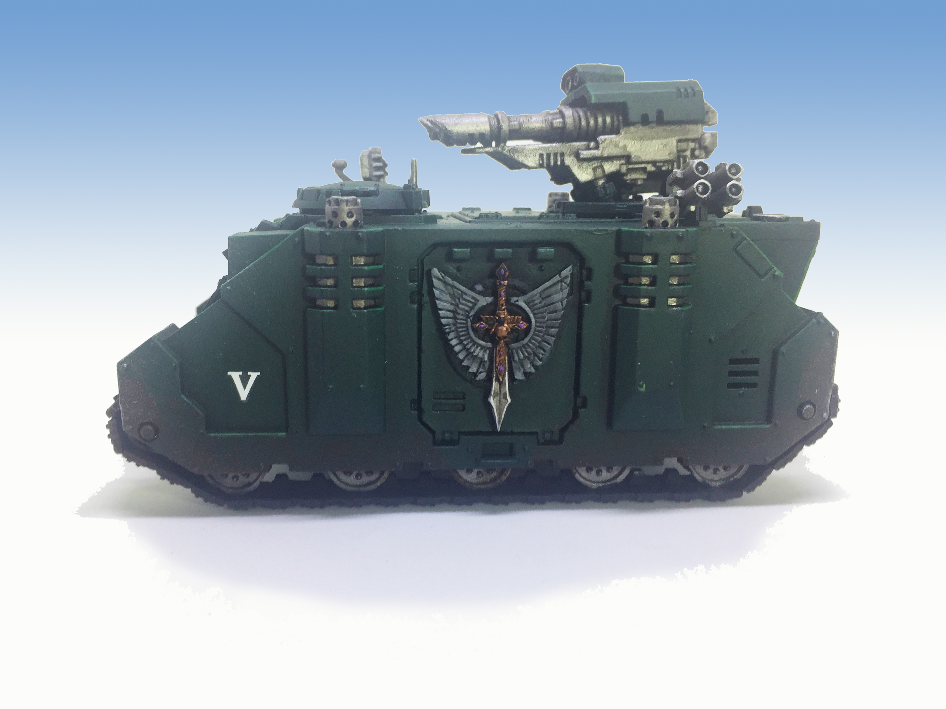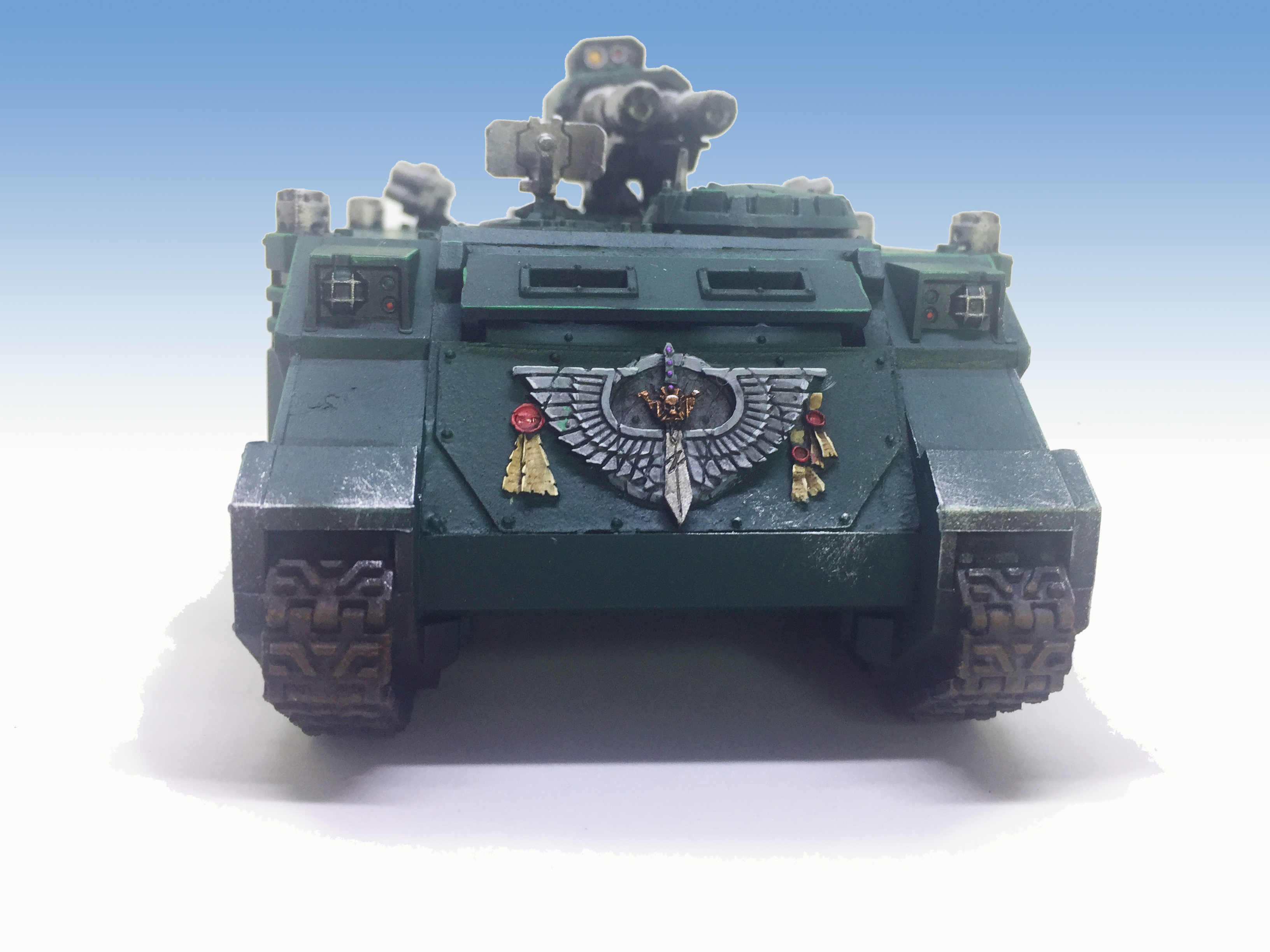 After saying my Divine Exorcists were finished, I decided the army would be radically improved by giving the marines some transportation, so here is the first of possibly two rhinos, painted to a basic standard.