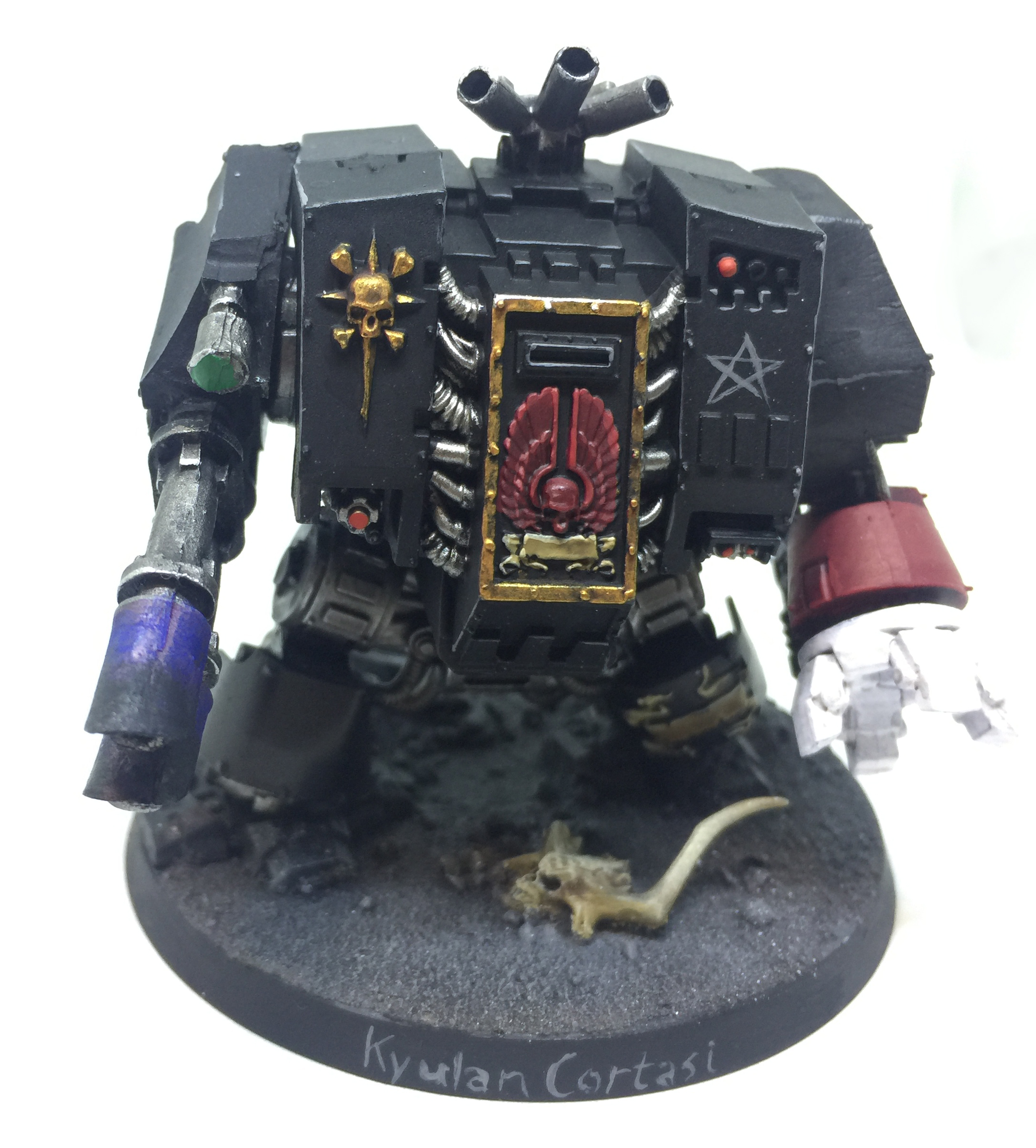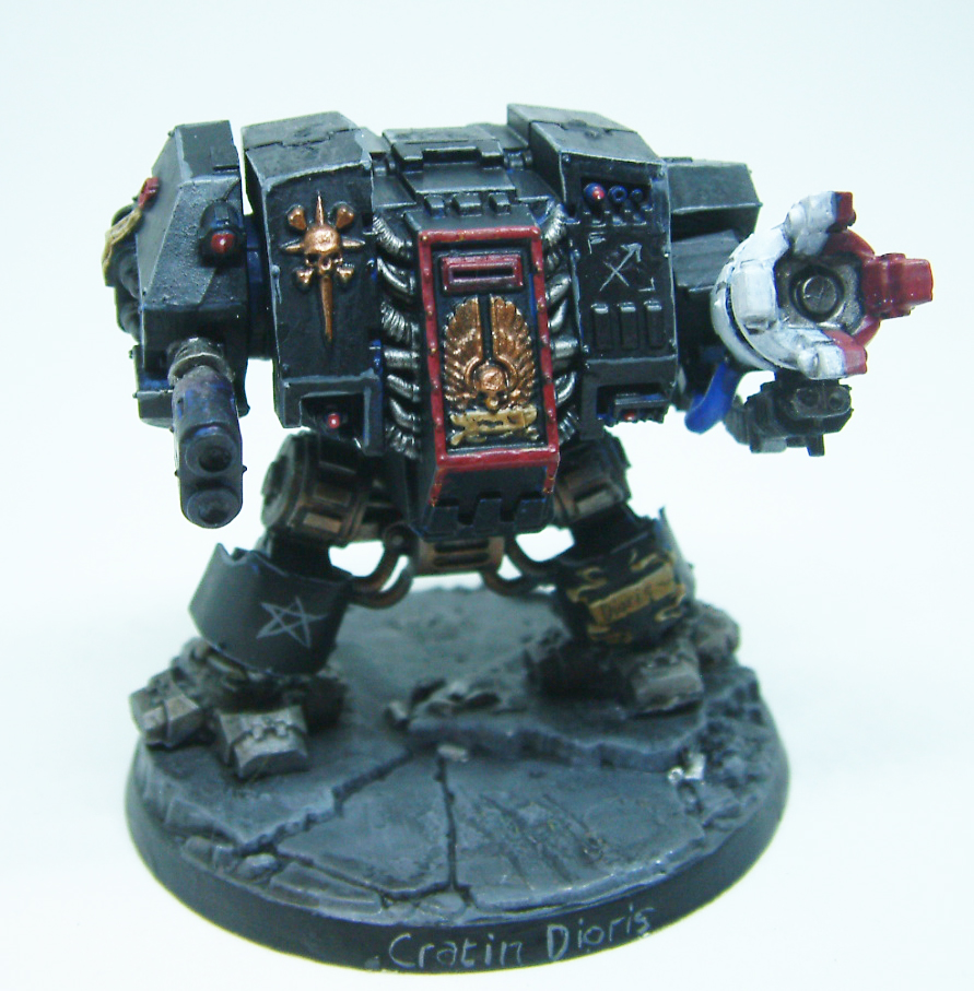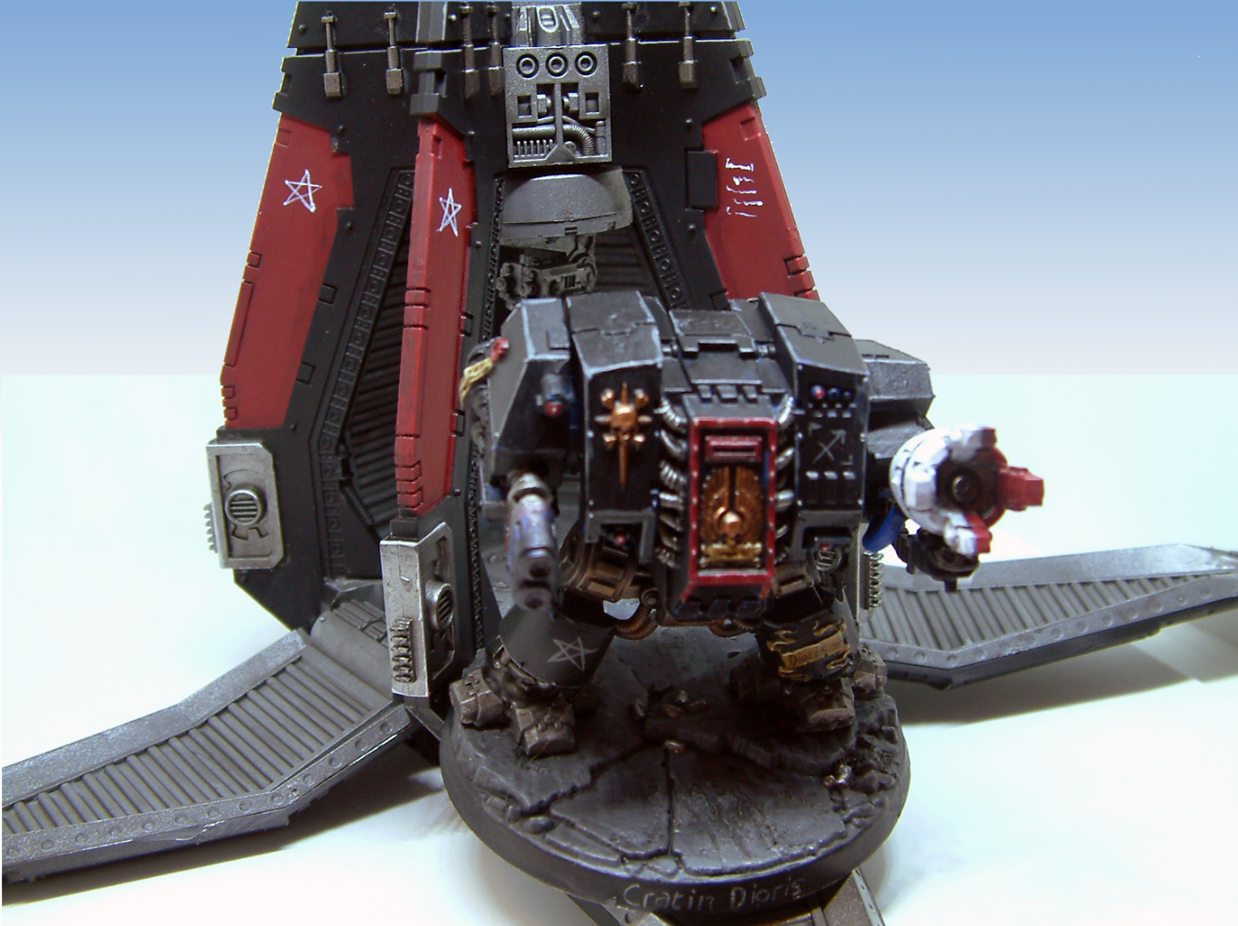 Dreadnought Cratin Diori, and a shot of the dread and drop pod together. I now have four dreadnoughts for the Divine Exorcists.