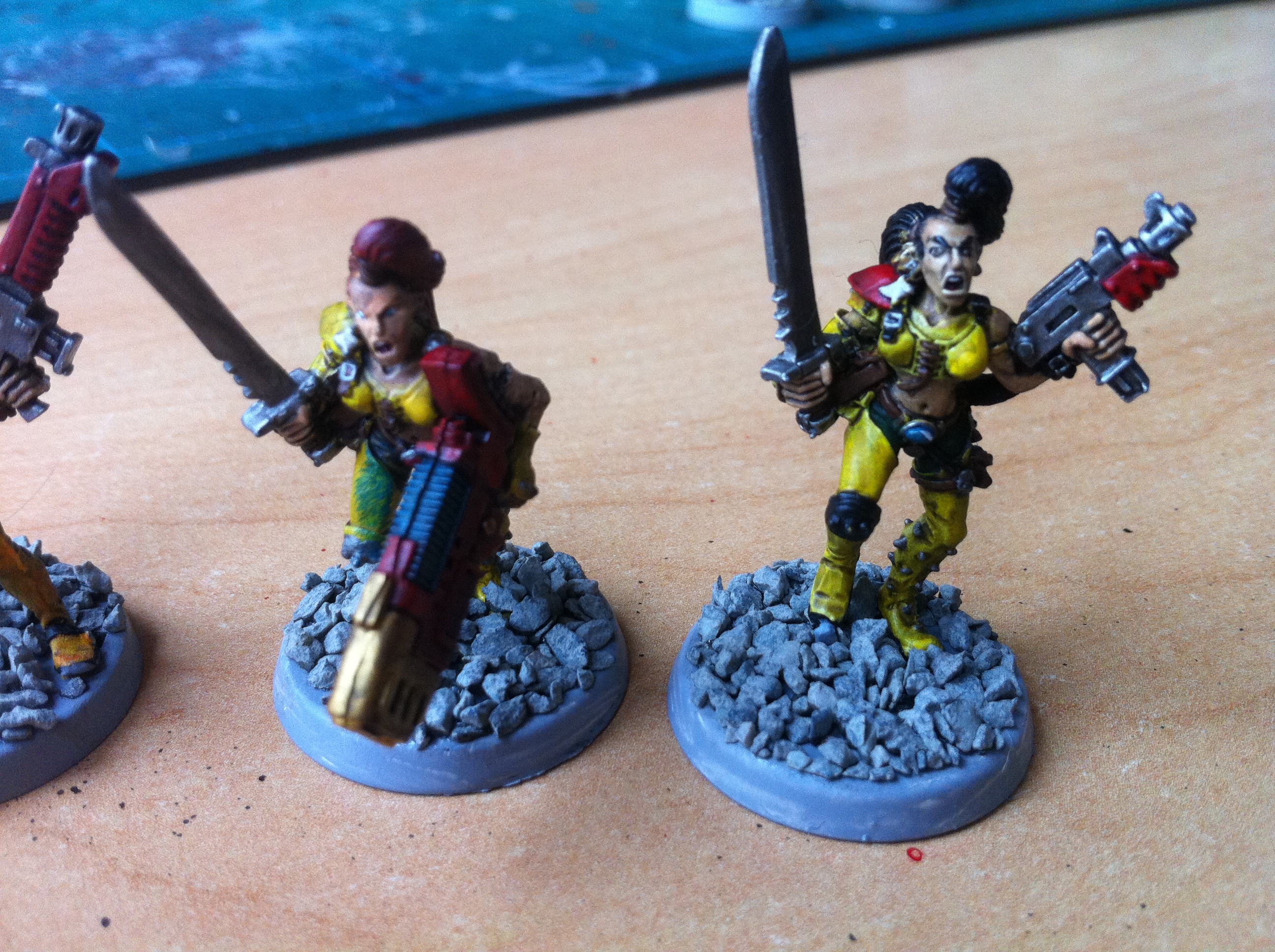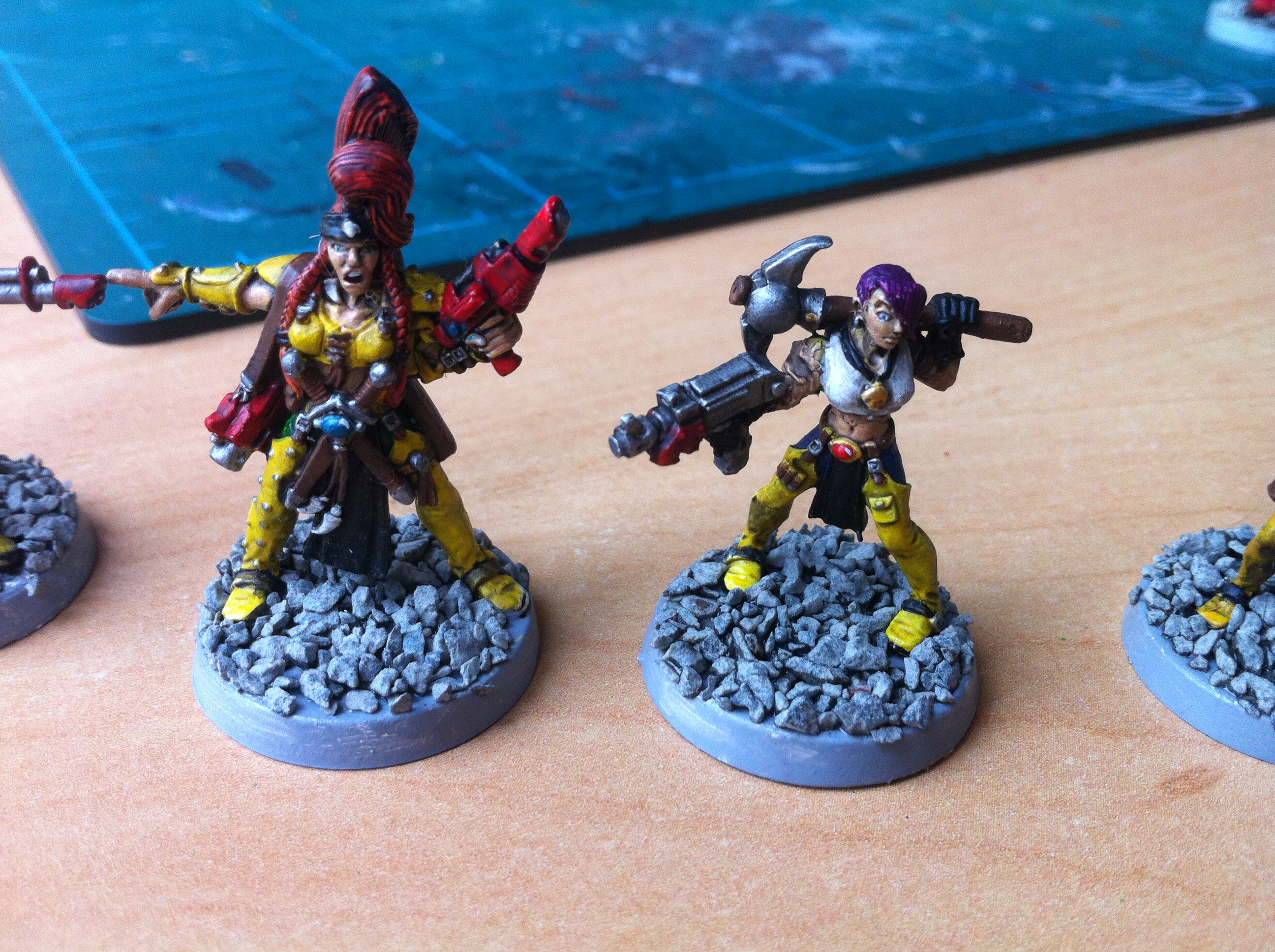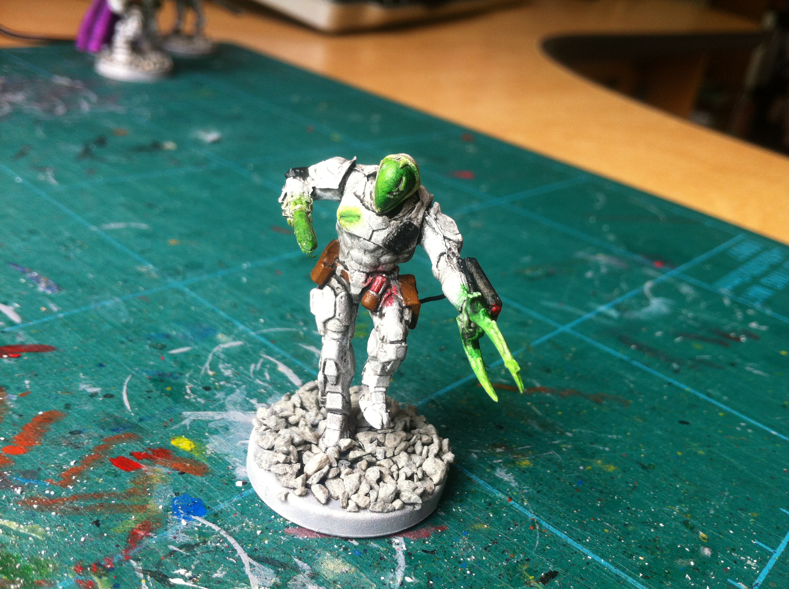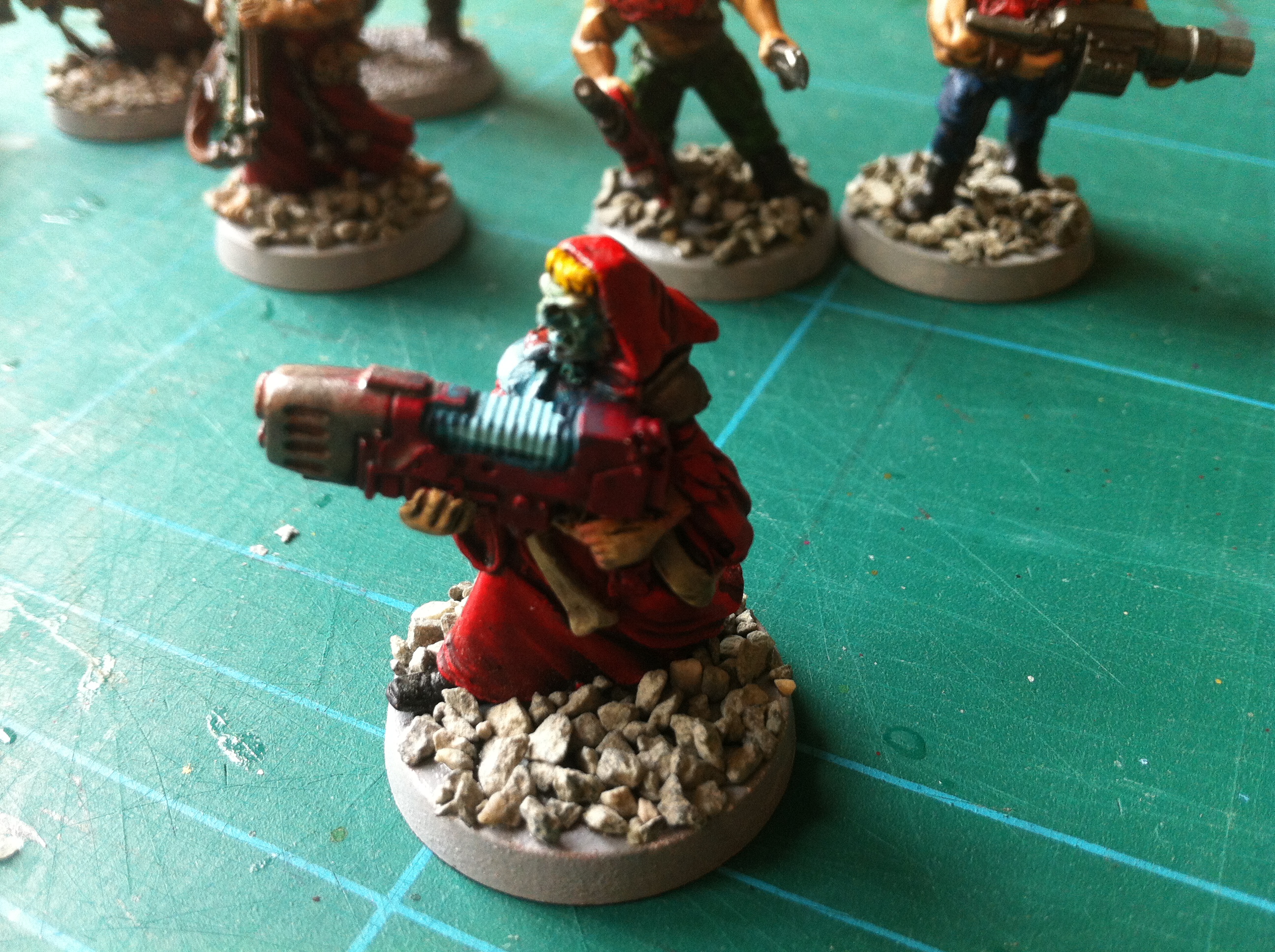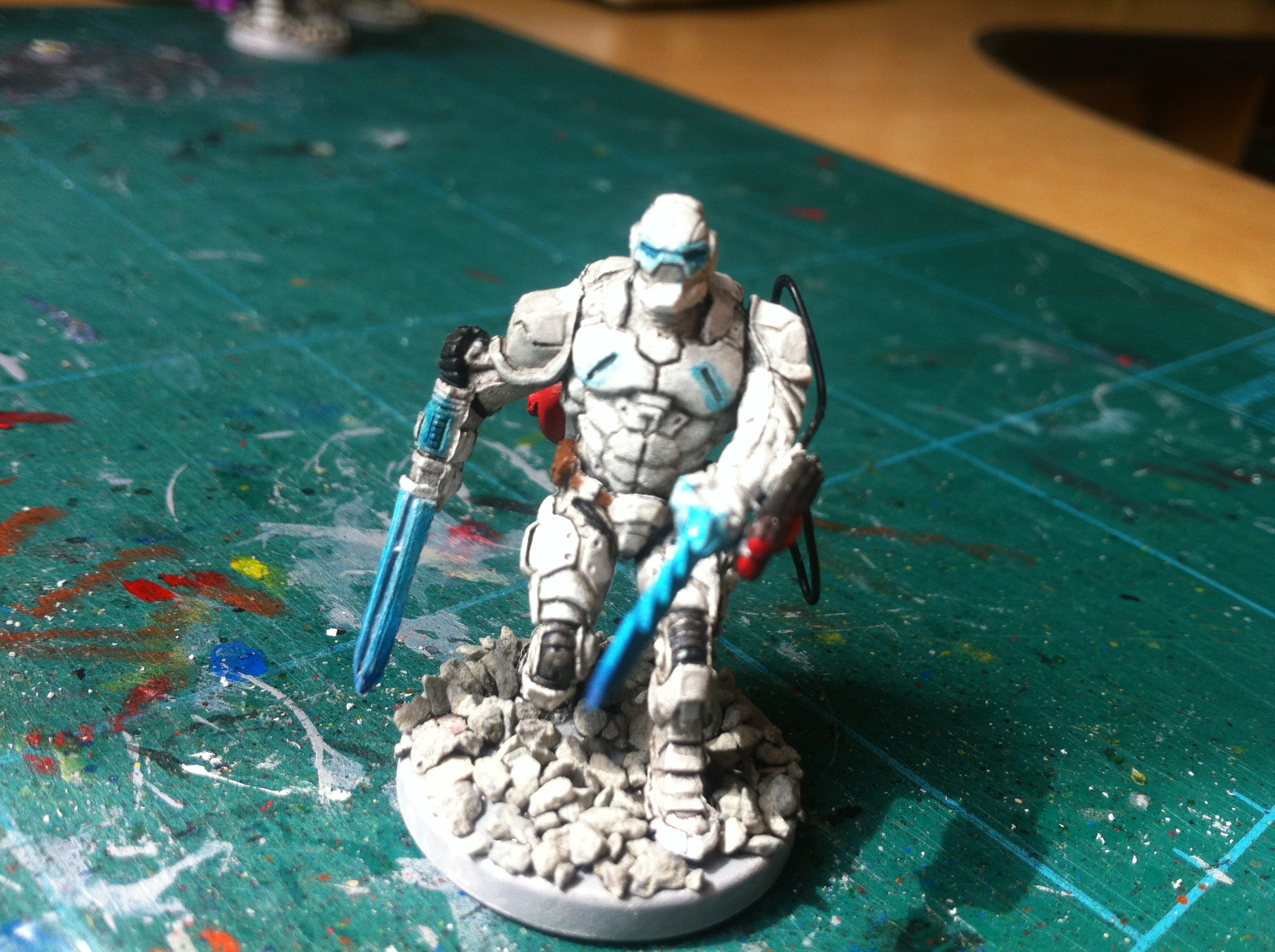 Jakara – with these models I wanted them to look like “Bishop” out of “xmen – DoFP” with him absorbing energy to power his weapon at the start of the film. red is a mantic model (recon mercenary) again with some dark eldar parts. Blue is a mantic enforcer again – didn’t like the arms that came with it and so I chopped them off (after finishing painting it) and replaced them with bare IG arms I had knocking about to make them similar. The original arms had the model in a really bad pose which didn’t look right.