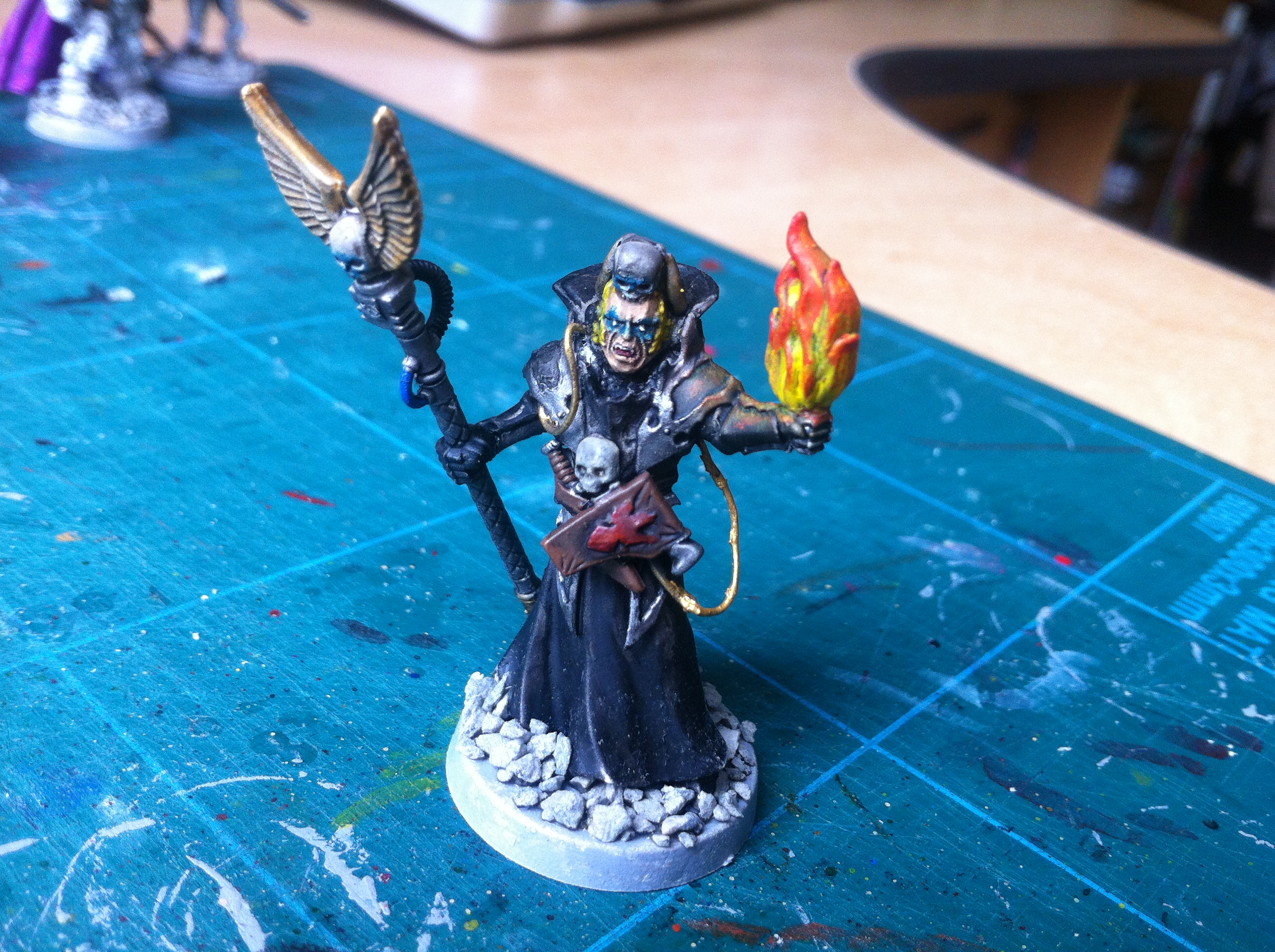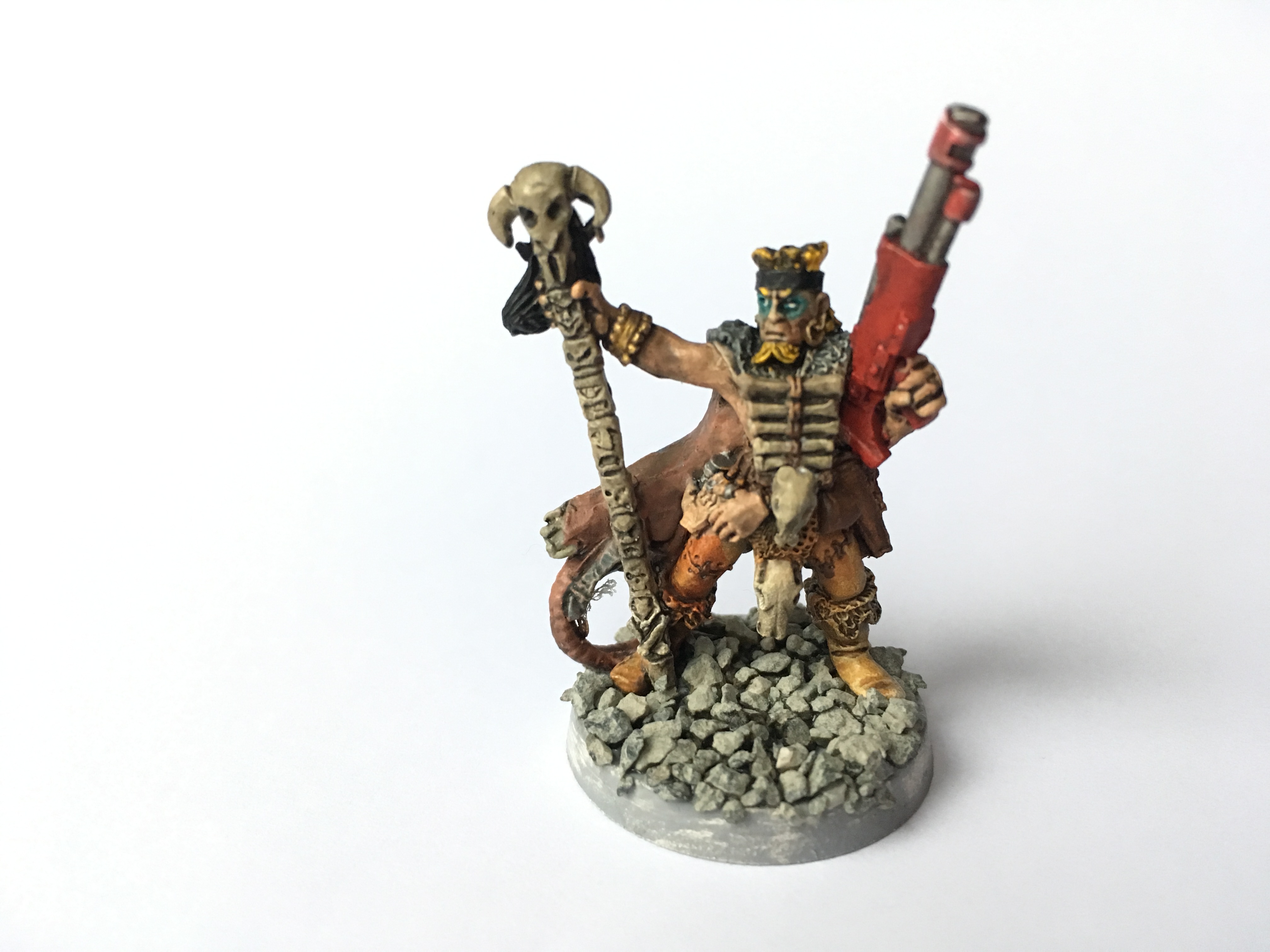 Base model is the chaos sorcerer; staff is made from a greys knight's staff with SM standard on top. The crown is not very good - I couldn't be bothered to sculpt ears on the skull to make it look more like the picture