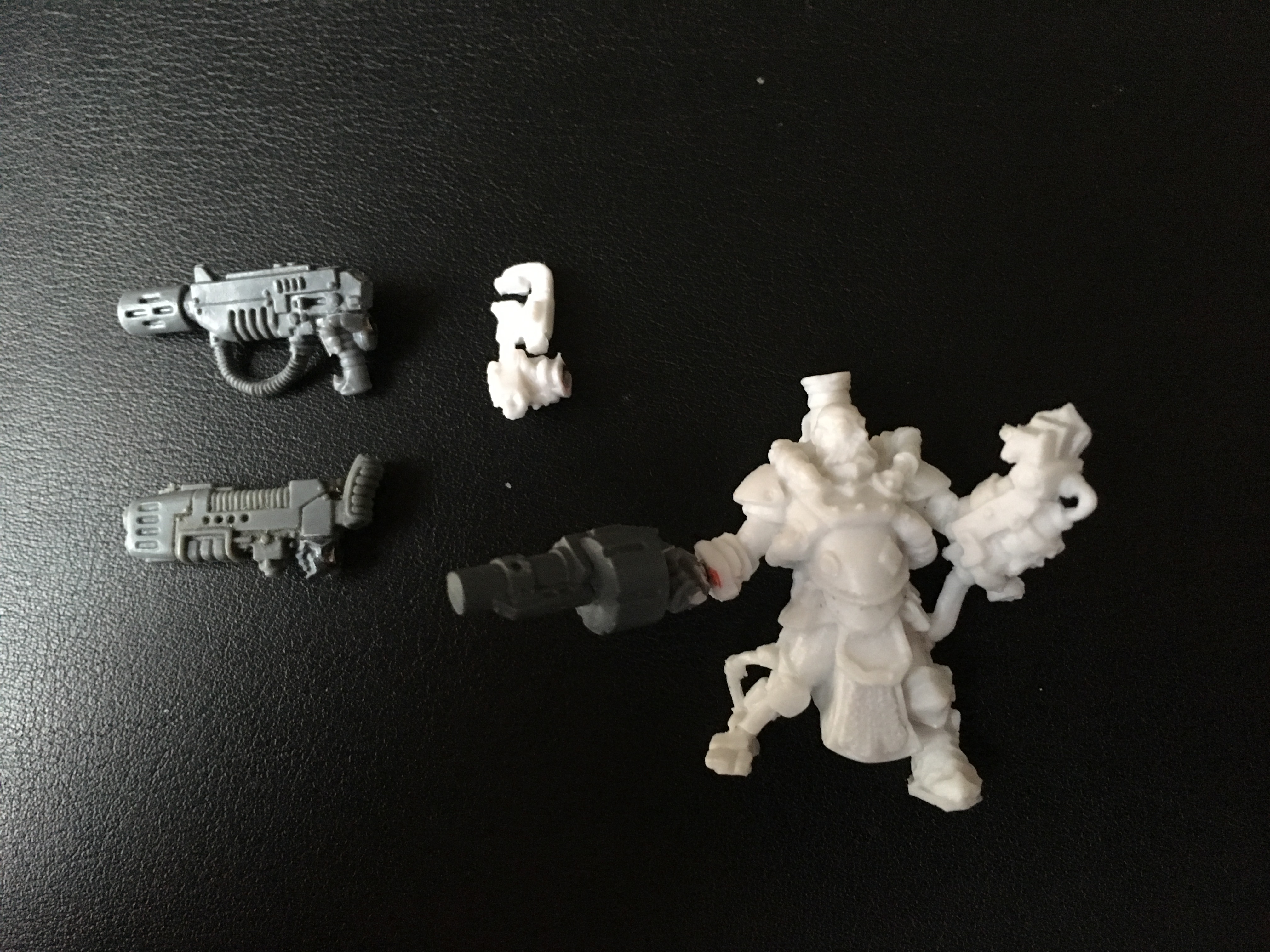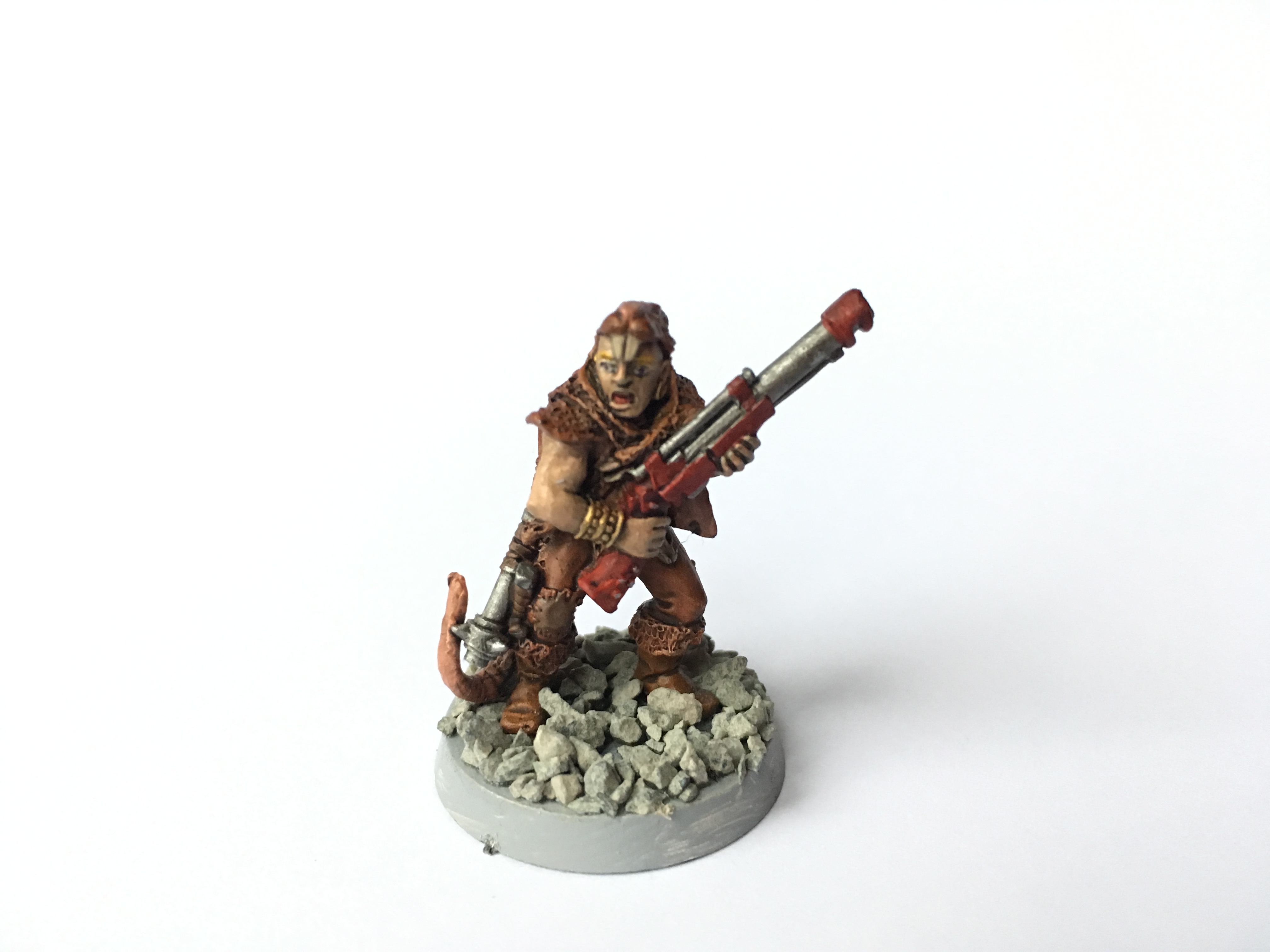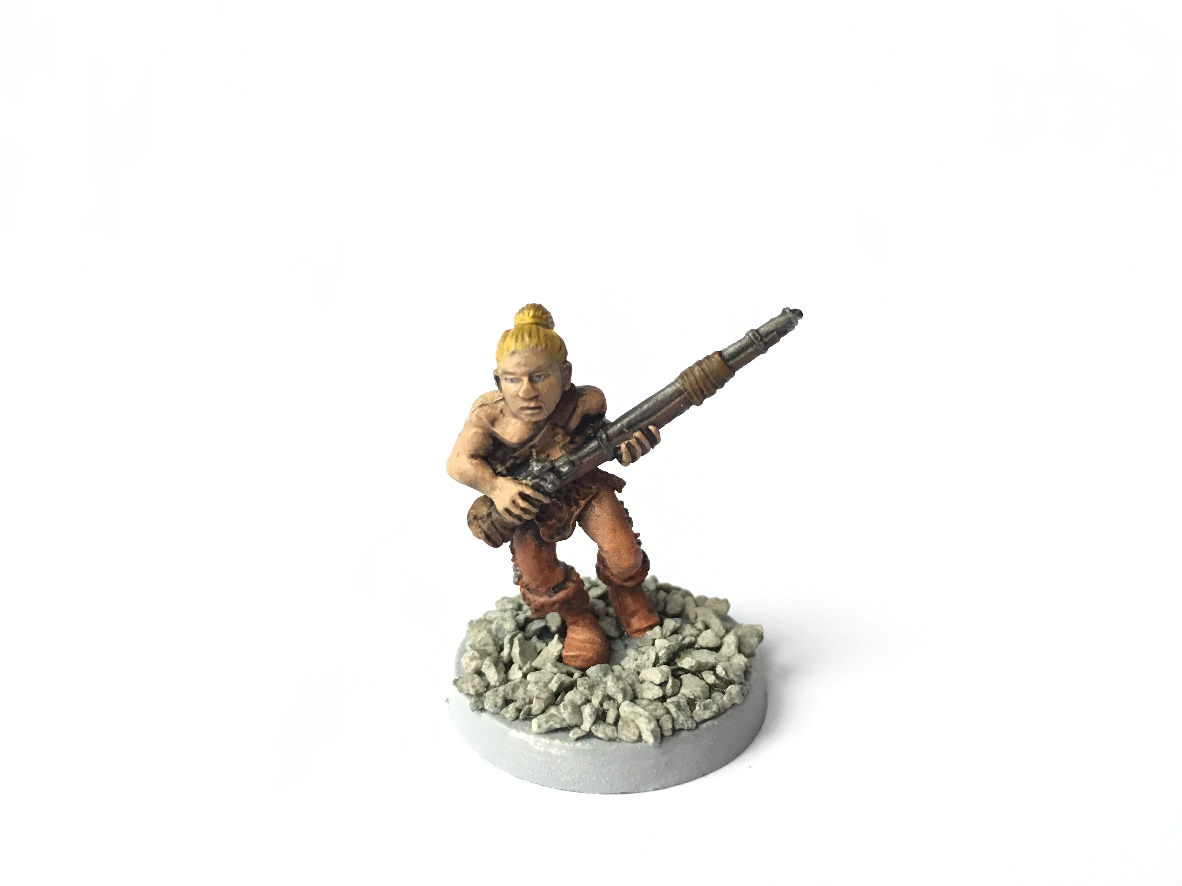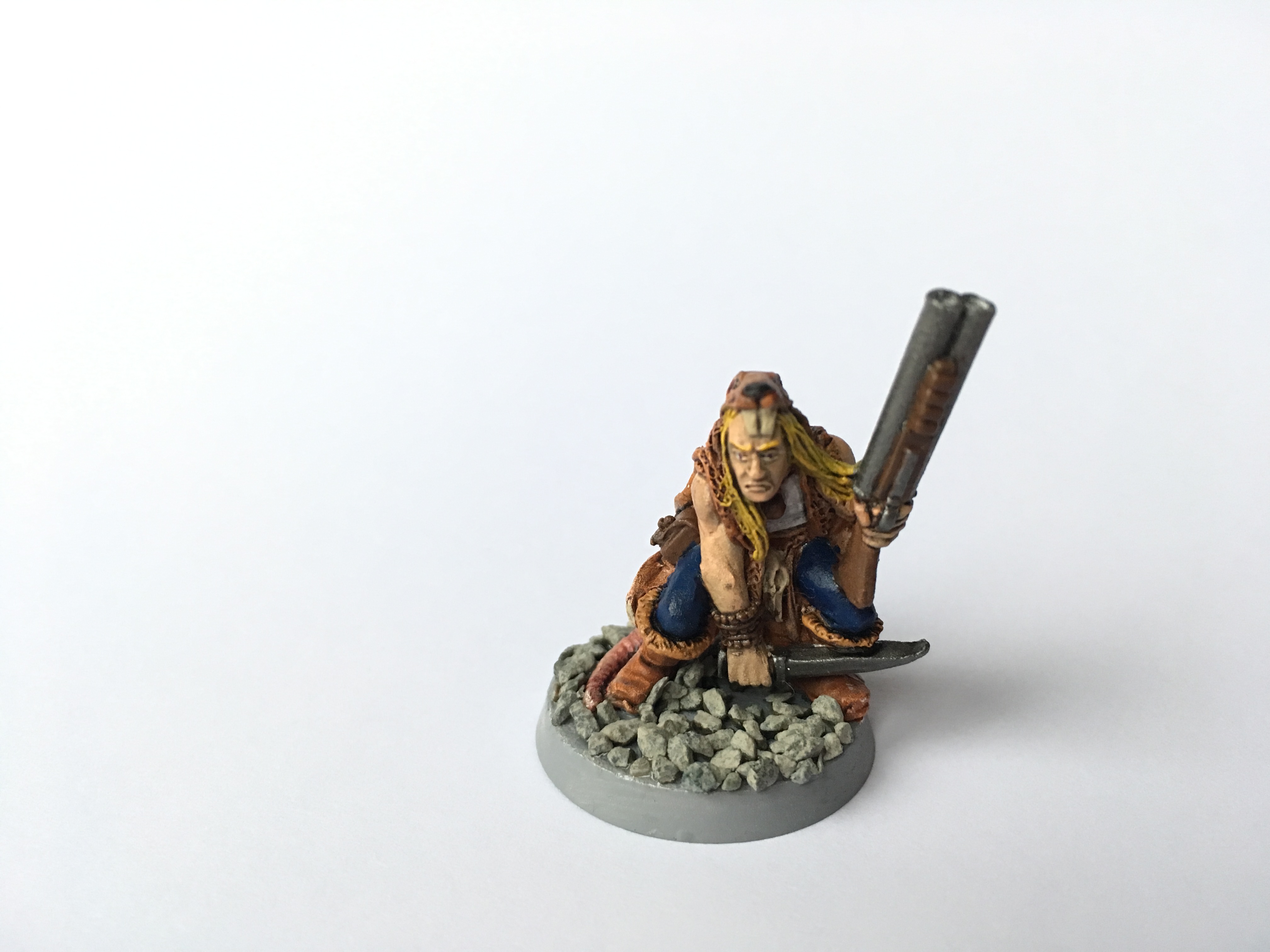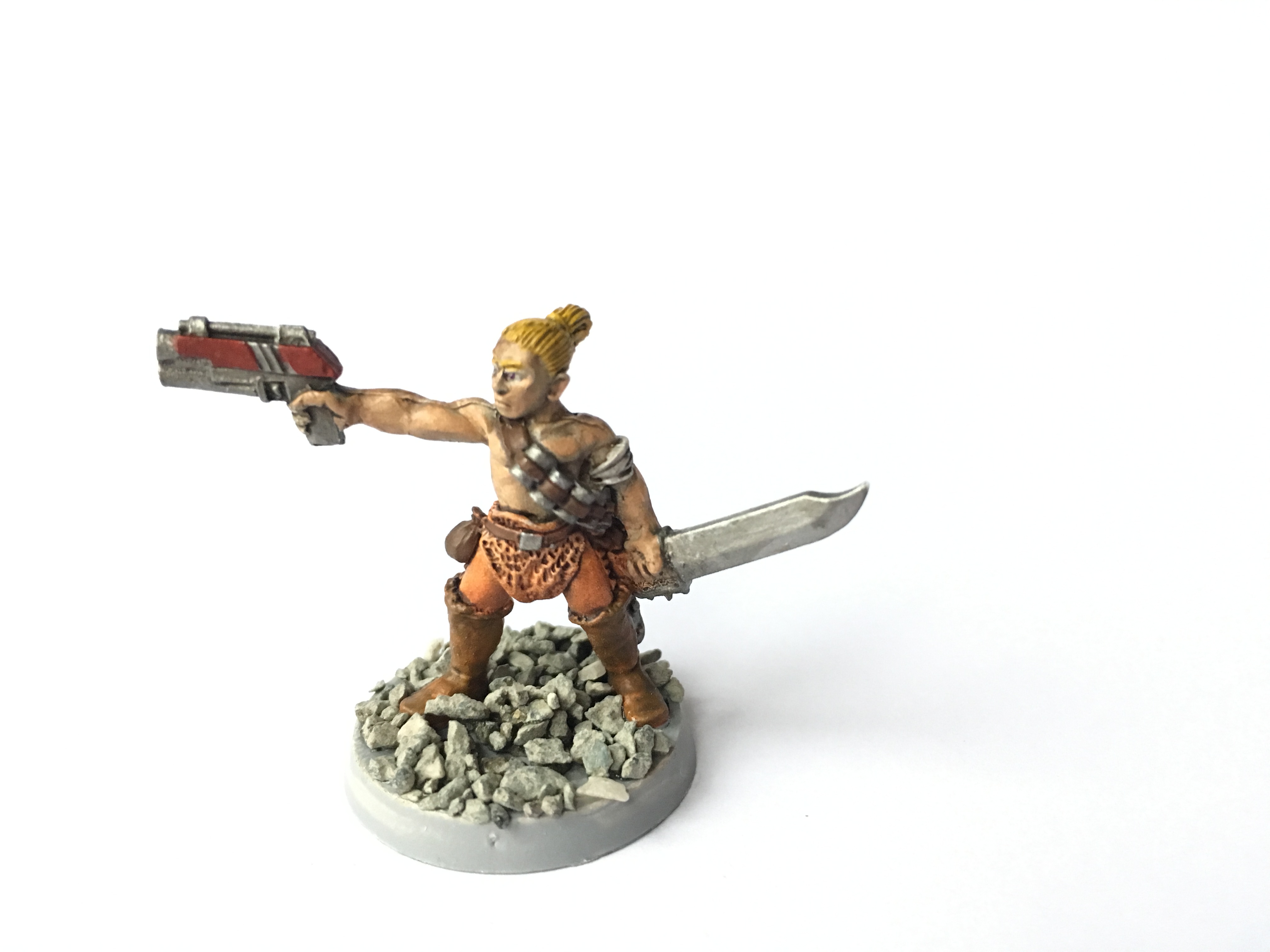 Kal on the other hand is based on a model I saw on ebay - no idea what it was or where it came from. I cut off its hands and added the dark elder weapons as they were the only thing I had that looked like las pistols.
