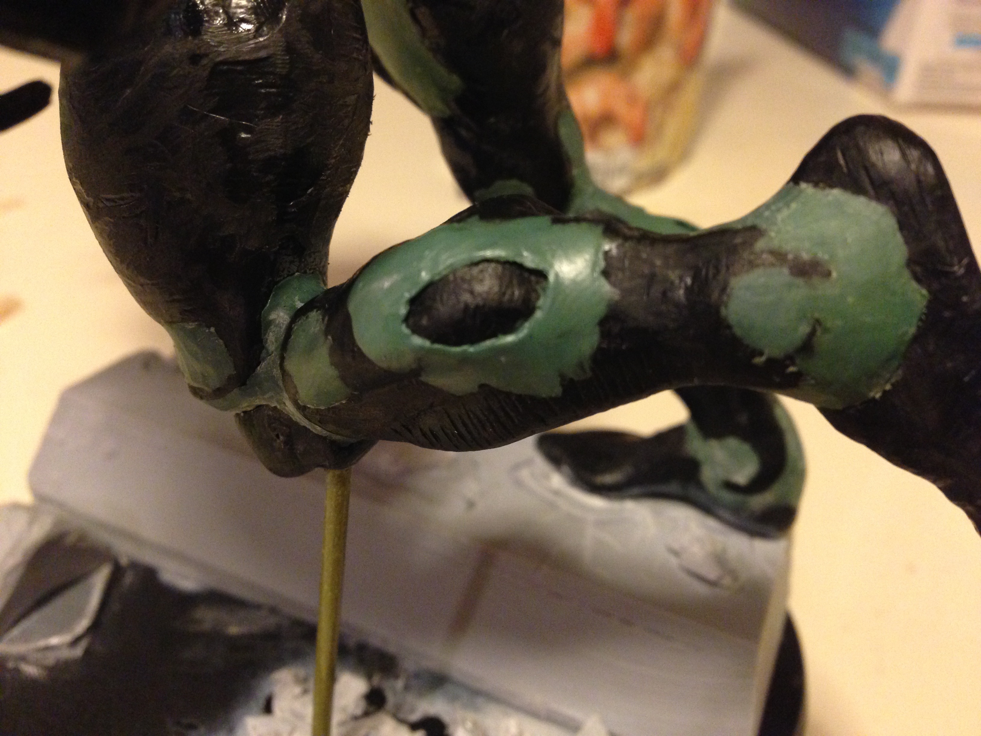 Fantastic idea and great execution! I wouldn't stress about the support rod for the leg. You're probably the only one that will notice, everyone else will be looking at the giant freaking Grotesque!