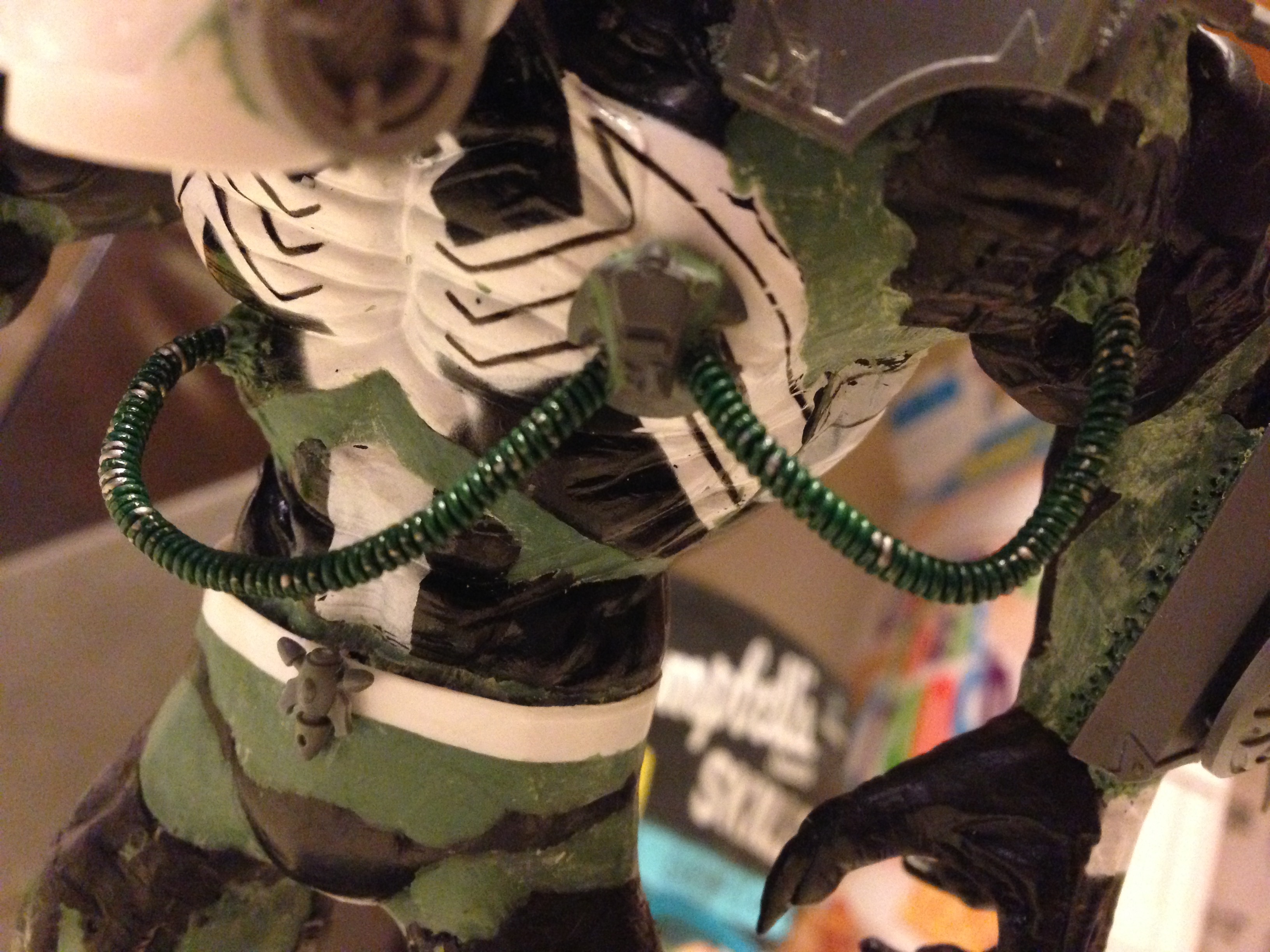 Xendarc, I didn't plan on making a loincloth of any kind because I modeled him to be wearing the faux-spandex that Wyches and Grotesques wear. Hooks, trophies and chains are all very do-able though.