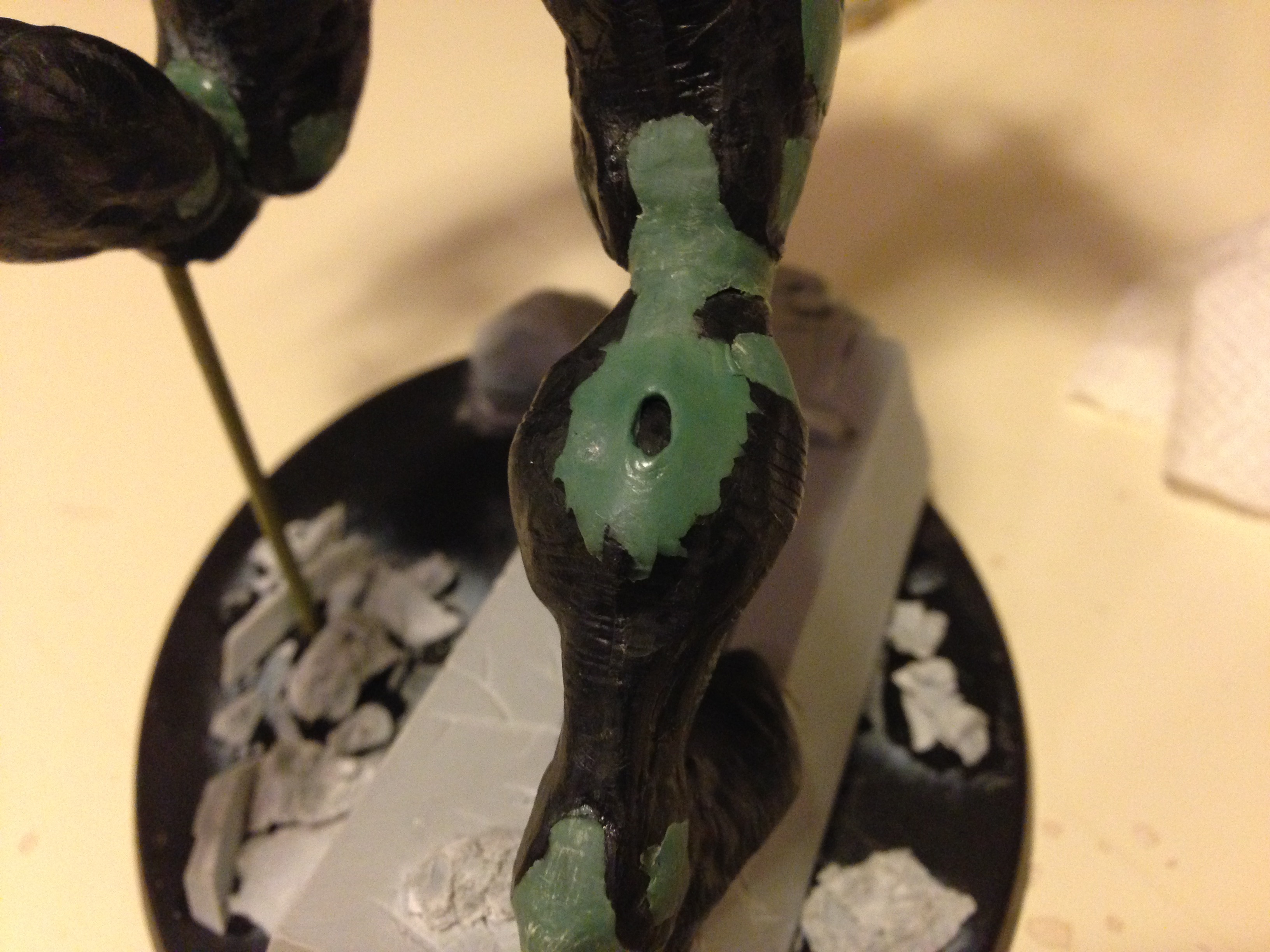 I'm doing the skin on Venom here the same as I did my Grotesques, or at least very similar. I may take some grey and paint the "scar" areas to make it darker and thus more like an actual scar.