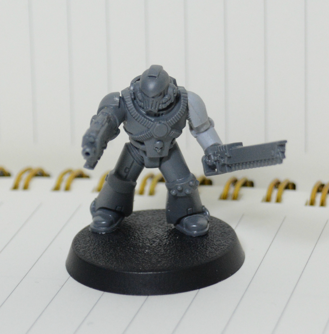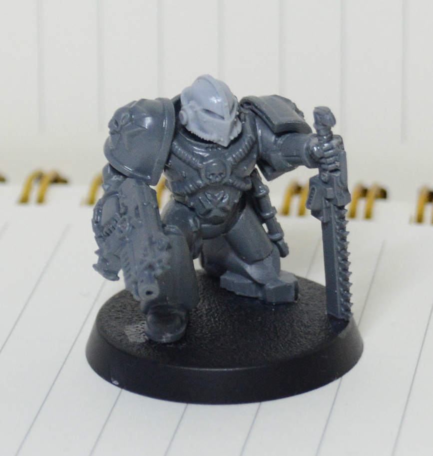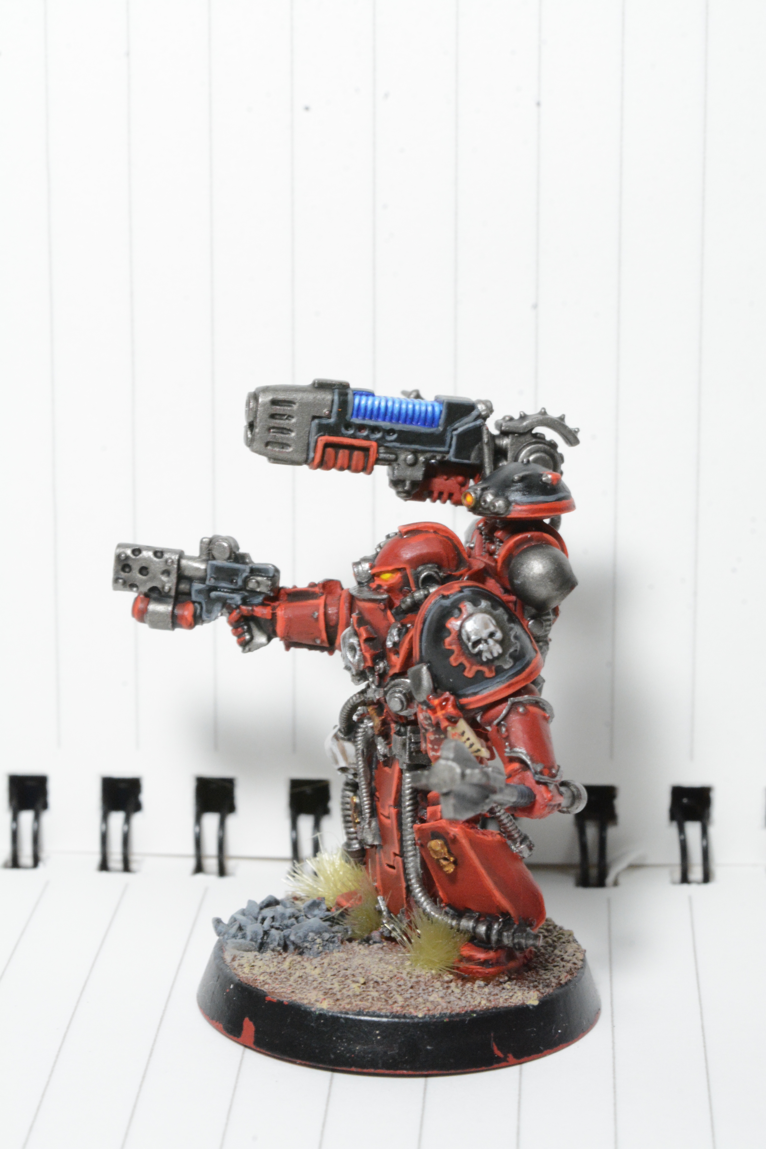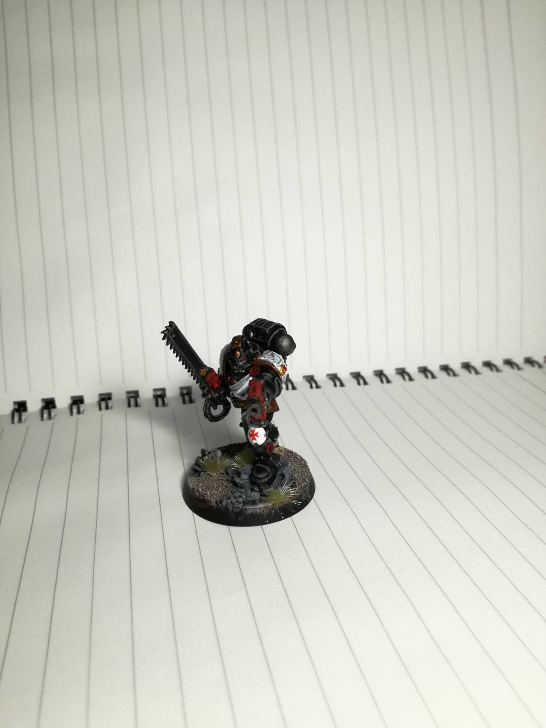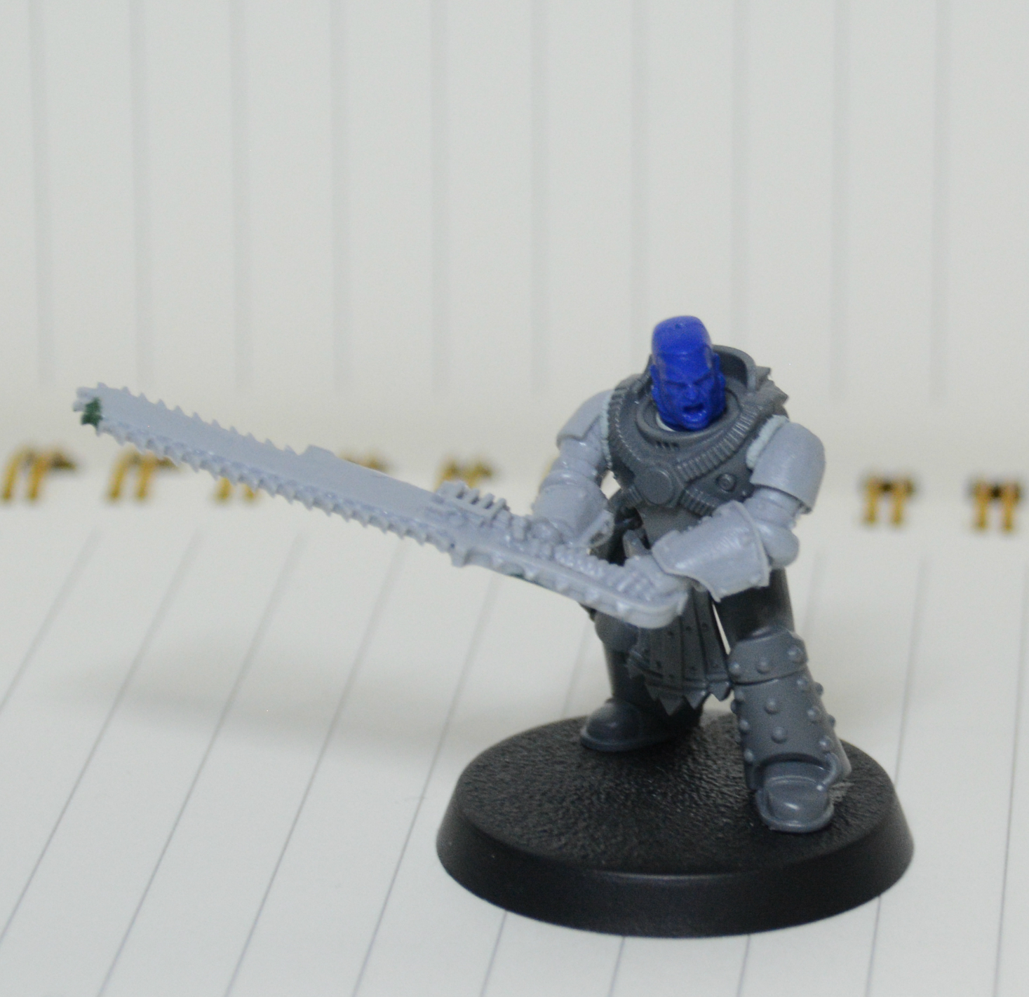 As I've slowly added paint to him, I've become pretty fond of this old dog of war. Though I plan to add him to my general run-of-the-mill bolt pistol chainsword boyos for use in cc oriented Crusader Squads, I like to imagine he's a bit of a grizzled veteran, who's stayed out of leadership because he'd rather be fighting and killing than planning and leading.