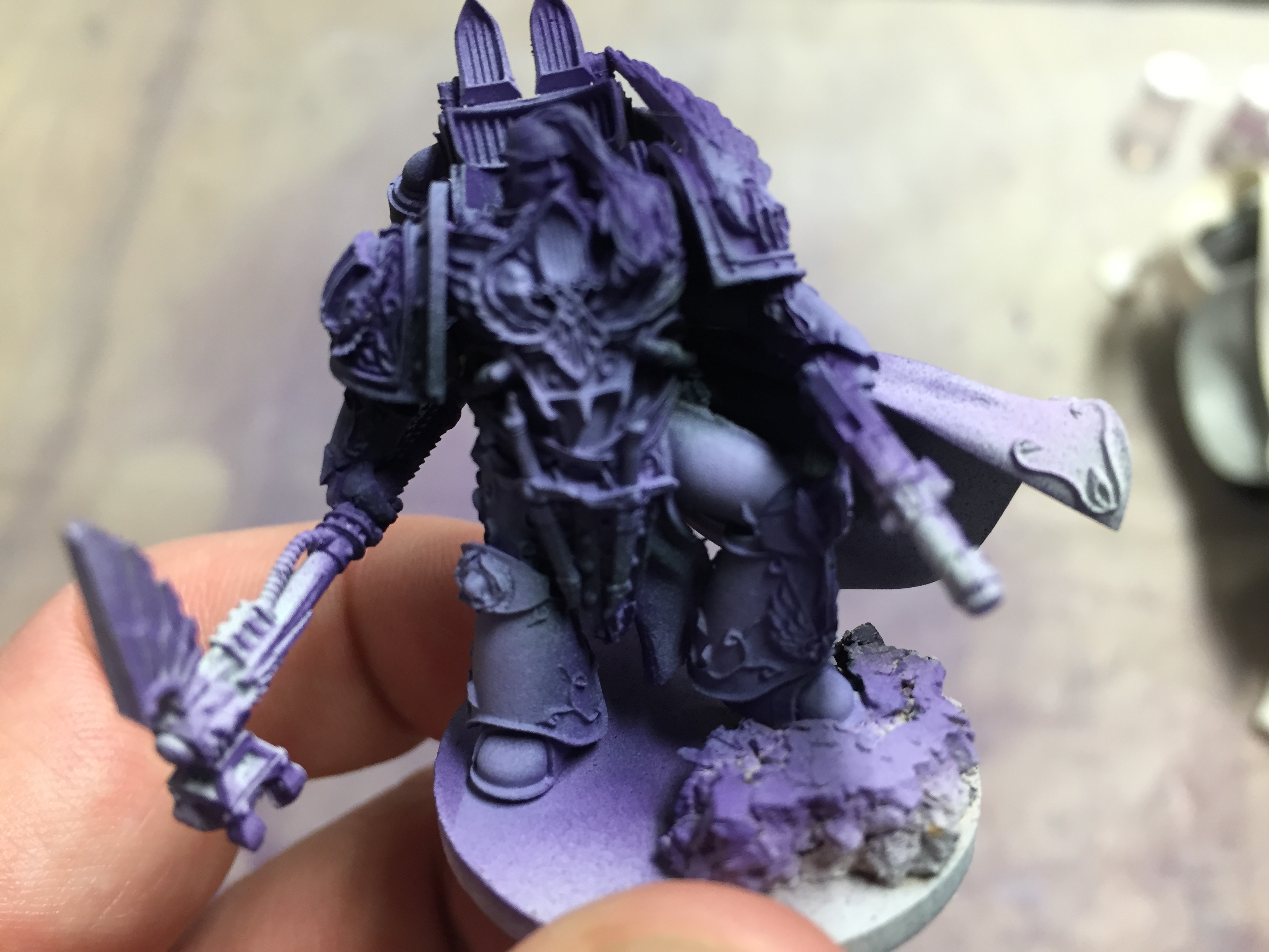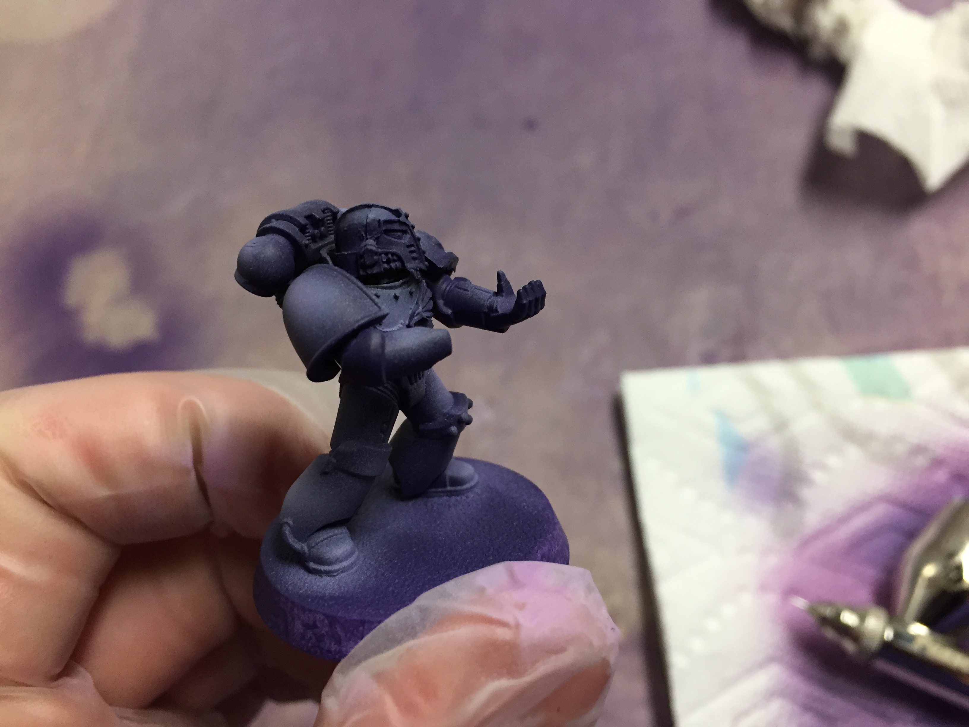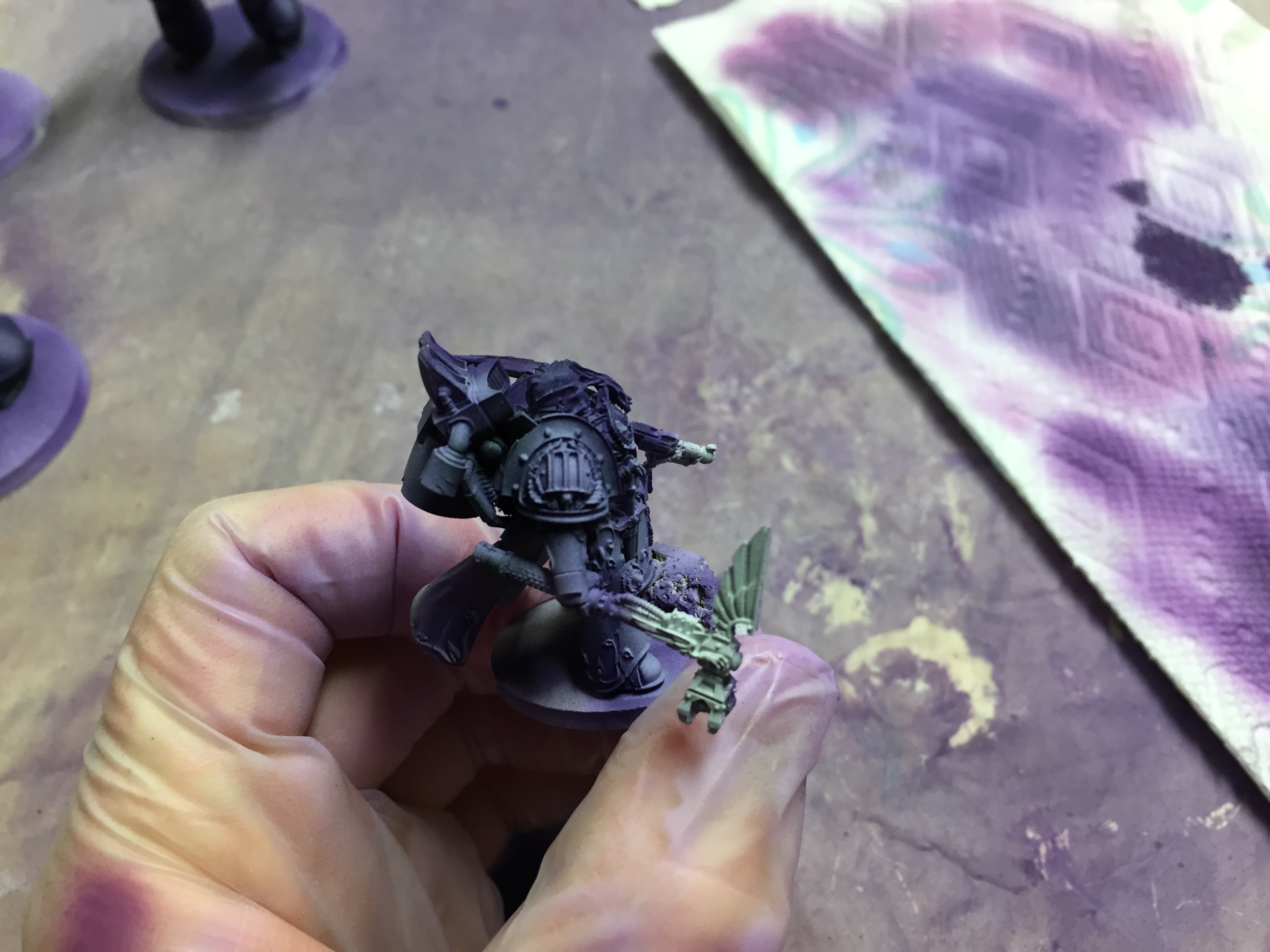 Light layer over entire model being careful not to dilute the recessed areas with chemos purple