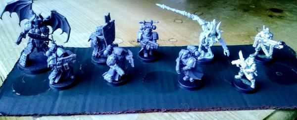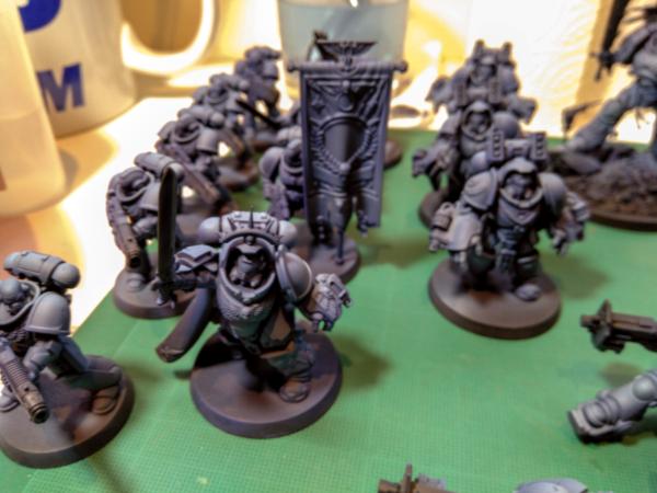 Minimal progress on the Ultramarines, have blocked in the black on all except Guilliman but that's about it apart from basecoat of Bugman's glow on the three that don't have helmets.