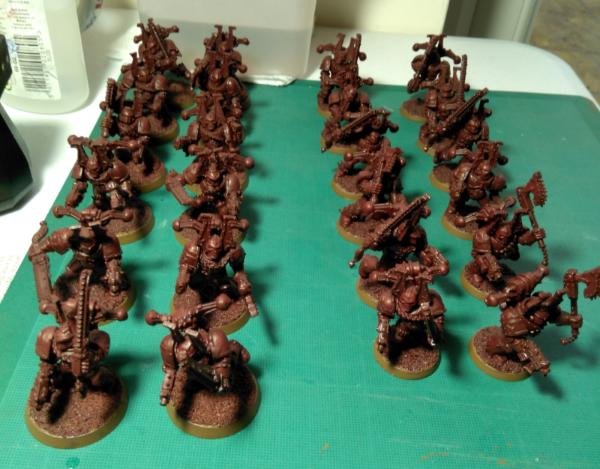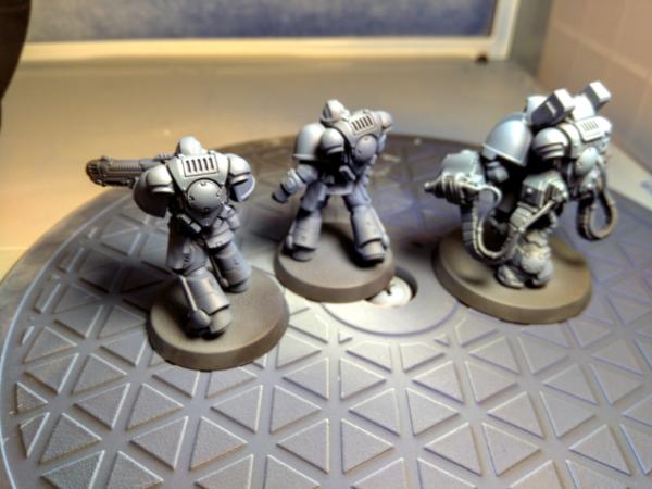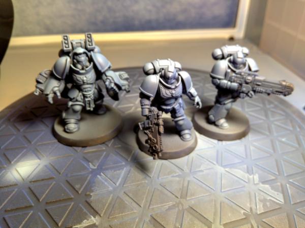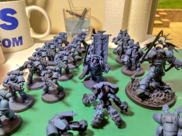 Wife bought me a Warhound Titan as my retirement present so I have had to revisit airbrushing which I had stopped previously due to all the grief. Don't want to mess up the Titan so have started practising with the airbrush on the Dark Imperium stuff. Was a bit hit or miss as I'm struggling with getting the thinning right/consistent. Decanted paint to dropper bottles for 2nd session today which went better. Initial basecoat is within my fortunately pretty low "acceptable parameters":