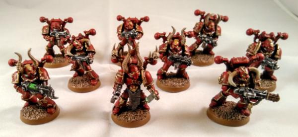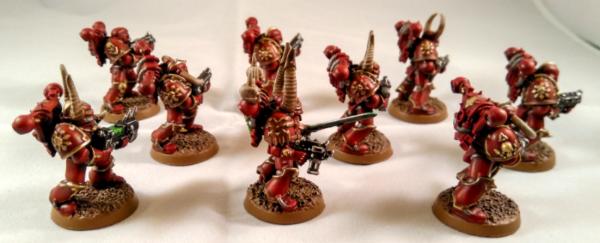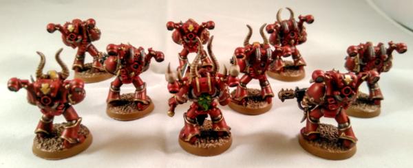 Struggled to decide what to paint for December's challenge so went with a unit that already had one model painted, as it's bugging the completionist in me. CSM squad primed in Army Painter Chaotic Red: