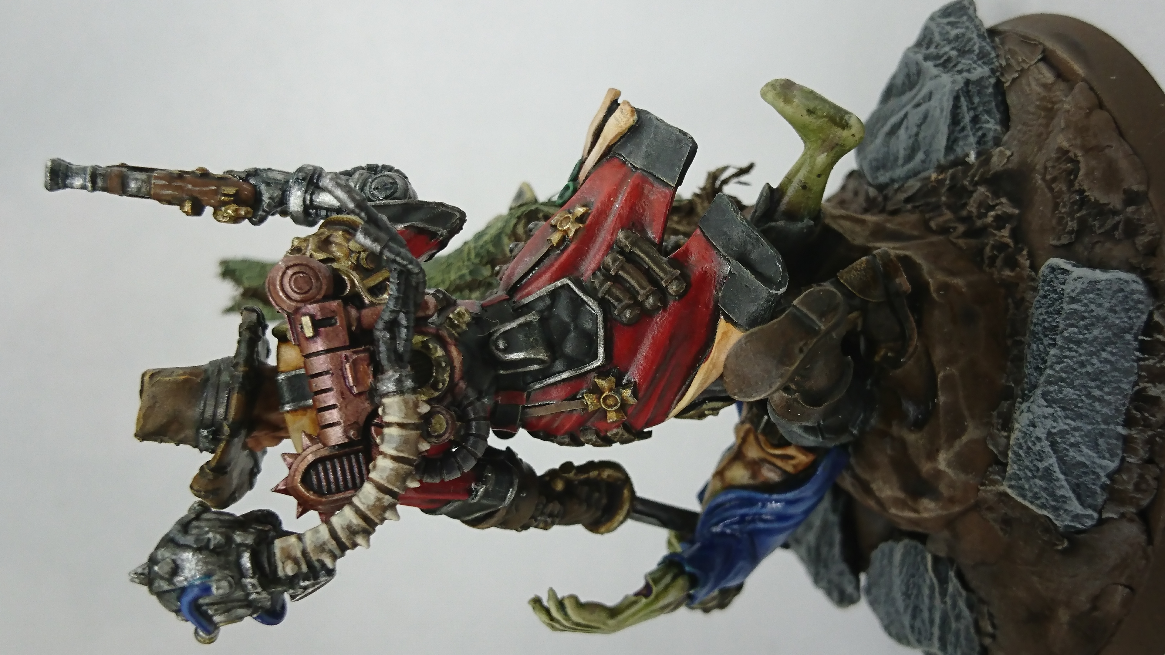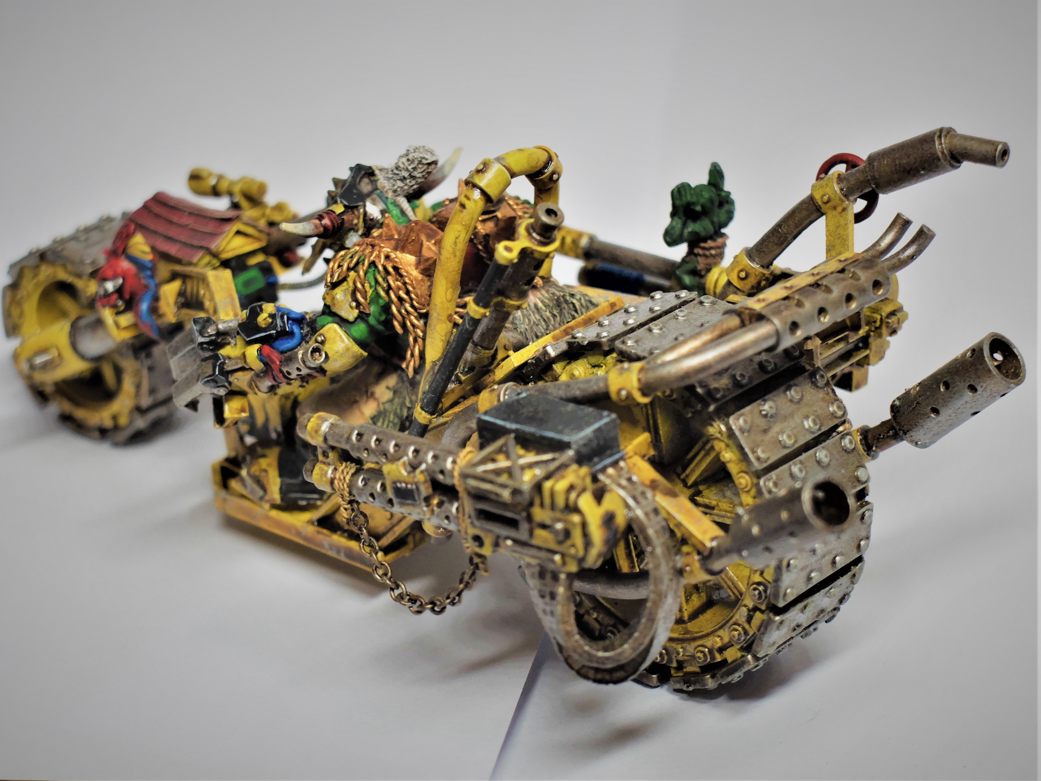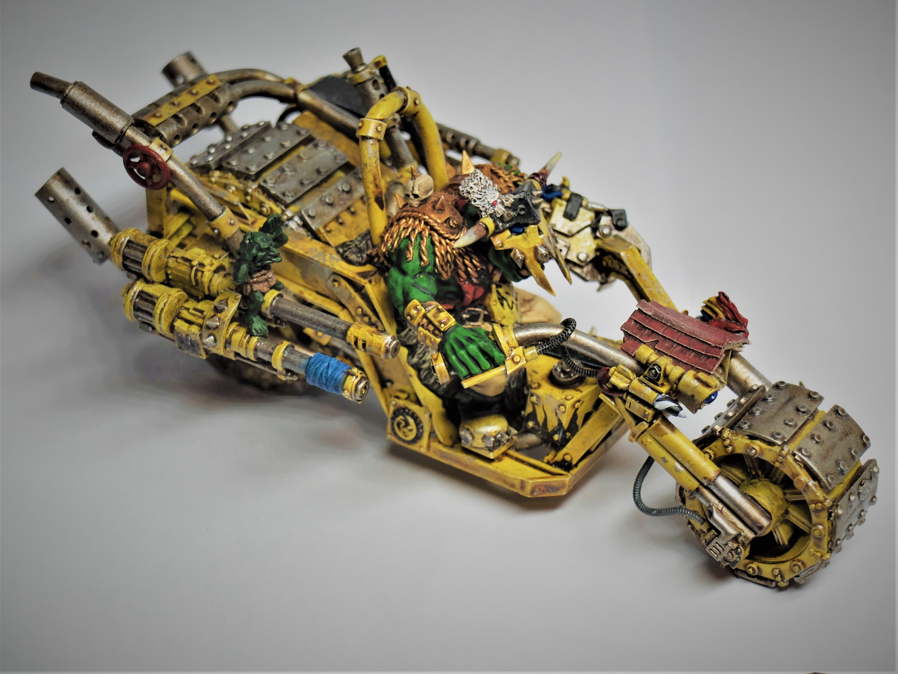 Ork Warboss on Warbike - ridiculously huge conversion - great fun to do!