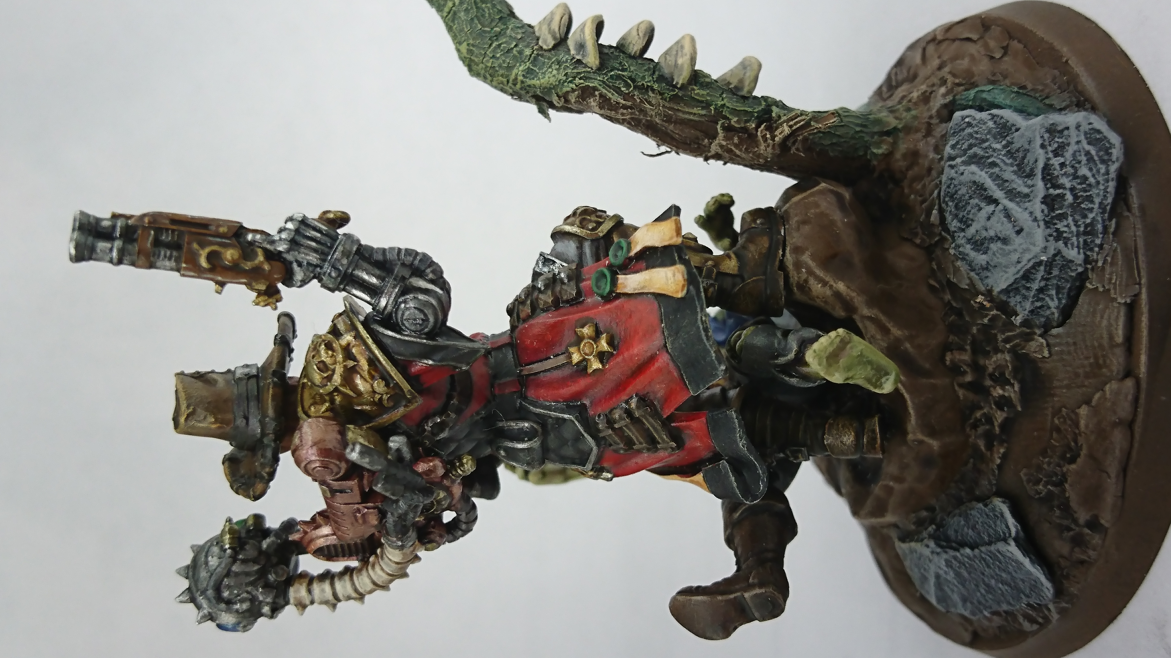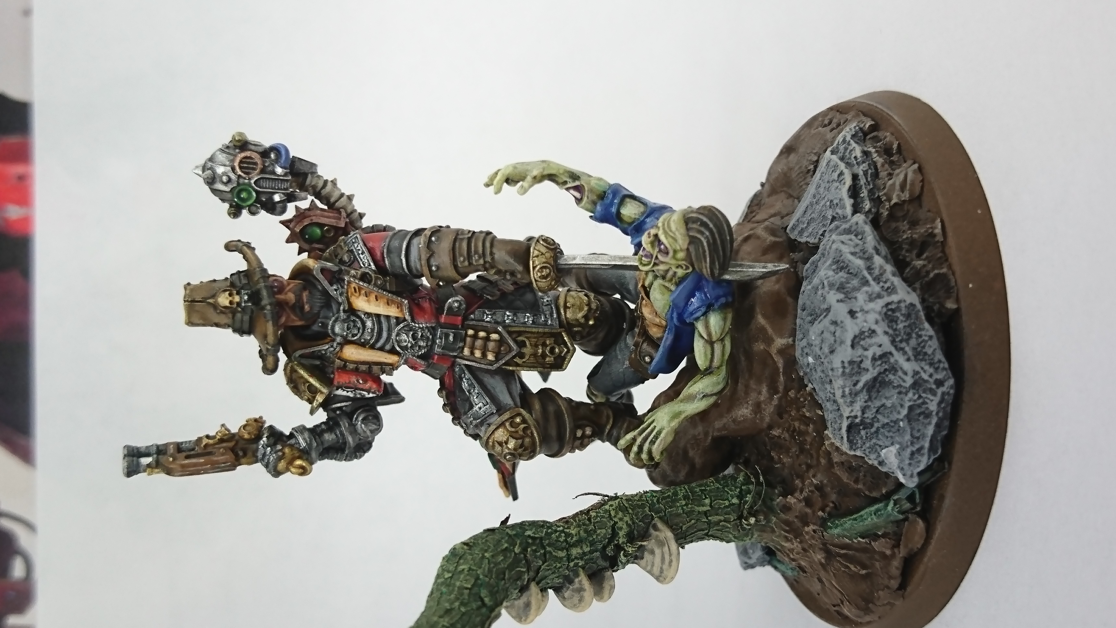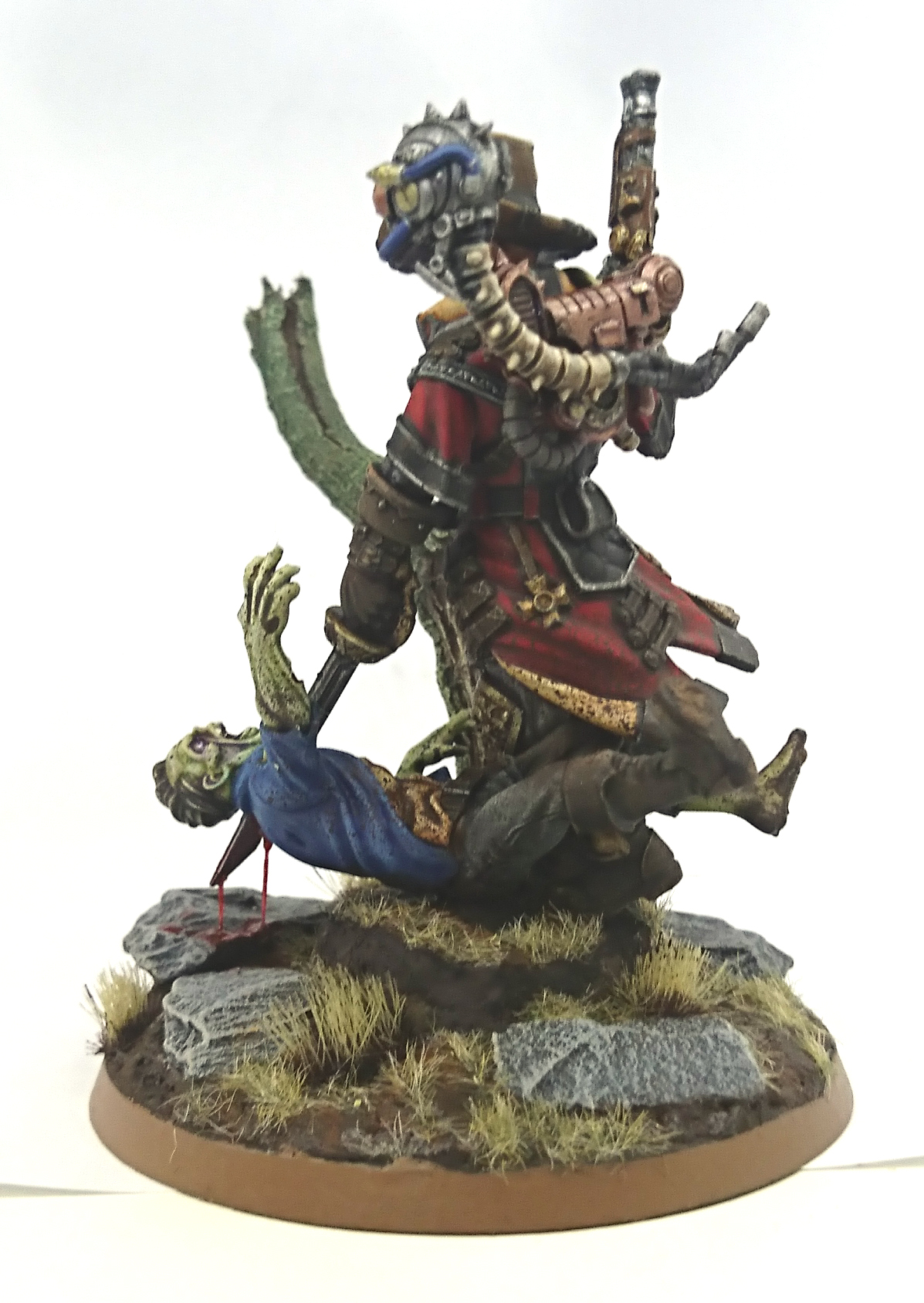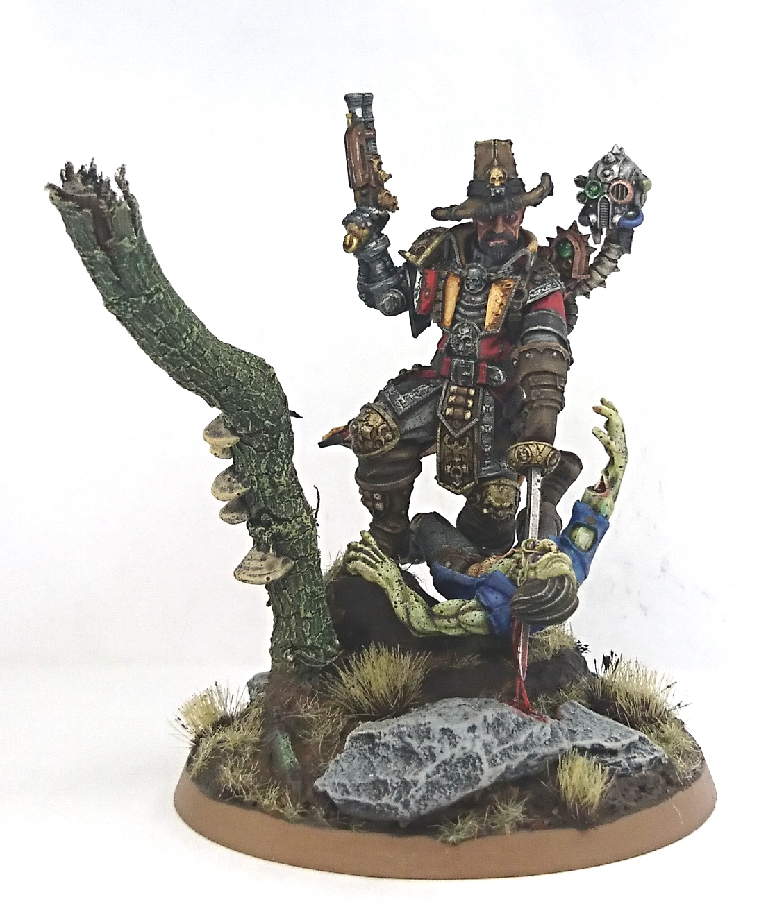 That inquisitor/witch hunter/whatever is Amazing! The model and the paint job. Love the base too!
