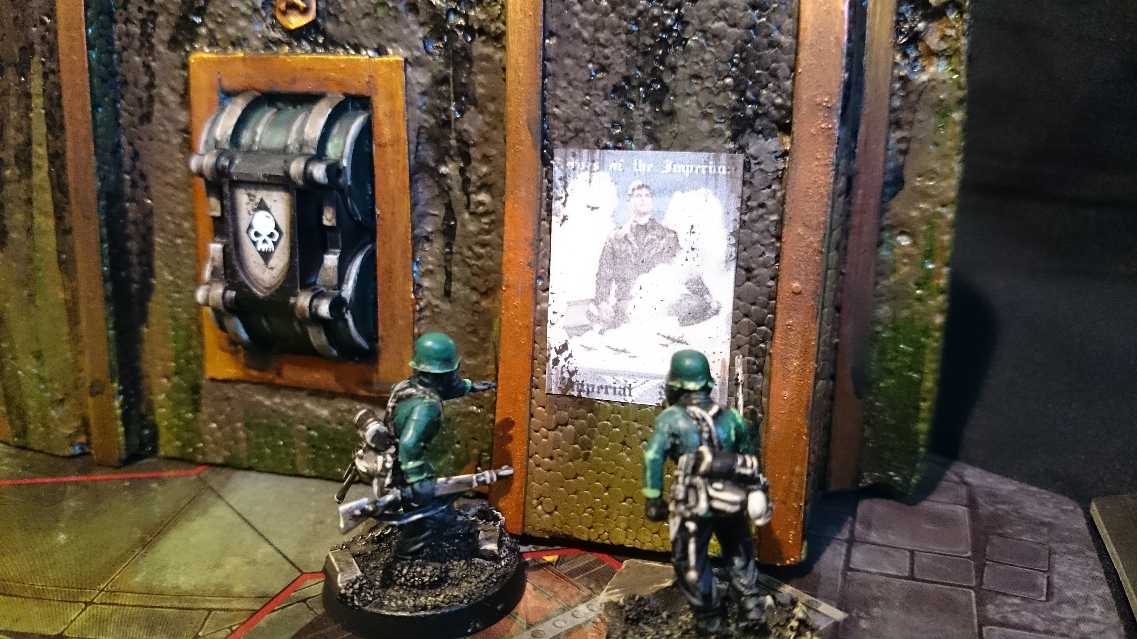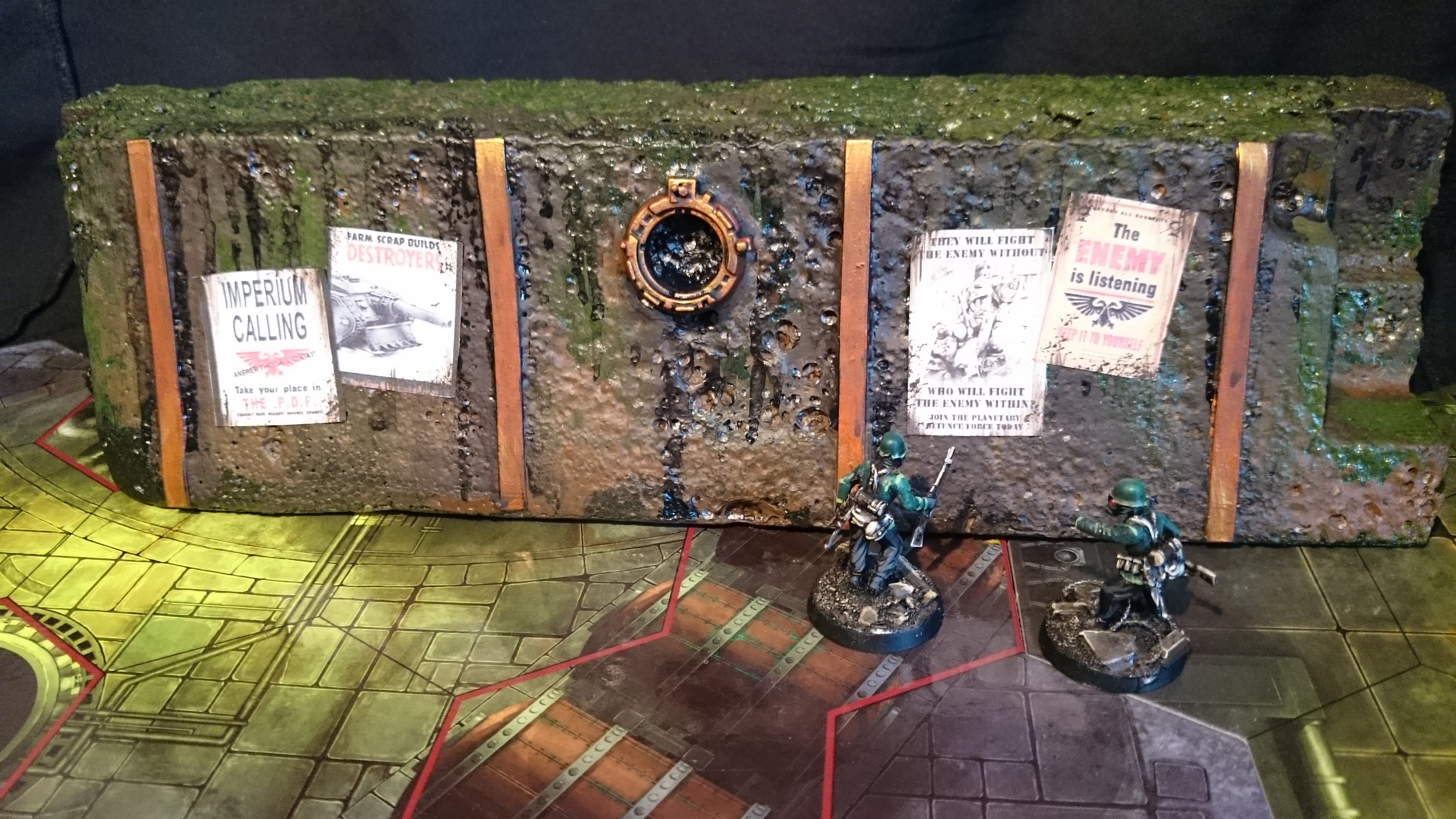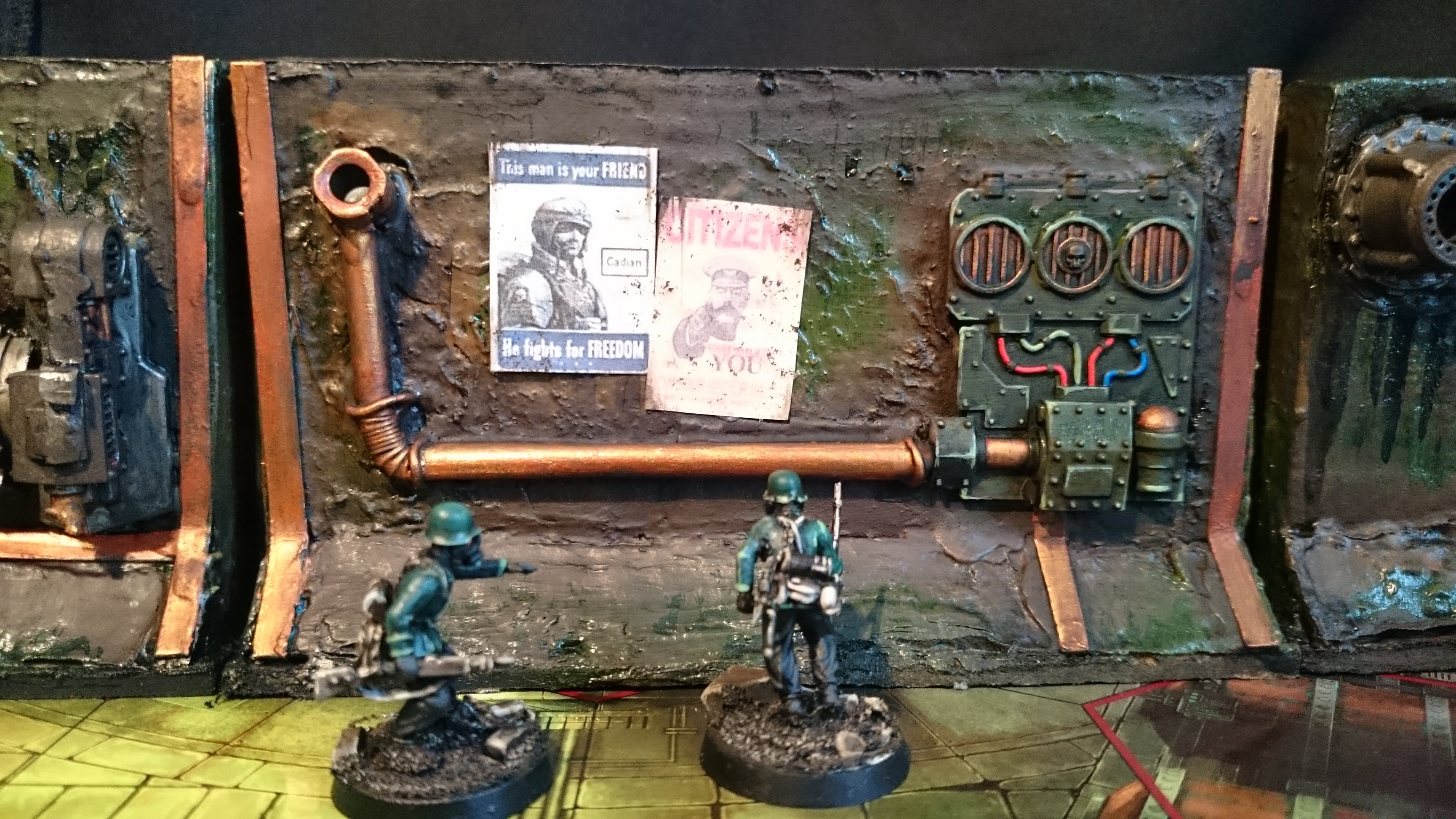 I built a bunch of stuff maybe a year ago at the club, but didn't find time to paint them until now. Still a bit of a rush job, but works pretty well I think. It was also really fun to try using posters, weathering those was simply delightful.