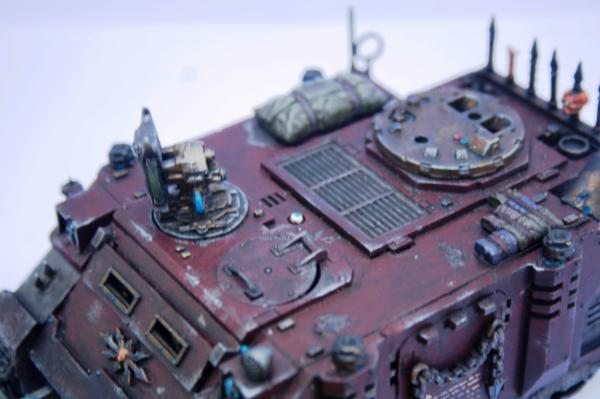 All shall be drowned in shells, Kernel... Shells of pasta! Automatically Appended Next Post: Ahoy! Here is the Rhino these havocs have claimed their own, about 95% completed, will just require a tad more work on the back hatch around the eye of horus and some writing on its sides perhaps.. the turret weaponry is in the mekshop currently...