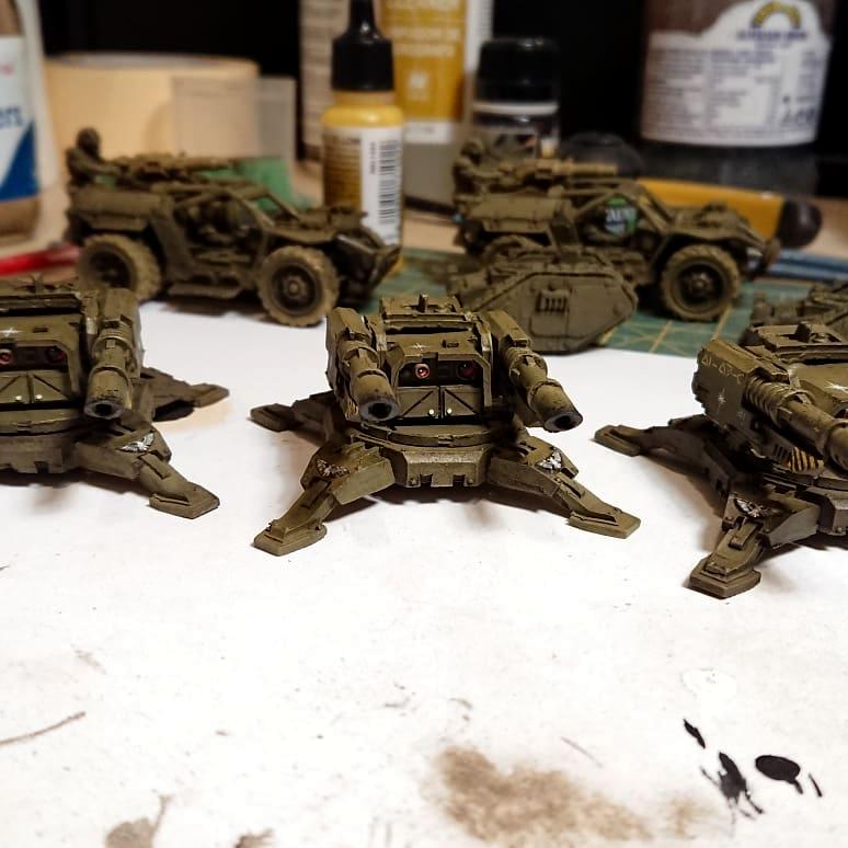 Done some freehand on the tarantulas with the star of Elysia on the lascannons and on top as a form of recognition for aircraft.