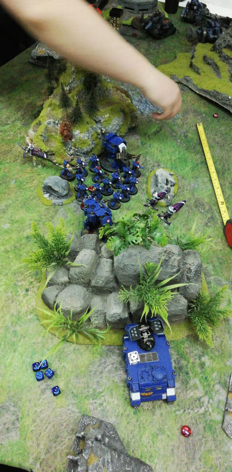 I did not deploy them on the board, but deepstruck them in turn 2 between my Captain (MVP again), Lieutenant and Ancient. With rerolls they still only managed 2 wounds on the Venomcrawler (which is about average).