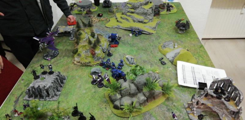 Last weekend we had a game from the Shadowspear mini campaign (with additional models from our collections) 2x Chaos Marines against Ultramarines and Tau.