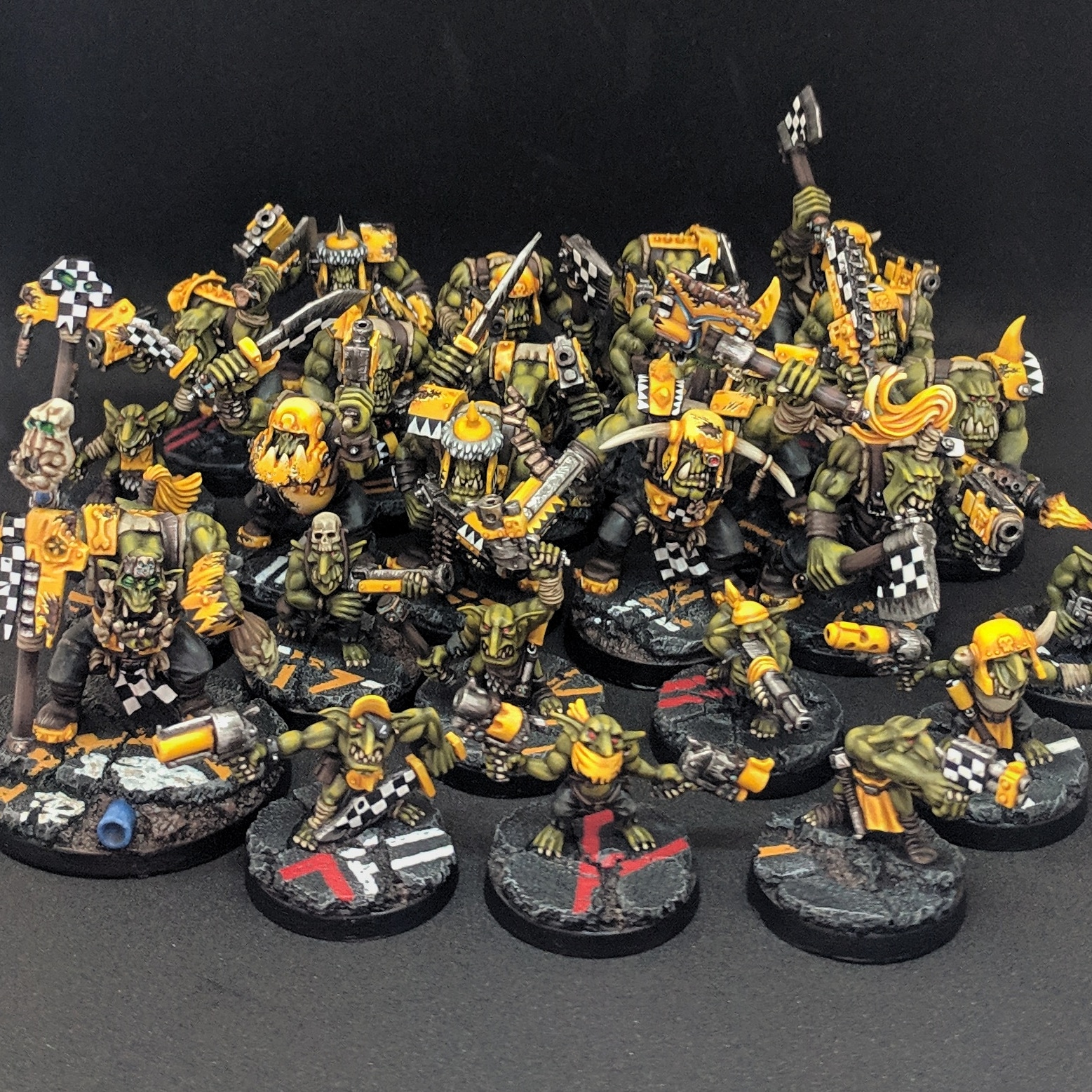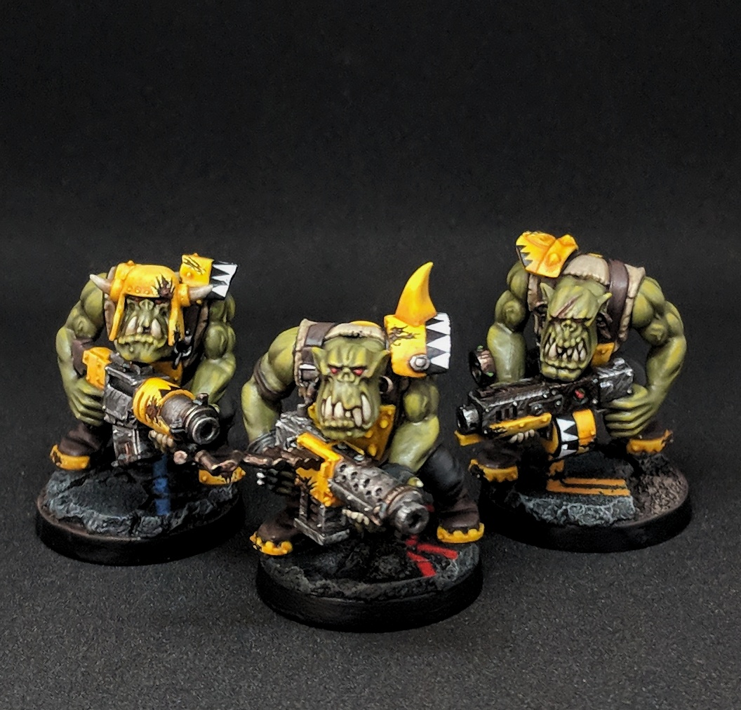 Amazing work on these Orks! I love the bold, crisp yellow and the complimenting muted skin tone. Your freehand is cleanly executed but still orky, and you haven't gone overboard with weathering. Looking forward to seeing more from you!