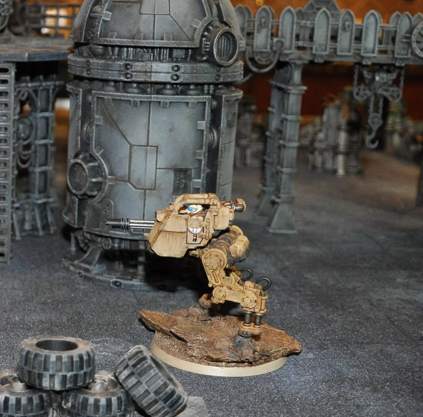 The sentinels participated in a battle report, where they tried (unsuccessfully) to take on this Contemptor Dreadnought.