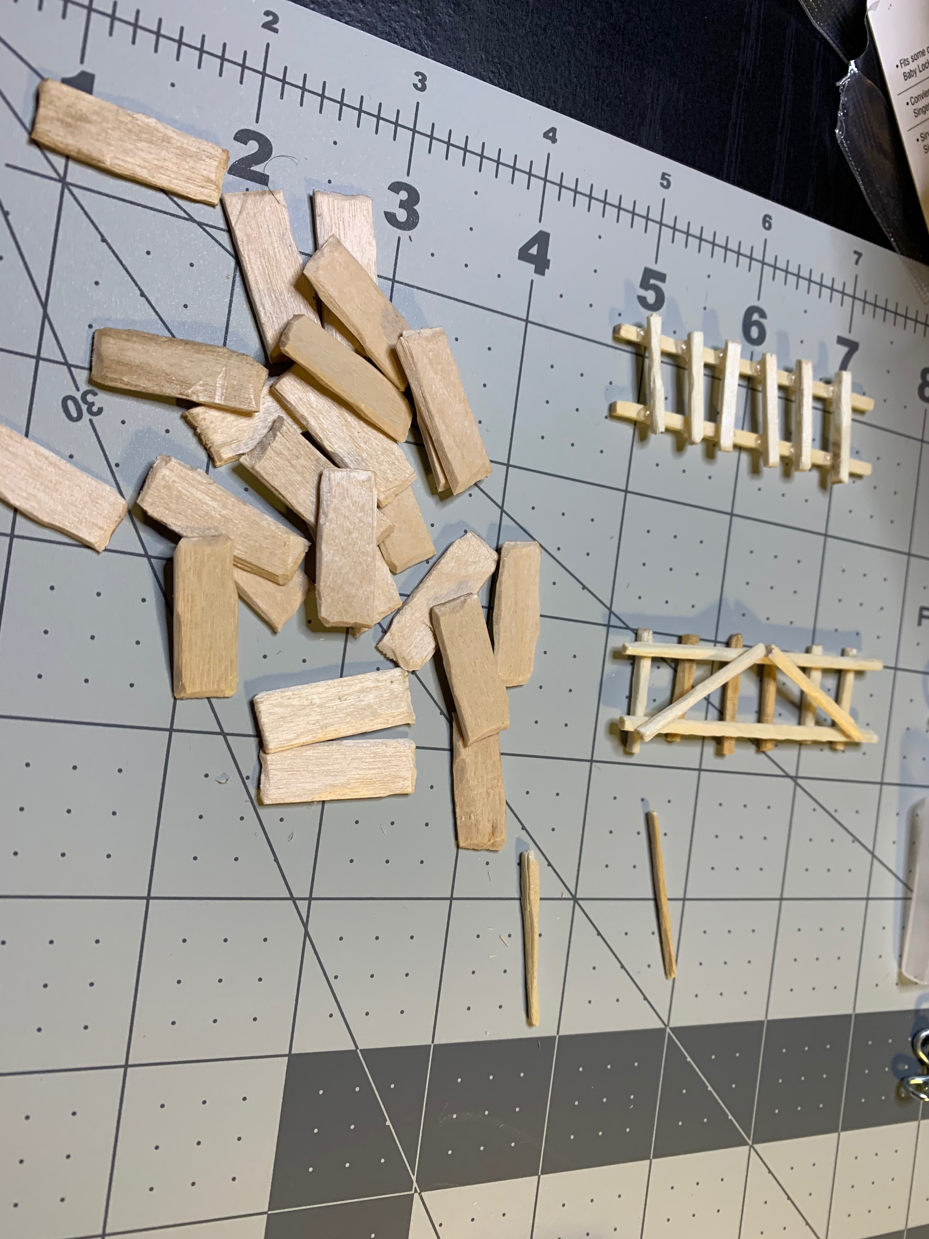 Here is the other side so you can see the height of the low wall, and the three additions of detail from the cut-up close pegs. They glue easily with polystyrene cement.