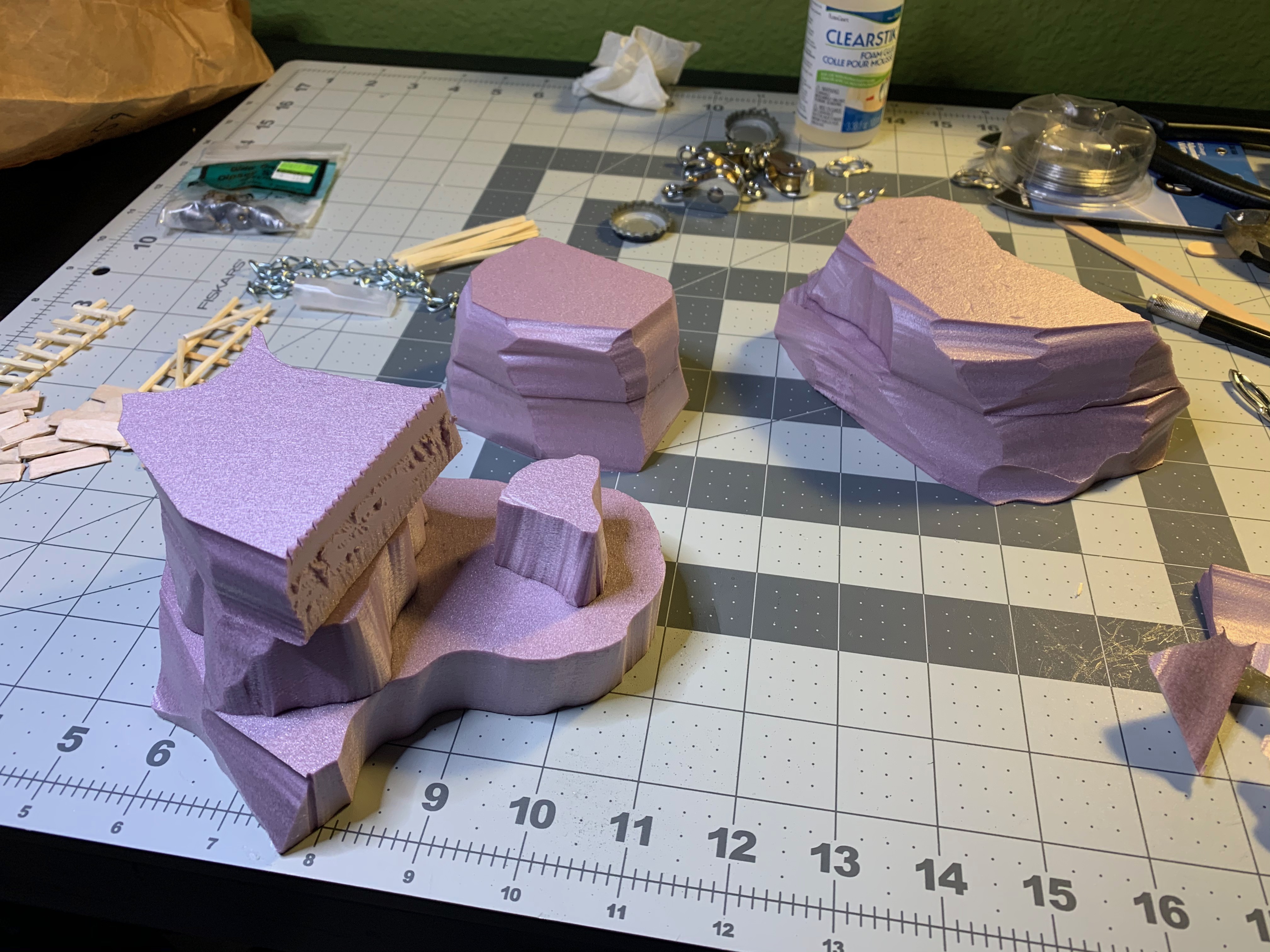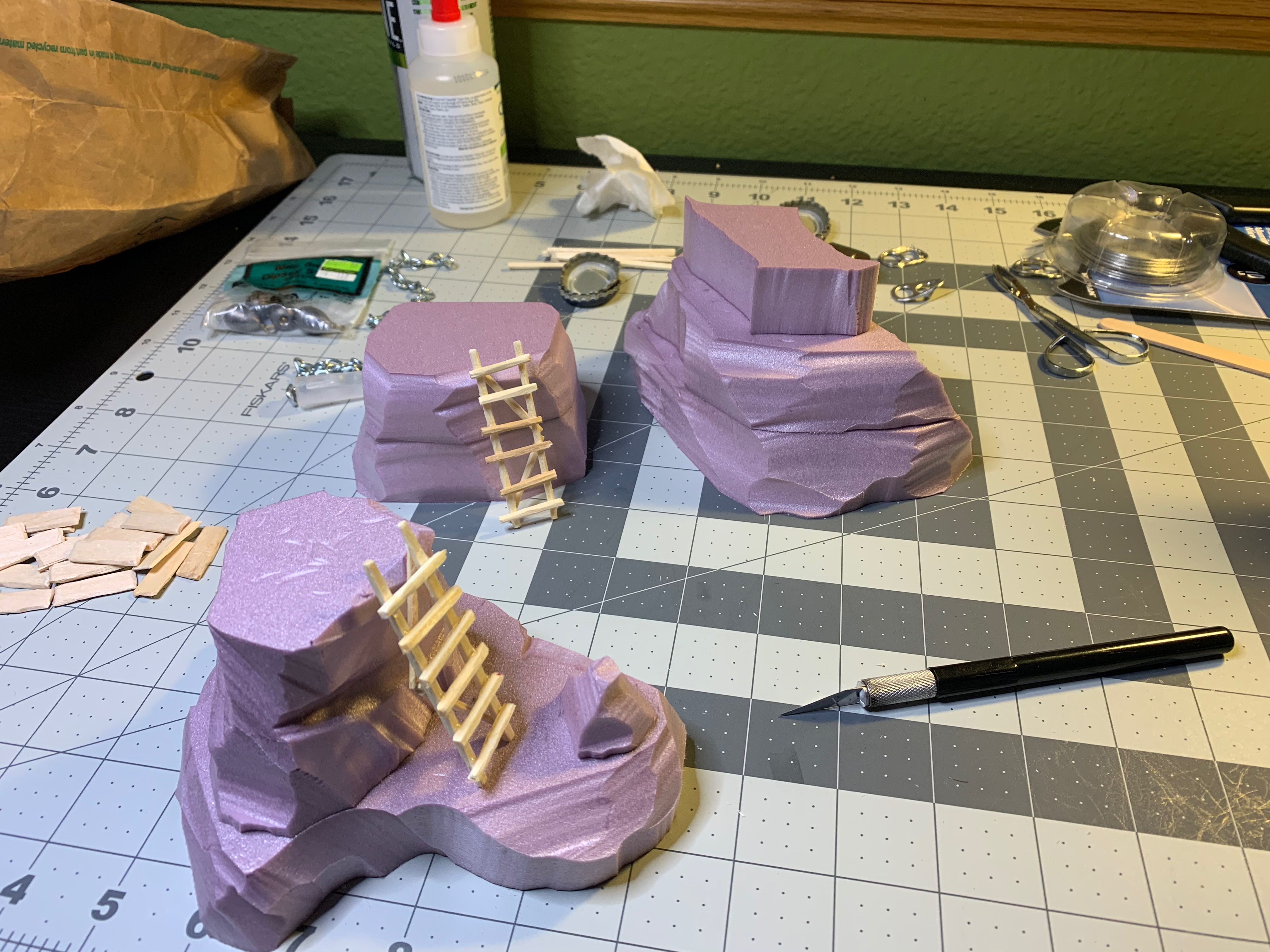 Doing some painting today. Trying to get a solid coat on these and then I'll start texturing. Also, I'm going to connect them with rope and plank bridges and ladders.