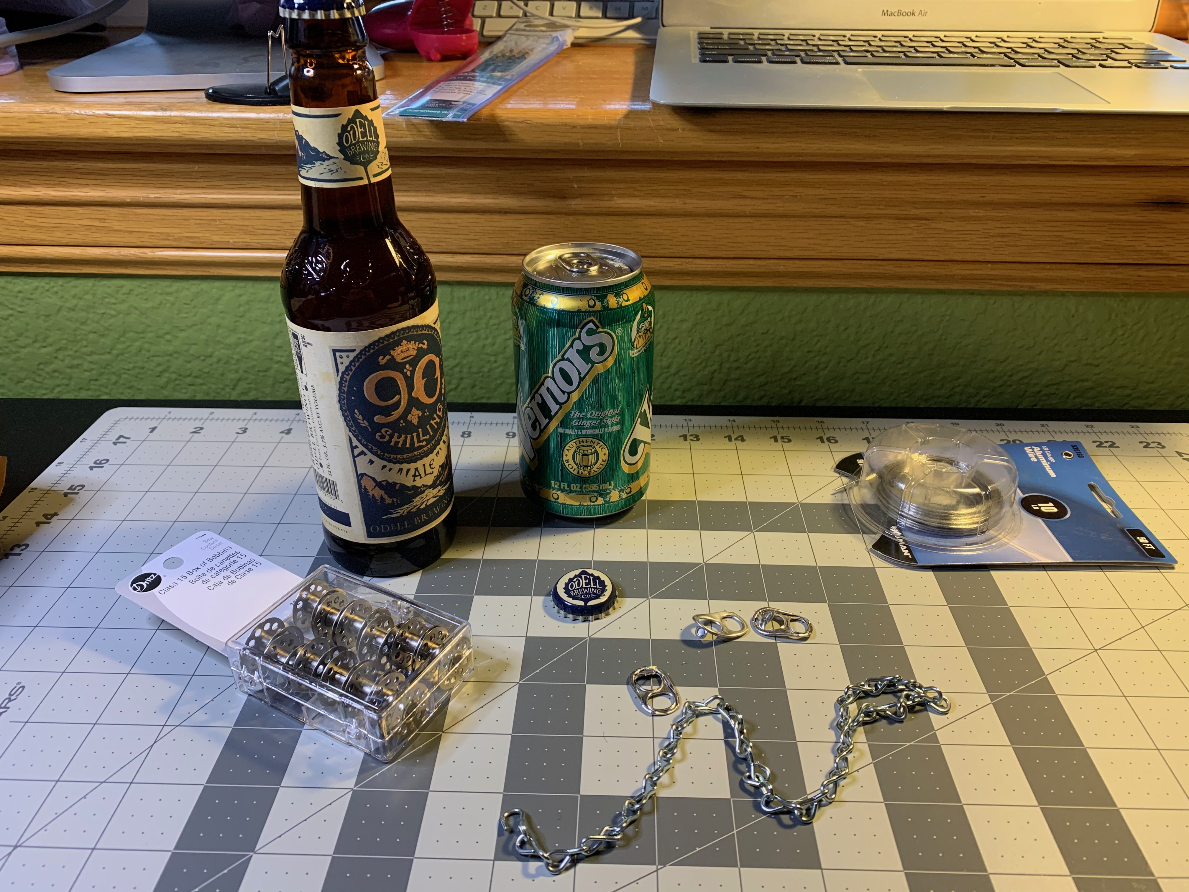 The soda tabs are a really interesting shape, and there has to be something I can do with them. Maybe some hooks or tools that the orcs could be using.