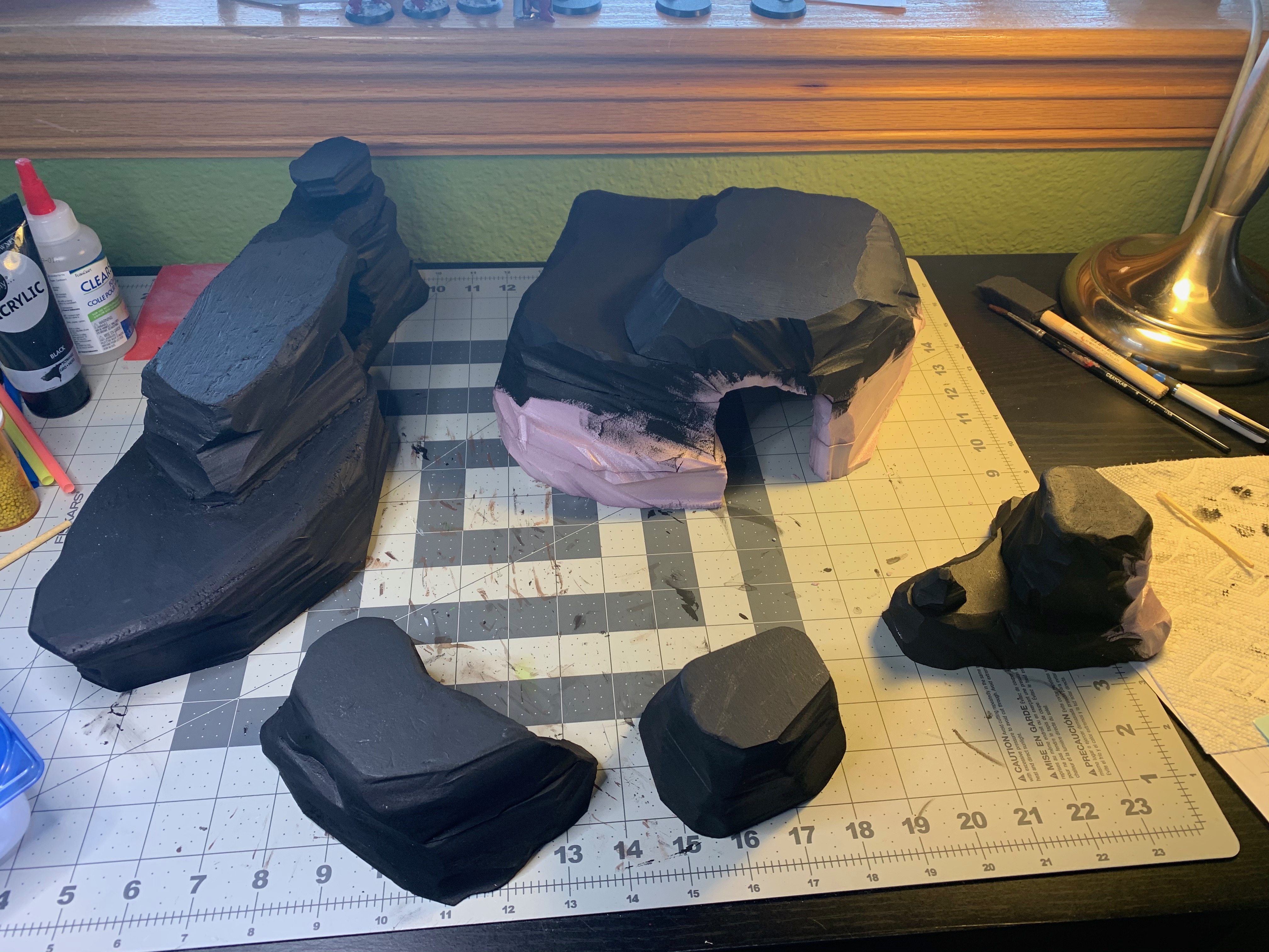 DJ, those are looking great! I also finally got around to painting my pink foam, which makes a huge difference in picturing the final project. Have you thought about modeling the liquid metal somehow?
