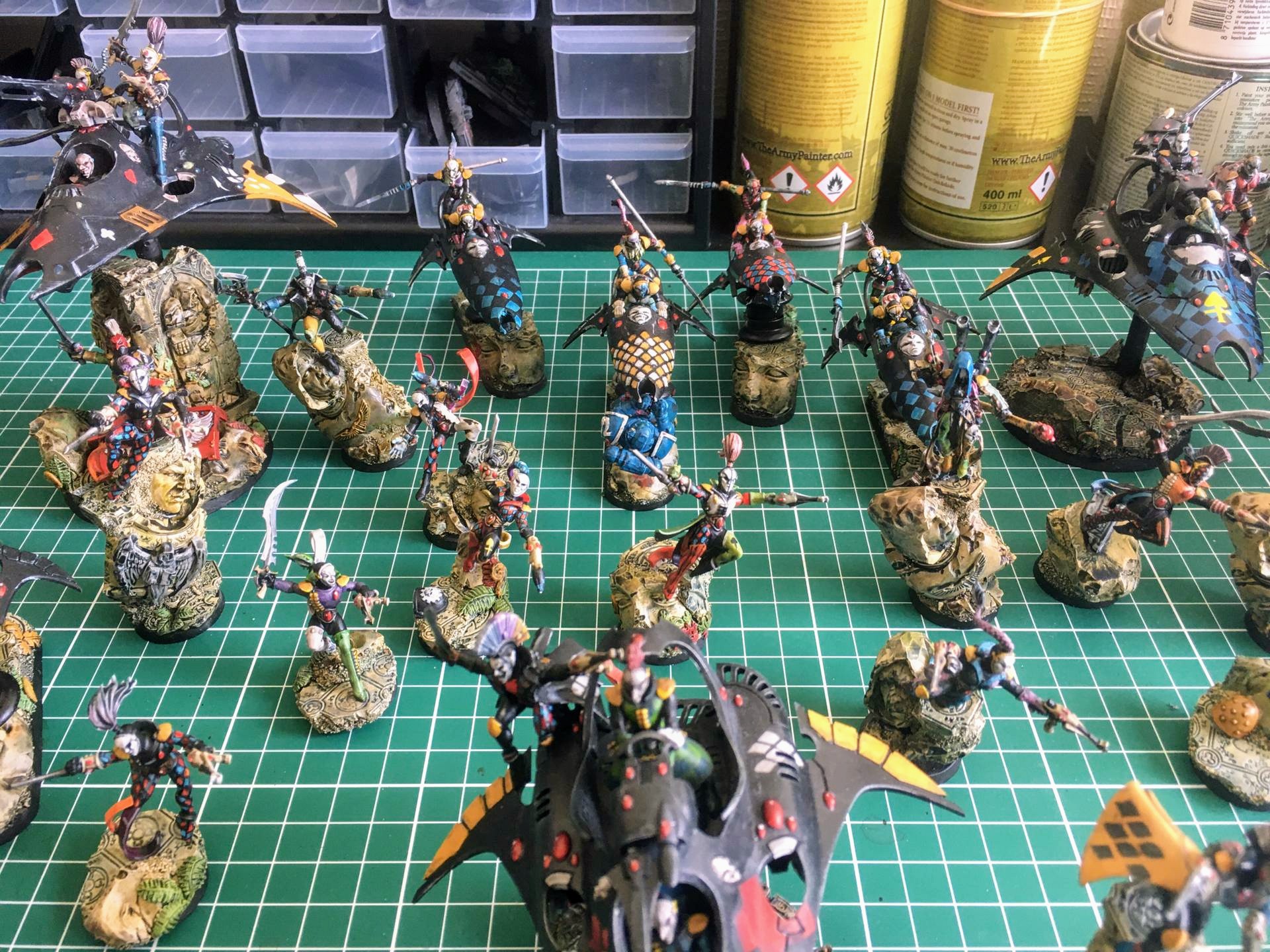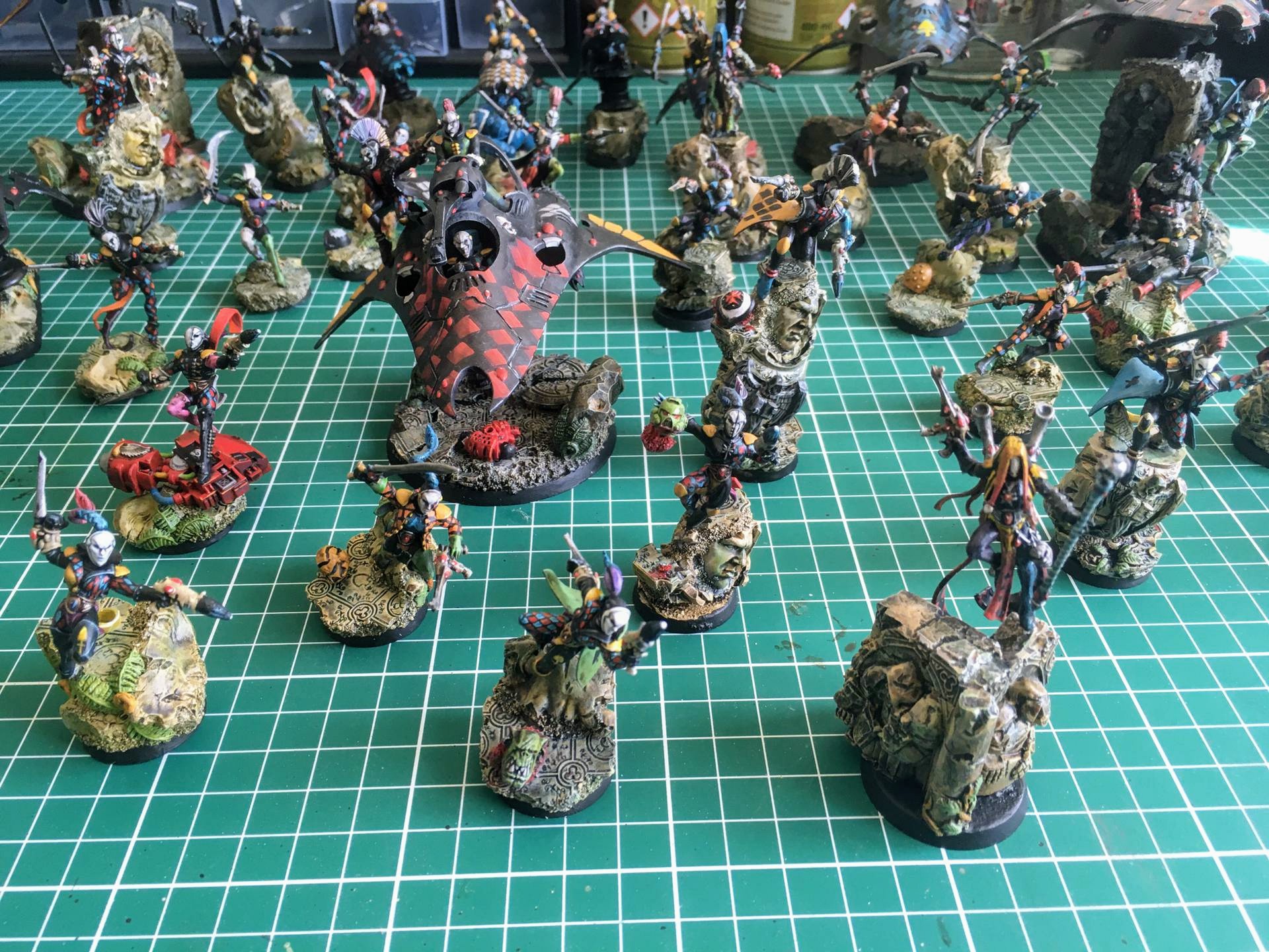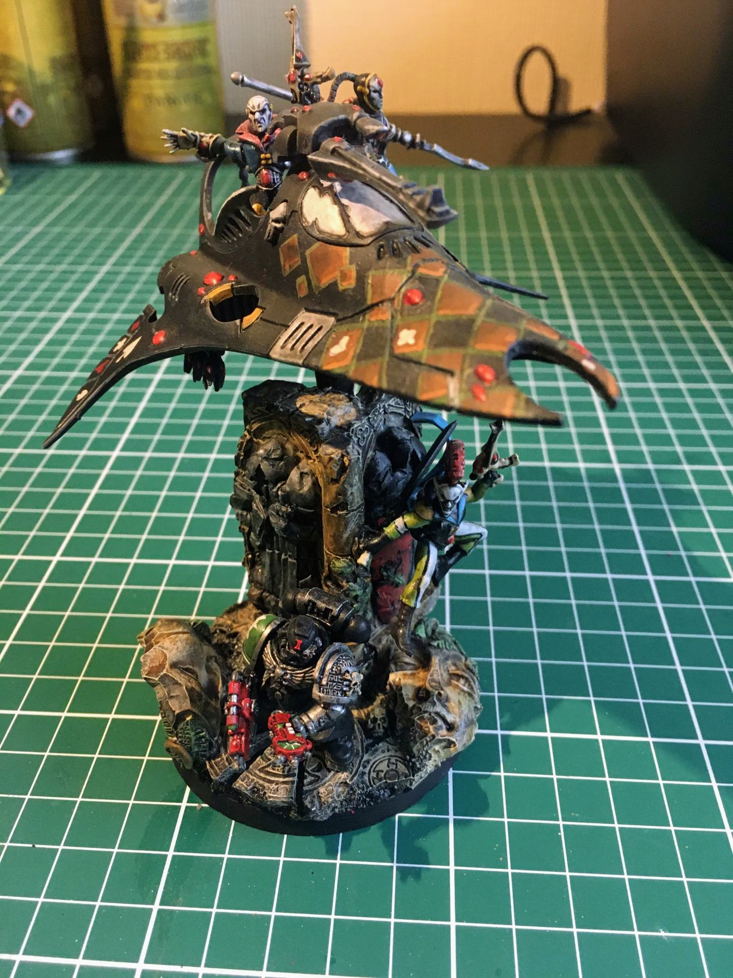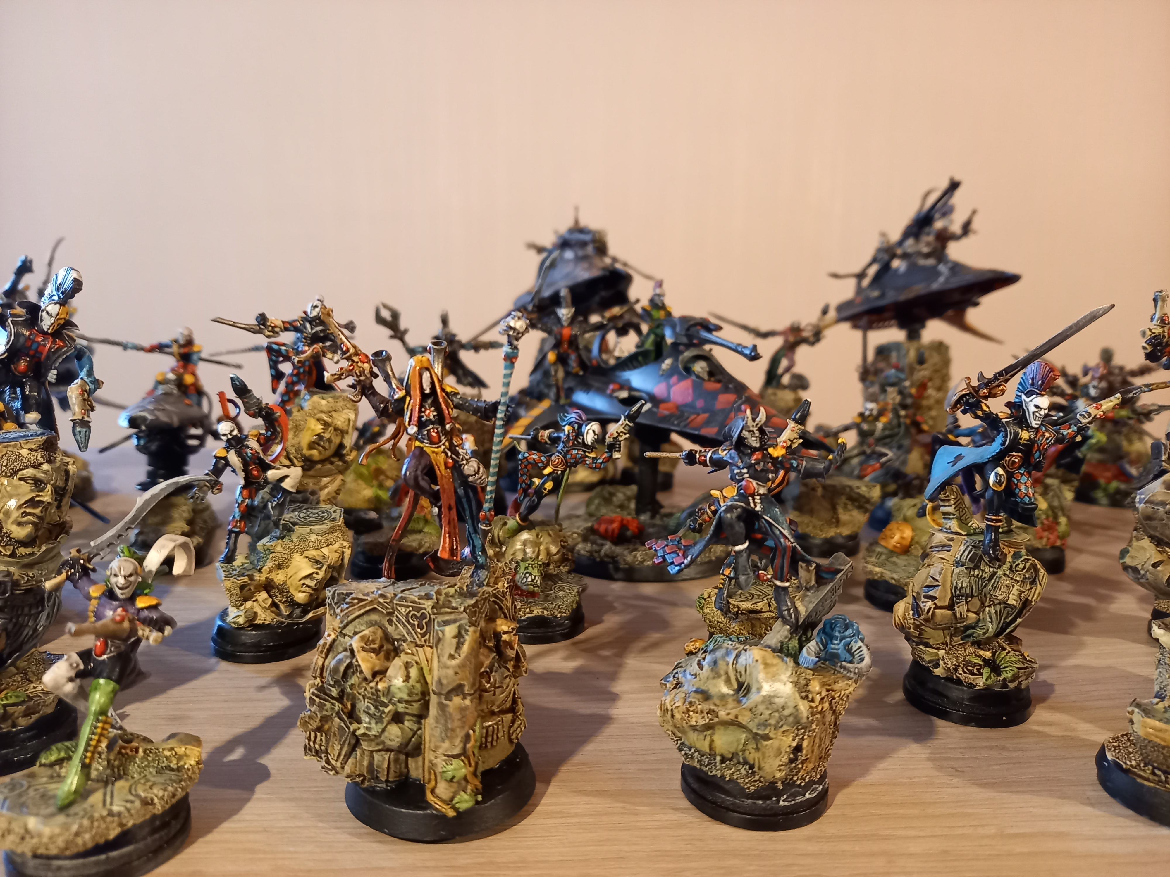I think it does the job! Lends itself nicely to the underhivey aesthetic of the army. I'm not up to date with harlequin lingo but the last guy in the post two above this with the ork head on his base has got to be my favourite - great colours, pose and lovely work on the checks.
