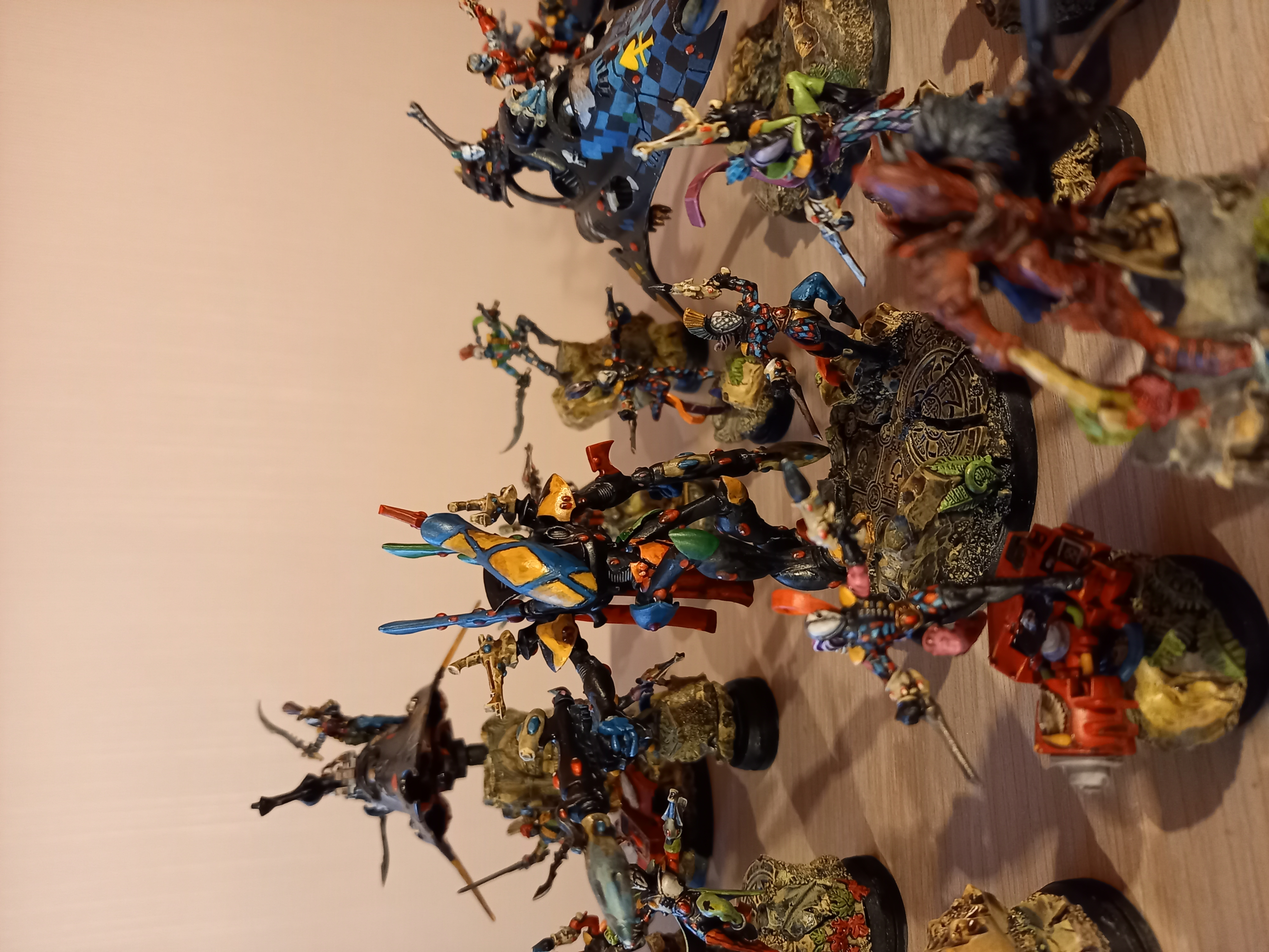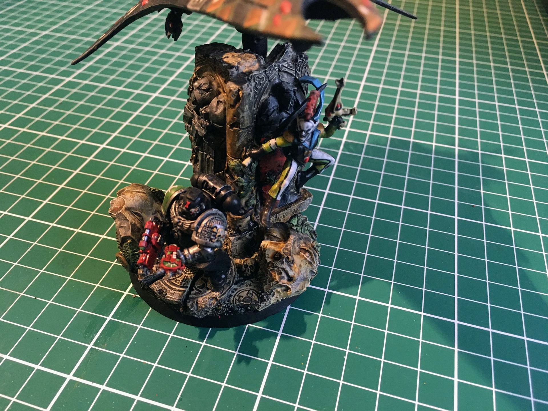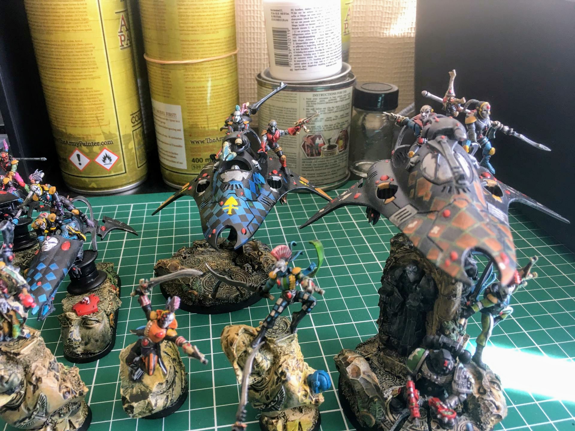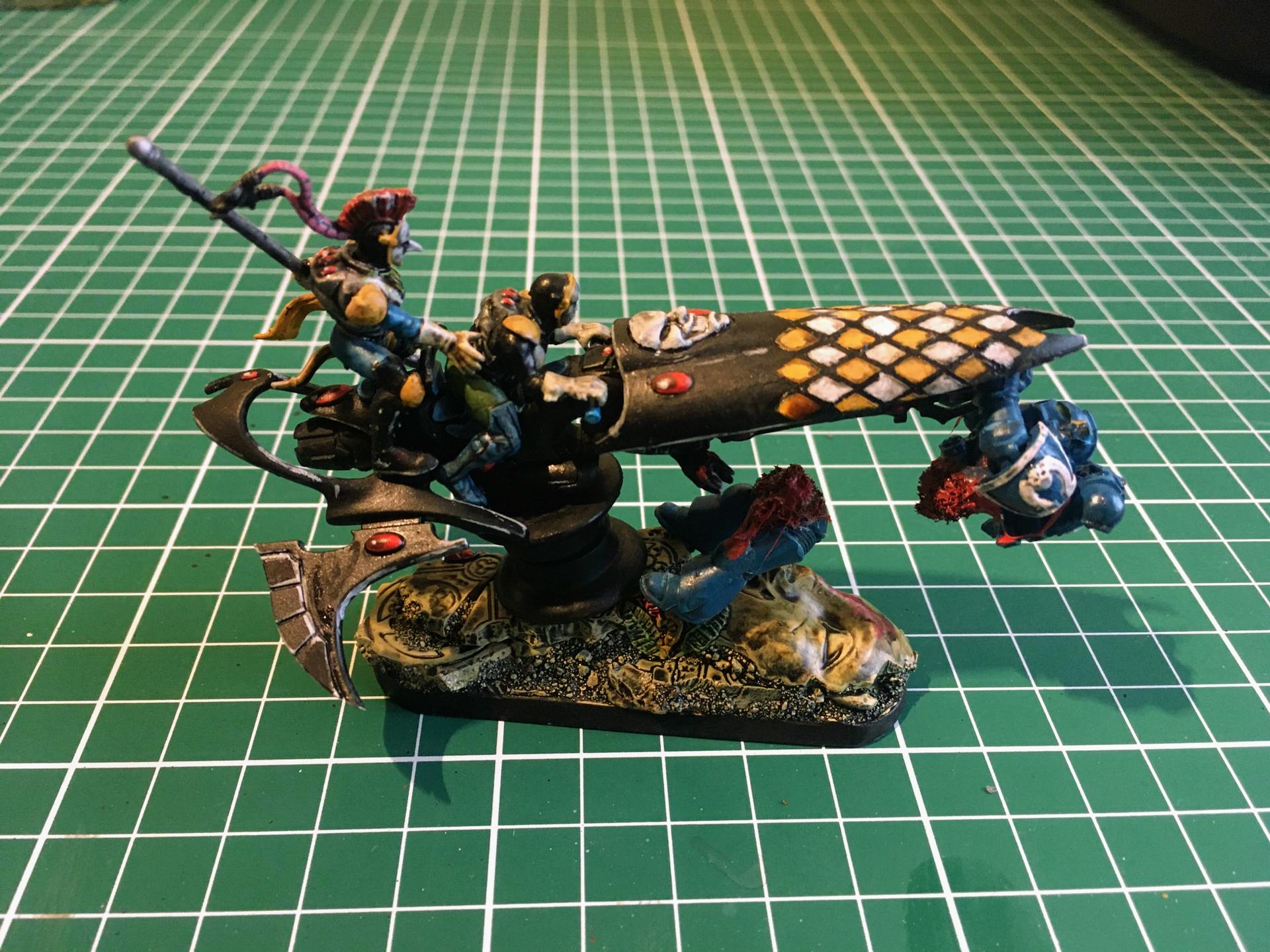 I think it does the job! Lends itself nicely to the underhivey aesthetic of the army. I'm not up to date with harlequin lingo but the last guy in the post two above this with the ork head on his base has got to be my favourite - great colours, pose and lovely work on the checks.