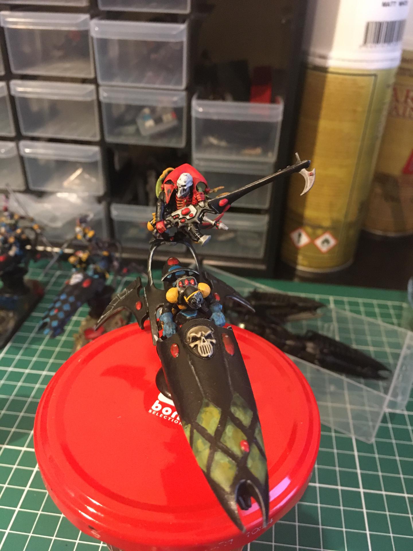 So I'm beginning to have less hobbytime because work kicks in again. But I finished some count as jetbike. Wasn't sure at first if the idea would fit the army but I think it's okay.