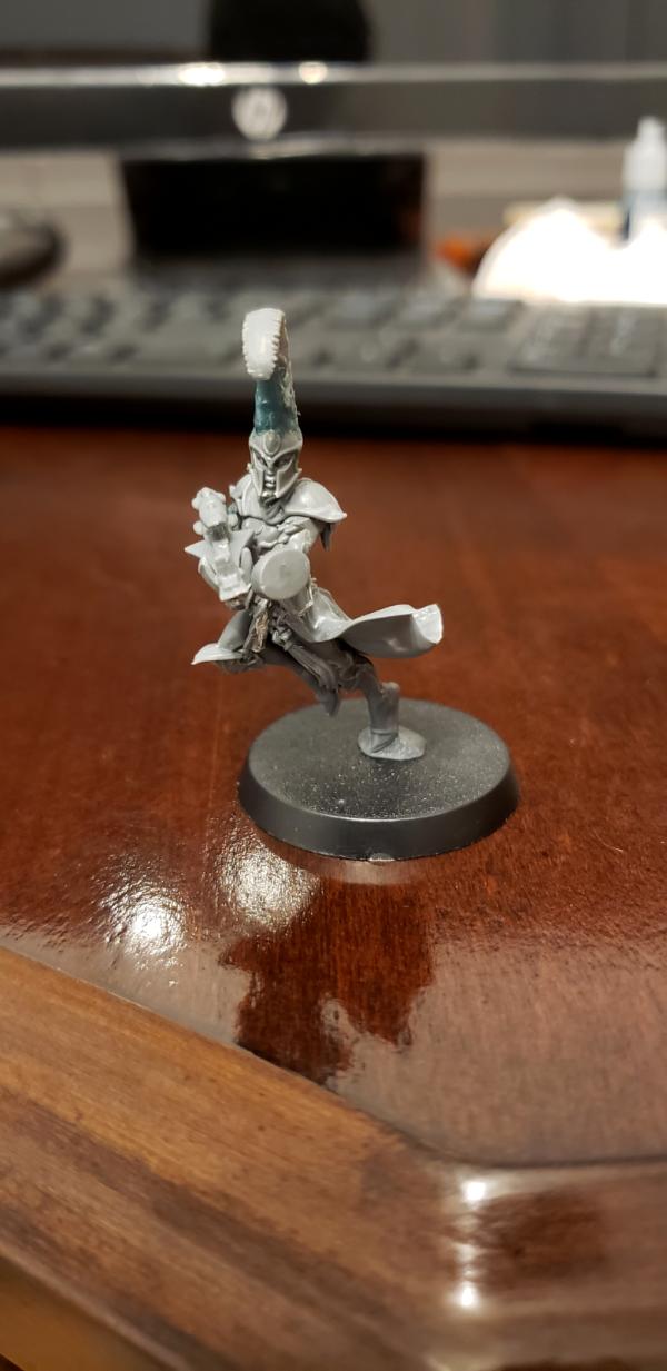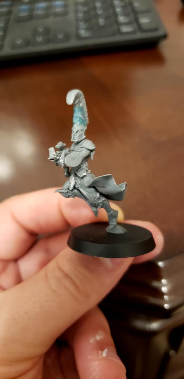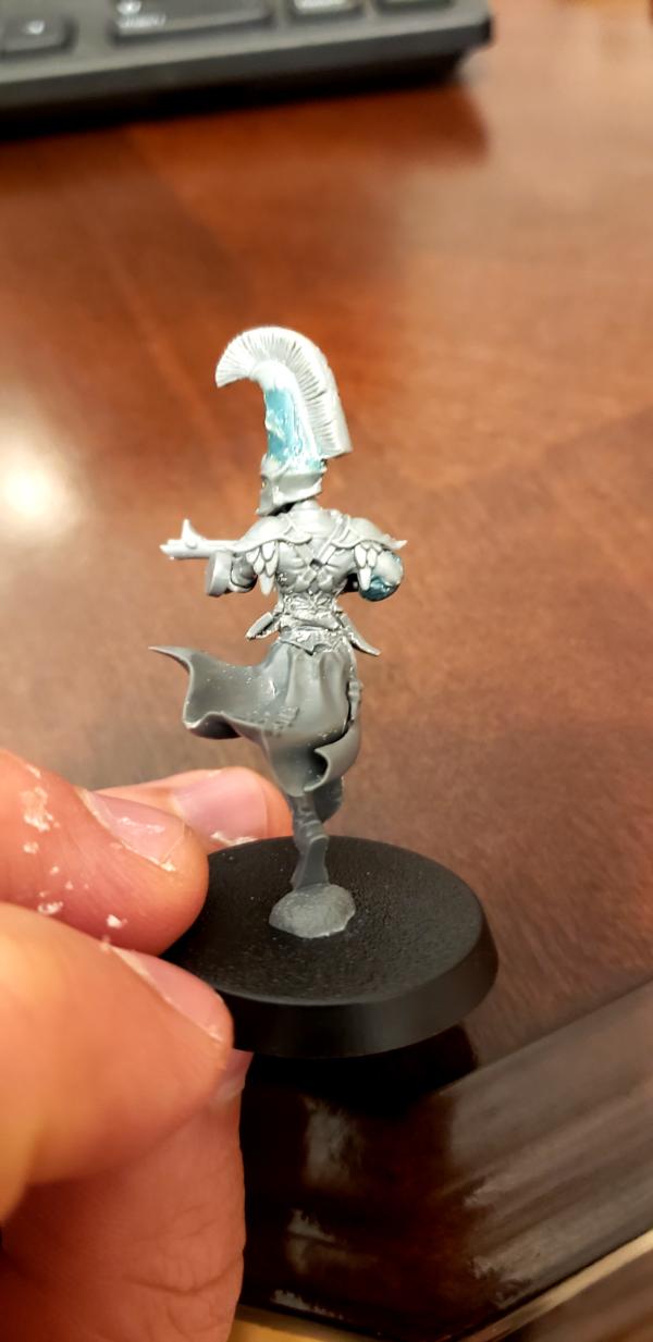 I'm not sure what to do with the arm "disk." This is where the Vanari Warden shield gets glued and it looks kind of awkward. However, I could try to freehand some "ying-yang" symbols that Asurmen is so prone to wear. I could add some runes or some Eldar bits too. Or I could clip it off and sculpt over it but that seems hard on such a small, finicky bit.