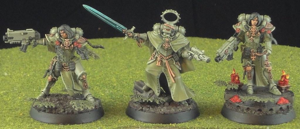 Tariana Palos, Canoness with Blessed Blade and Fusion Pistol, and Amalia Novena. So much fiddly bits.