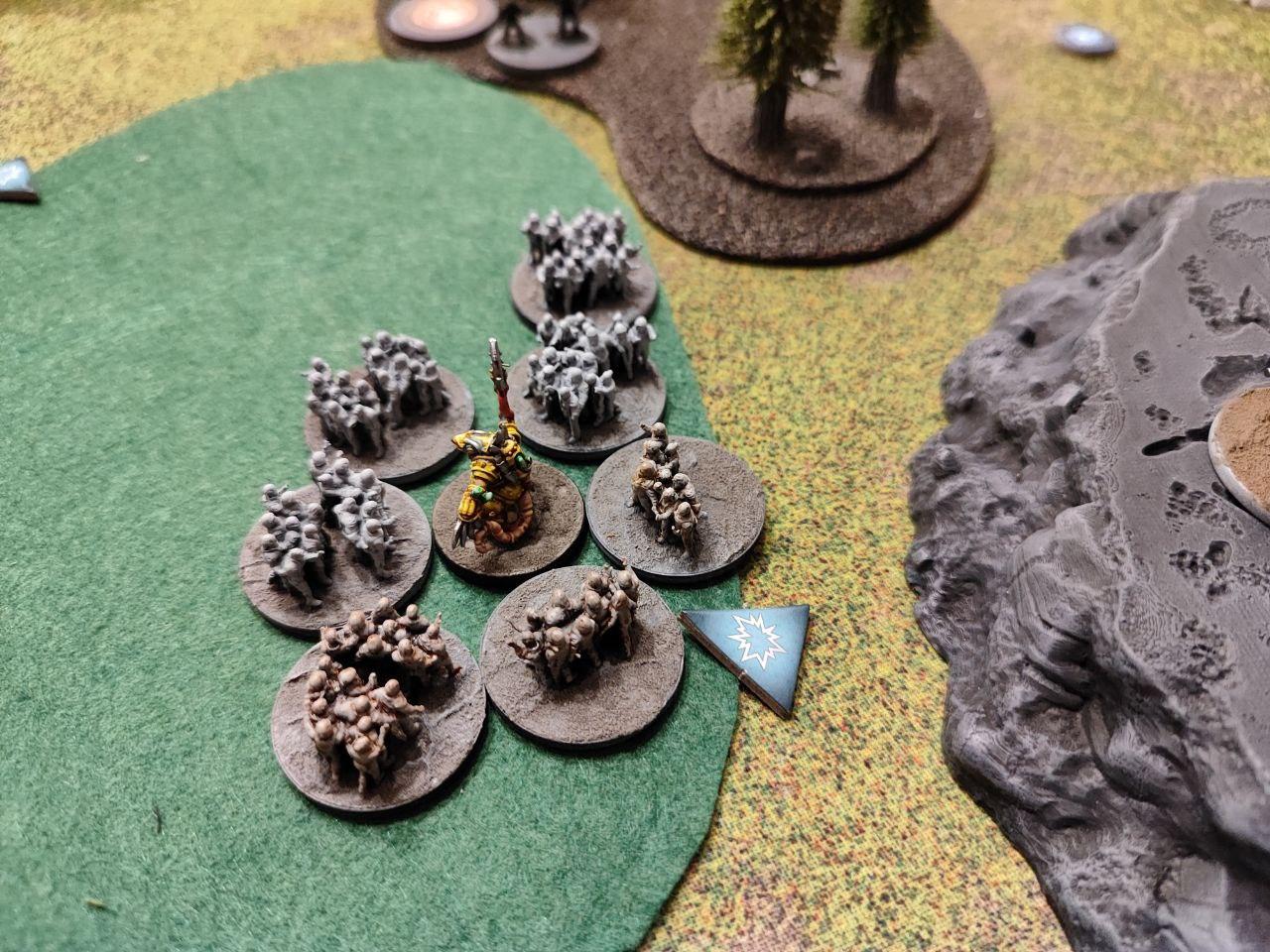 Plague player won the recon roll so chose the northern deployment zone and started deploying units. The Veer-myn player placed the Tunnelers and Nightmares on Reserve and won the first Initiative roll.