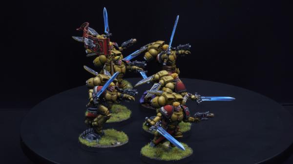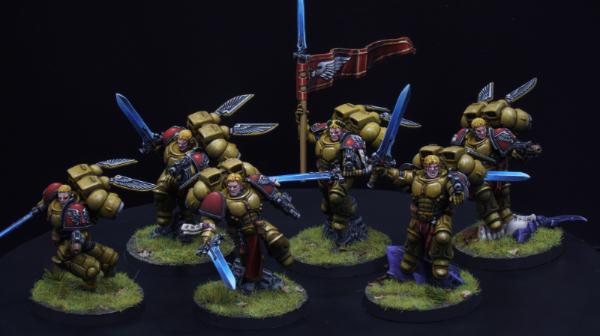 I've learned a lot about painting faces and eyes thanks to these ones. I wanted them to be special, so i chose bare heads. Everybody else have a helmet, mainly for convenience. But i wanted these to represent the elite.