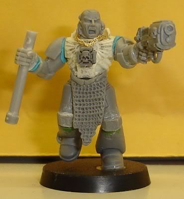 The Chaplain is now more or less done, I just need to get the final bitz to add to him and then he will be completed. Here is an up to date shot of him. Note that nothing is glued together, and that it is all blue-tacked on.   SoG