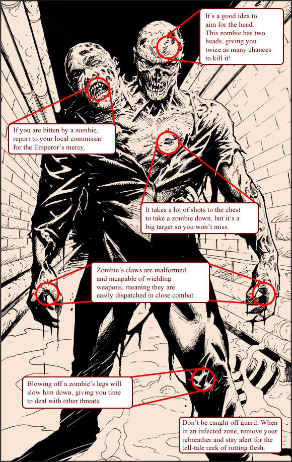 Hive of the Dead is the first ever Warhammer 40,000 gamebook. Using rules reminiscent of those in the Warhammer 40,000 tabletop game, albeit without models and terrain, with just this book, a six sided dice and a pencil, you can battle the zombie hordes from the comfort of your armchair.
