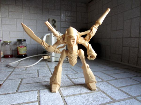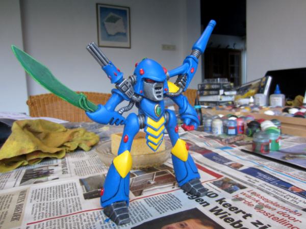 You might notice I've not attached the ammo feed cable. I magnetized it (as well as the arms and weapon mounts) so I can take it apart. The torso and legs are separate as well.