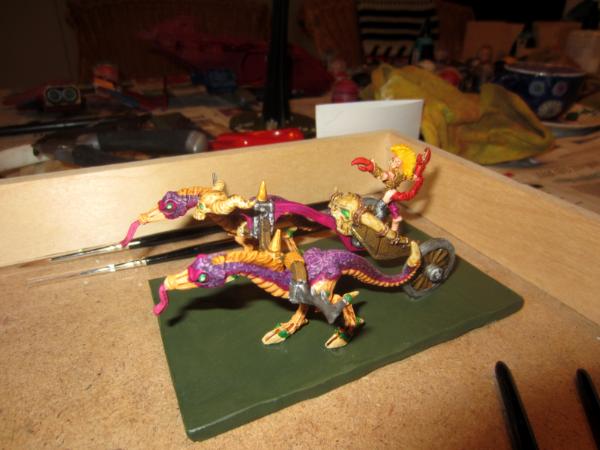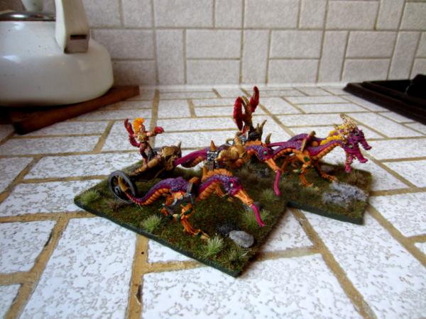 1 Slaanesh Chariot (composed entirely of parts almost older than my brother). Automatically Appended Next Post: Nearly done with the basing:
