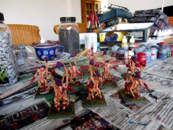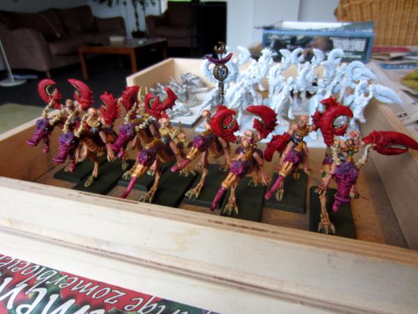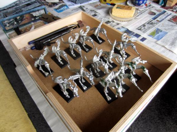 Still busy assembling the Seekers, big job doing 23 mounts and 23 riders.. and, ye Slaanesh, all the pinning!