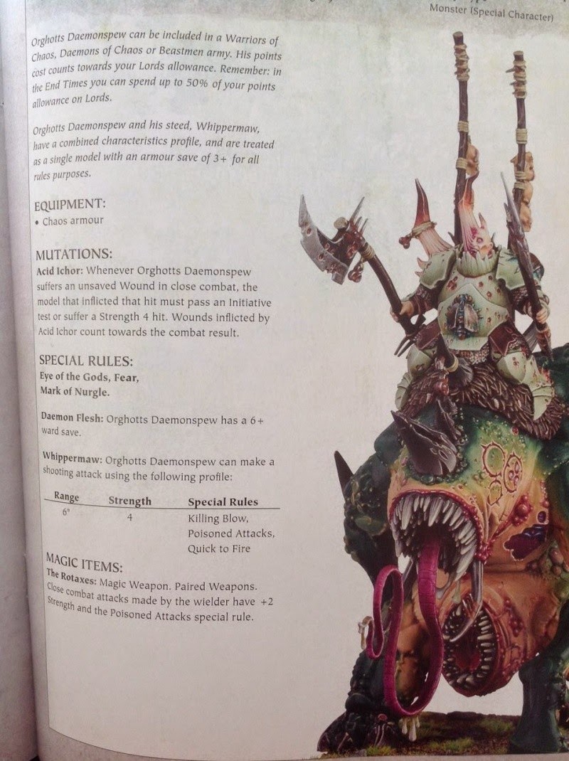 On another note, I don't understand the whining about it being a nurgle release. Warriors of Chaos received slaanesh and khorne exclusive units with the new book, now nurgle is being bumped up to match. We know GW will only release so many models with each release, so why form unrealistic expectations.
