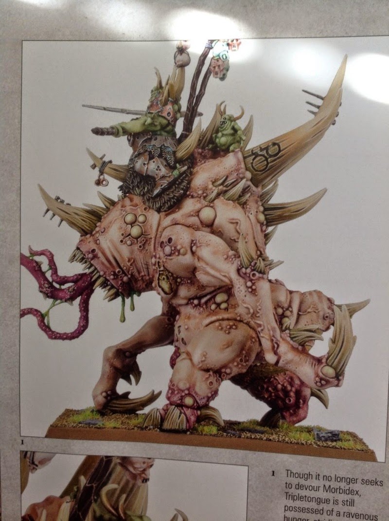 It looks like there are a lot of the boils which define Nurgle but I'm really unsure about them. It might just be that they have been painted with no variation in the skin tone but it looks like they have no texture to them, which is fine on a 28mm infantry model but at the size they have been scaled up to it's really obvious.