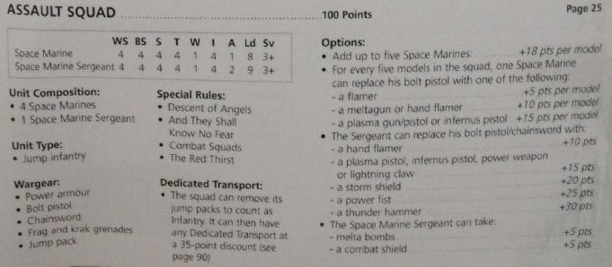 - Assault squads should be either 10-men and flying or 5-men and in Razorbacks.