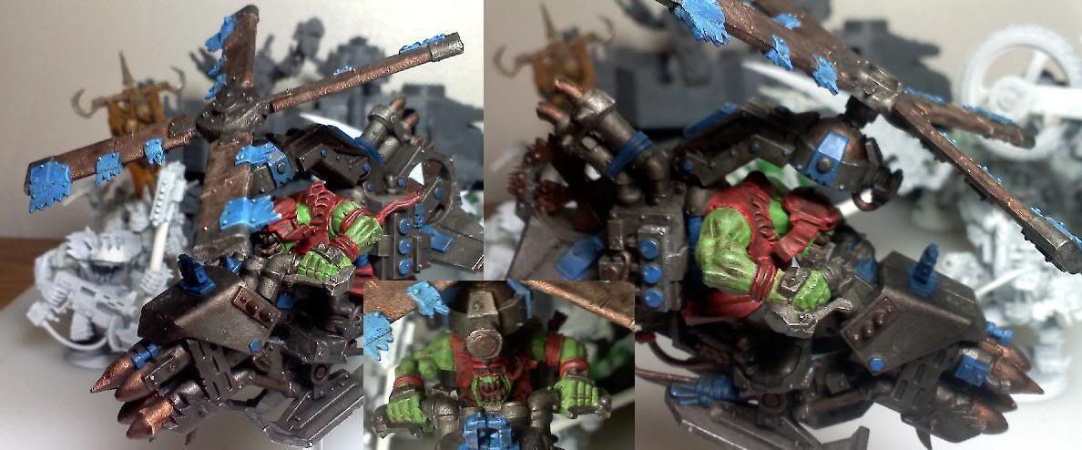 A Nob with a Big Choppa and Kombi-Rokkit. The wire holding his arm on broke through, looks like I need to patch that up.