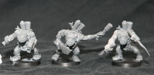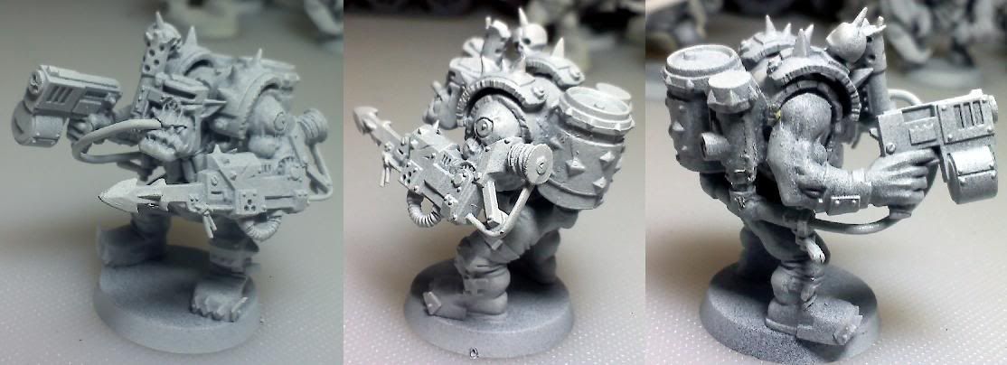 These are some of my most recent Orks. The Nob there is featuring a Waaagh! Banner and Power Klaw, the second is just a PK/ BP Nob for my Boyz (I think he looks particularly awesome), and the fella on the right there has a kustom Rokkit Launcha. I don't know what the bit is originally from, but I think it looks excellent.