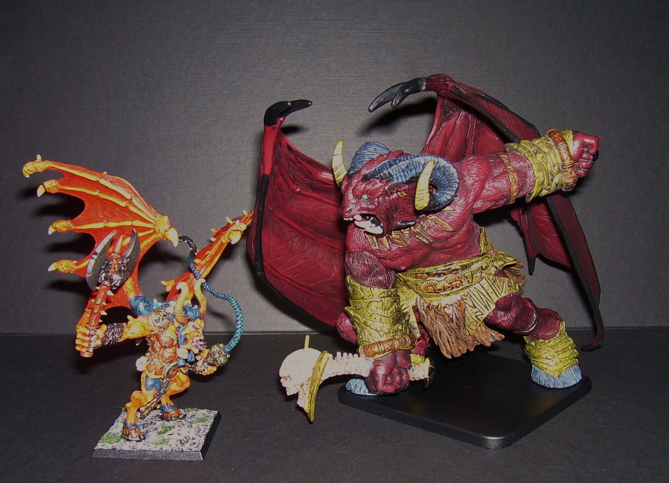i am currently modelling some D&D Devils and Demons-anyone got any ideas for models to use as a basis for conversions of specific D&D bad guys at about the same size level as the Orcus model? Pics??