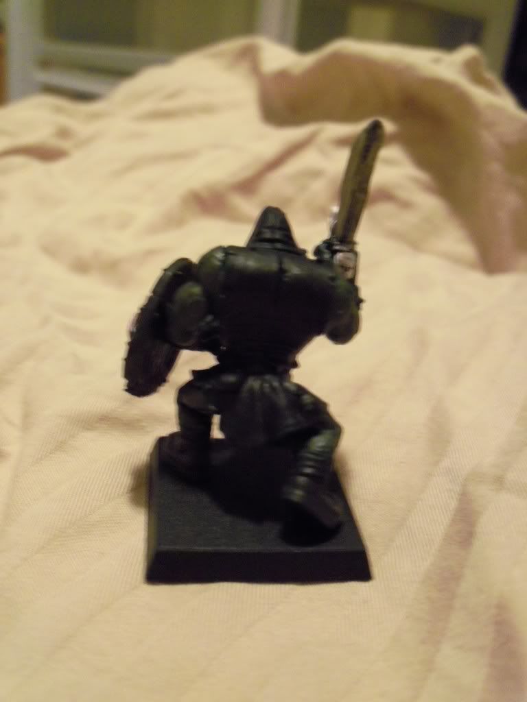 Only painted it in one session, so many parts need at least another coat of paint and I screwed up in several areas like the mouth and shield :( But what do you think about this color scheme for the Orc Boyz?