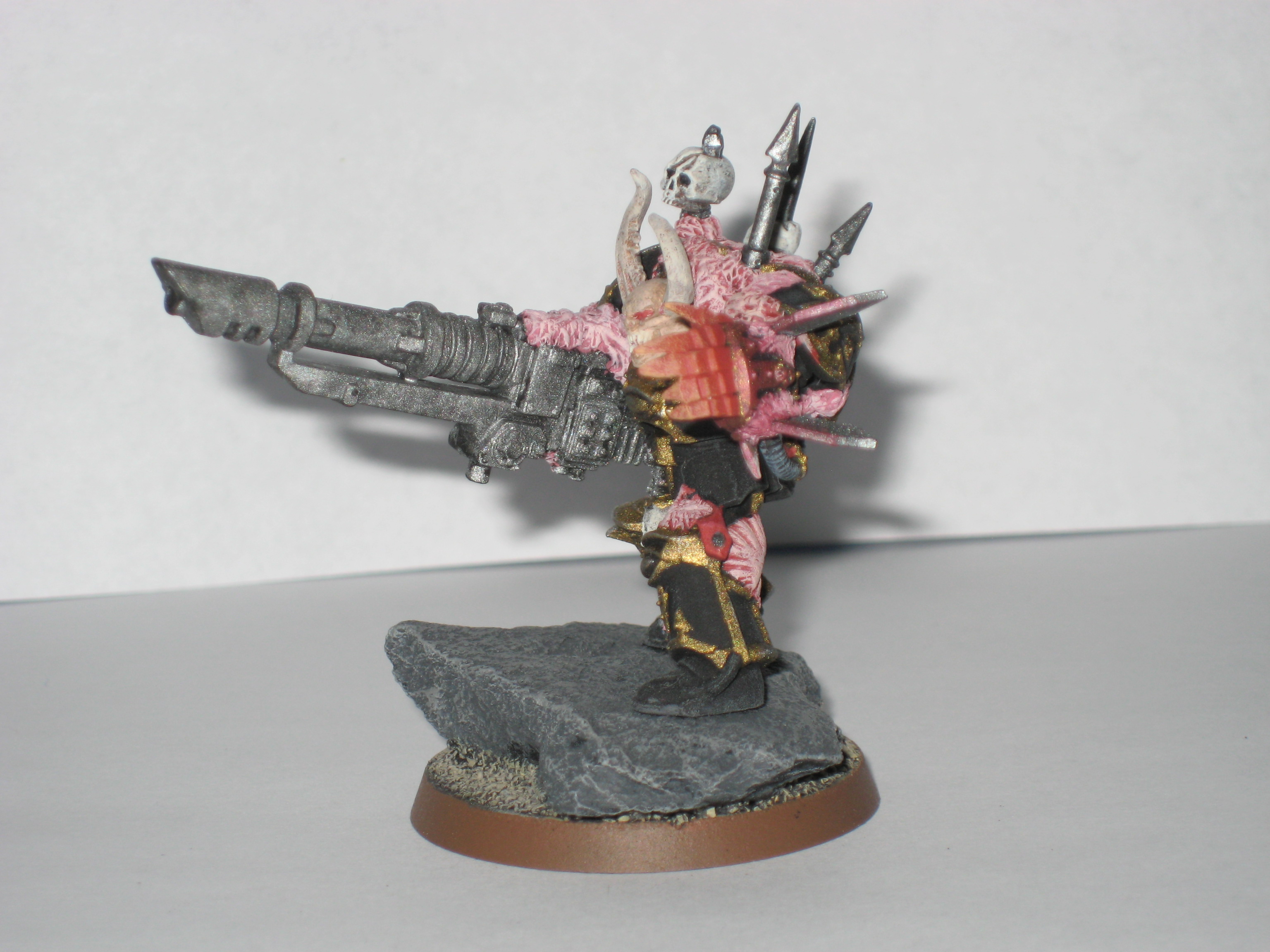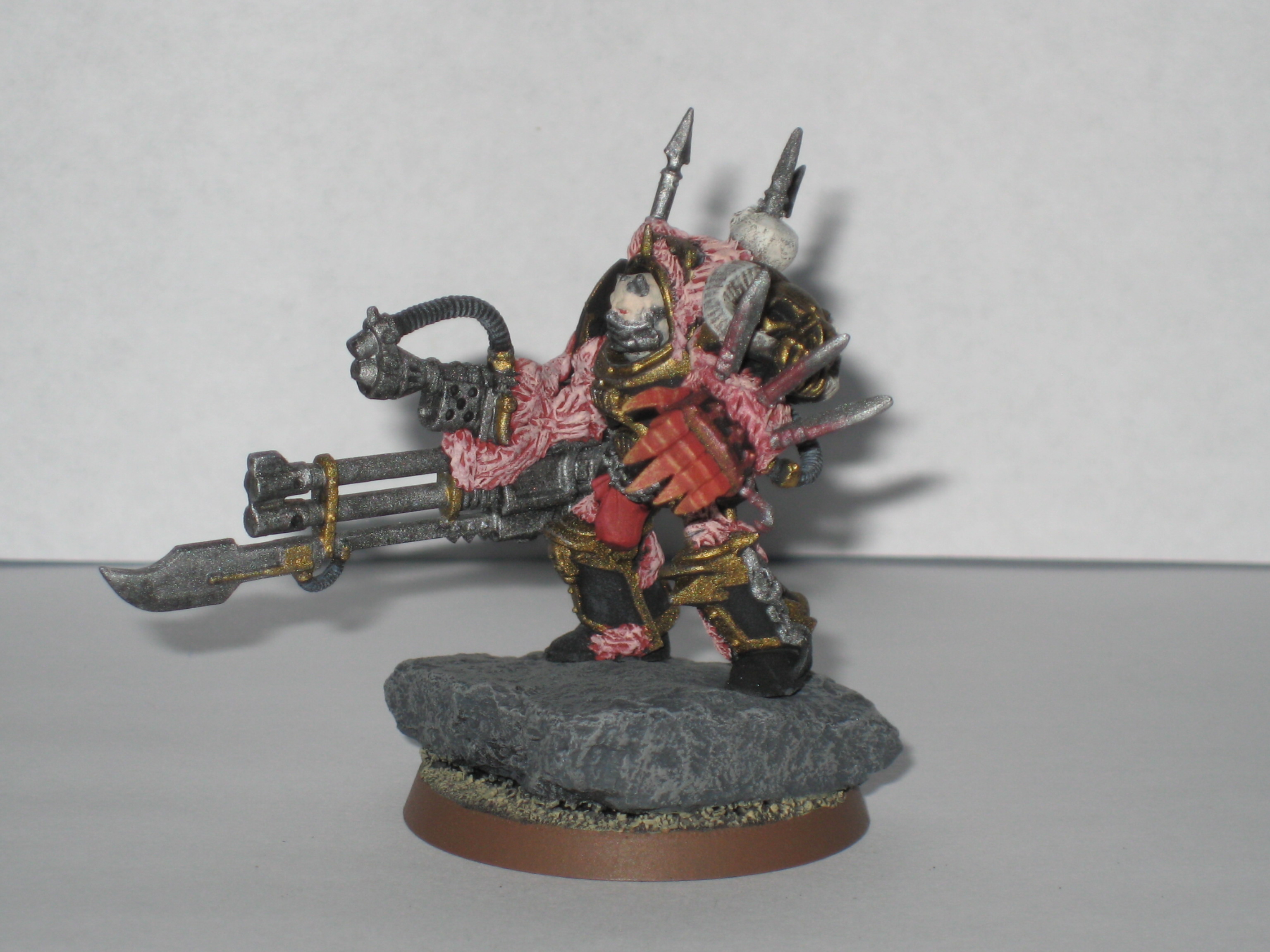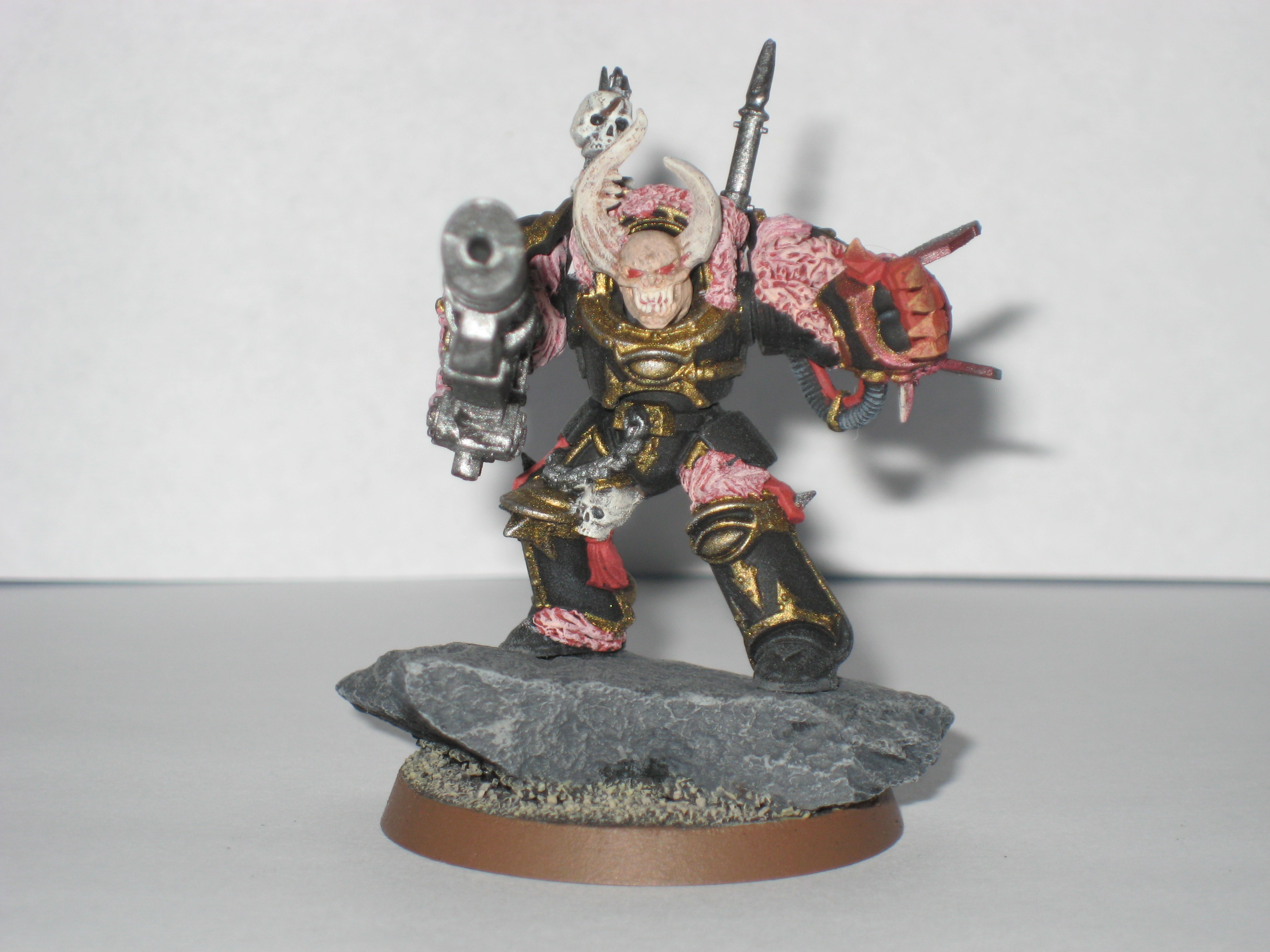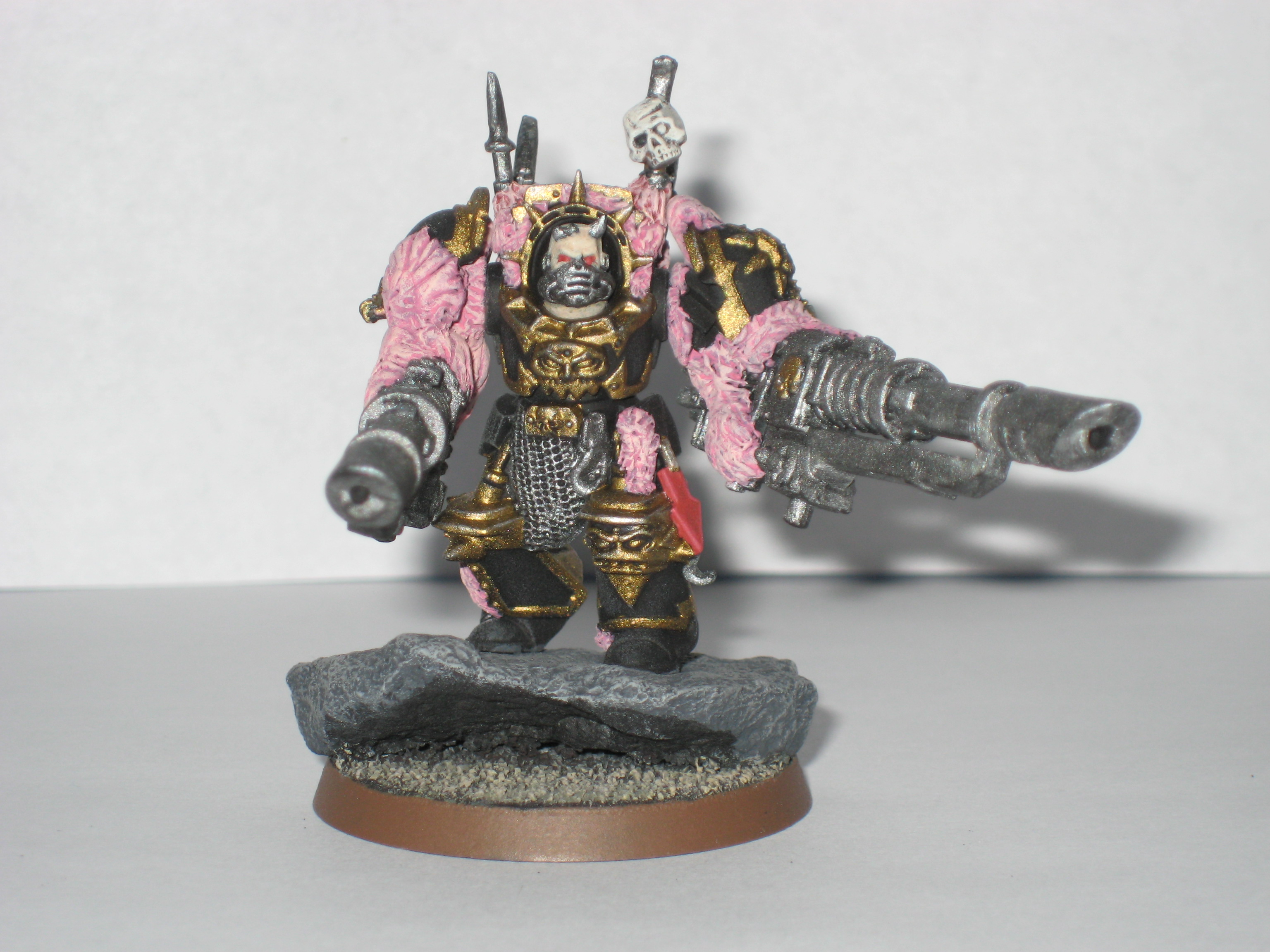 Adanis wrote:They're about half an inch taller than chaos terminators(including terminator spikes), but with a little bit more bulk. I added in the cliffy/rocky outcropping to add some of that mass to them, and to give them a mobile cover save.