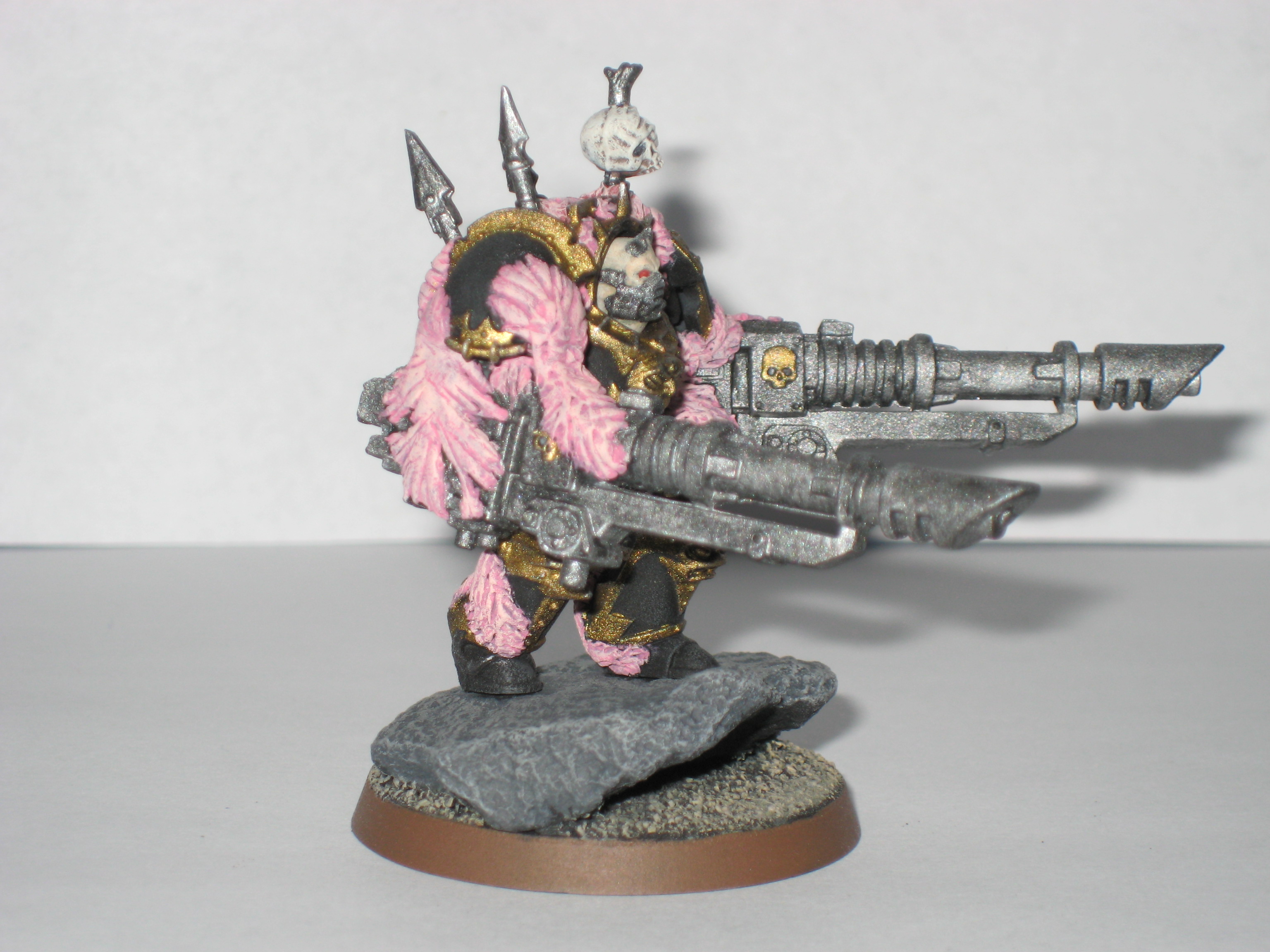 Not bad, about how tall are they though? Also, I think the pink is a little too... pink, IMO. Maybe put a dark wash on it or something. I like the last one with the dual lascannons btw, looks dead shooty.