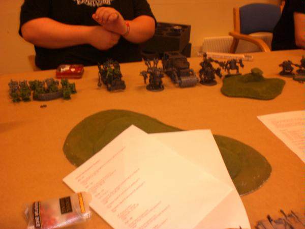 I was paired against the same guy I played in round 1 in the Arcon 9 tournament. Last time, I almost wiped him off the table with a worse list than what I brought this year, but at the same time, he was a great opponent, so I was not too worried and I knew that this would be a great first game. He brought his orks this year too, but a very different list.