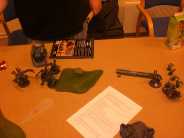 - End of my first turn, BW destroyed, nobz, warboss and mek chased off the table, lootas are gone